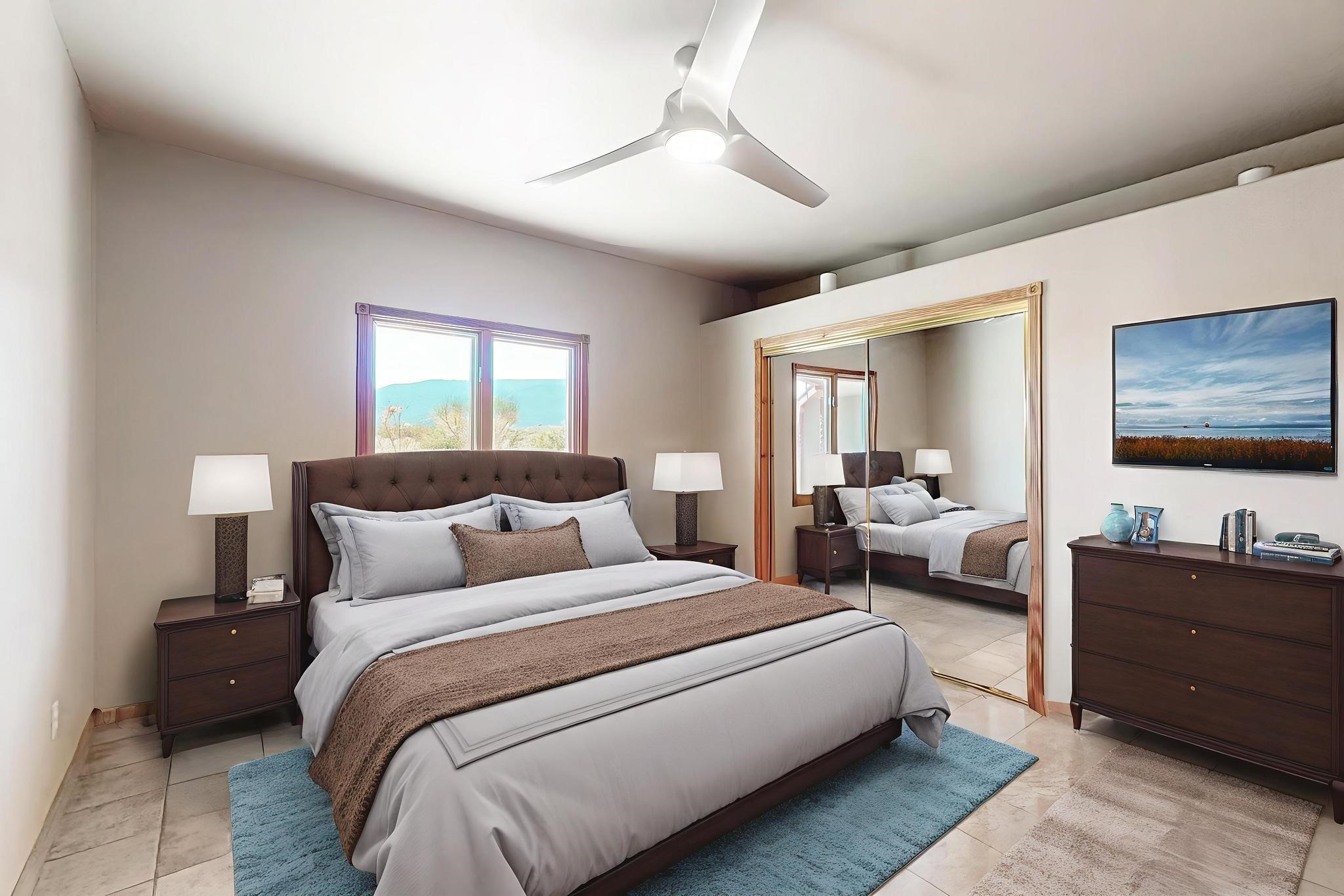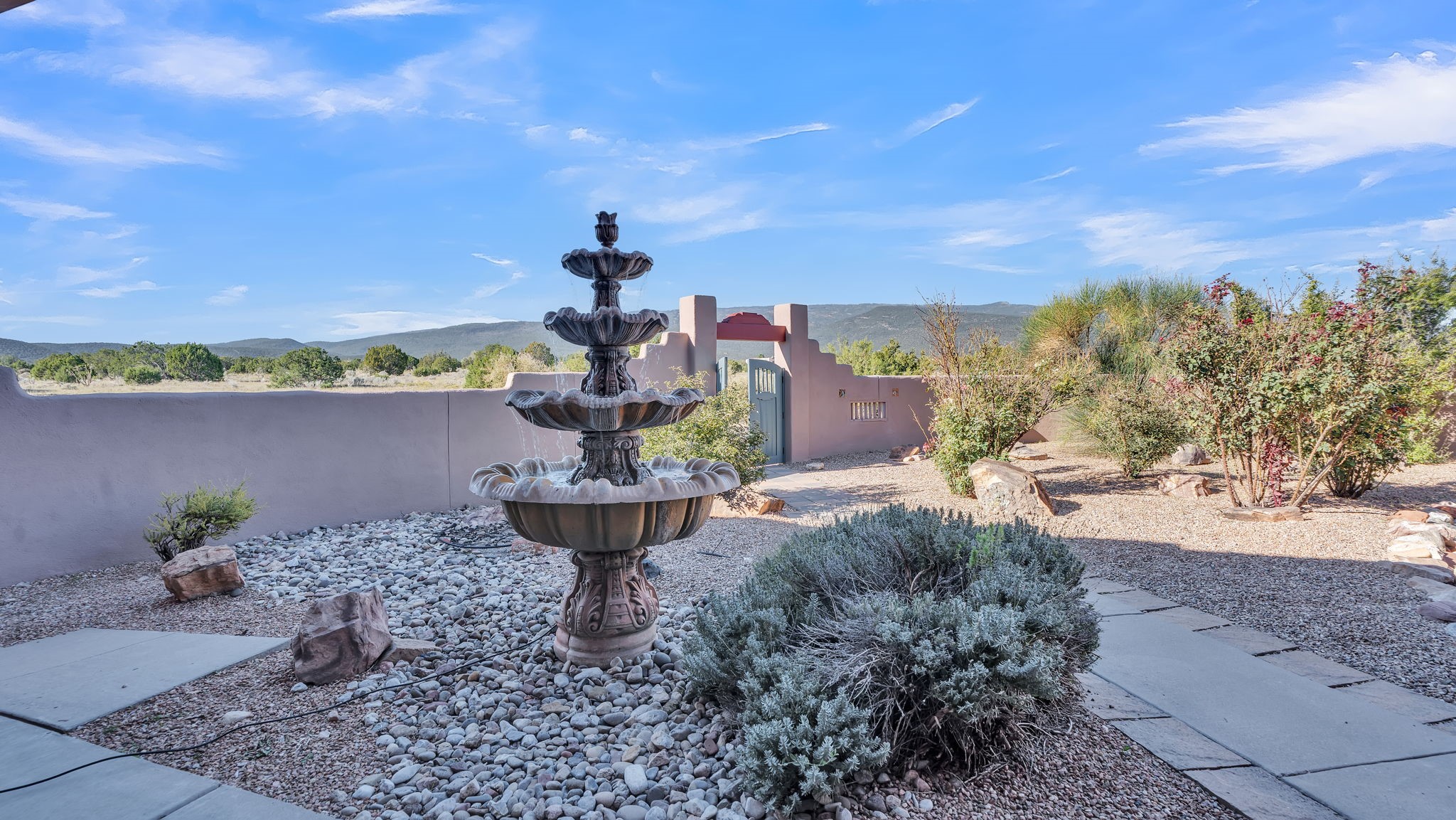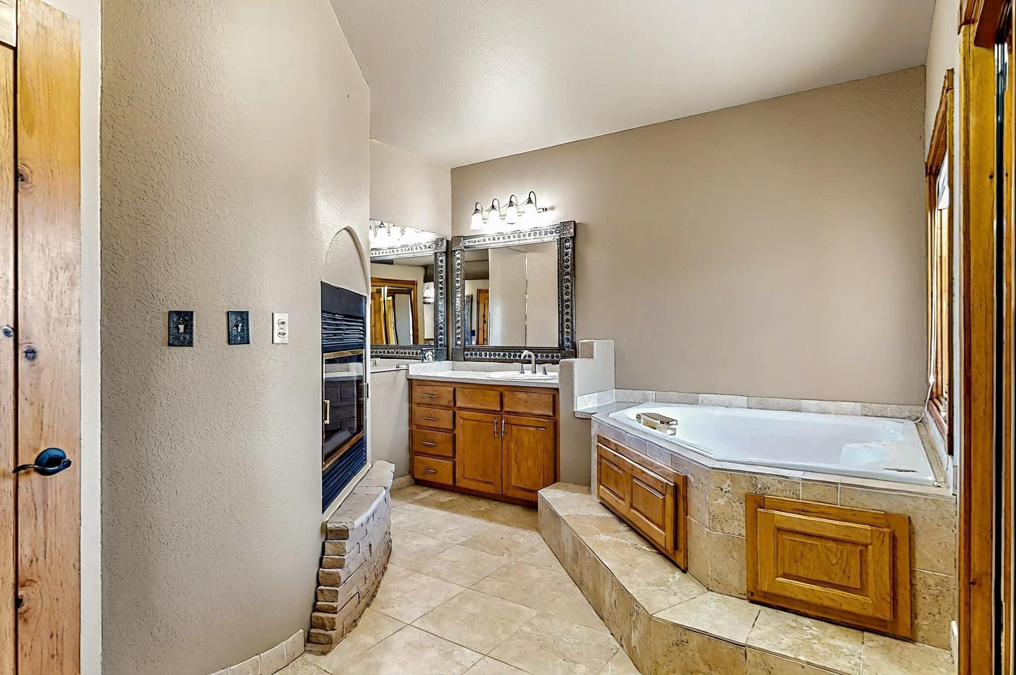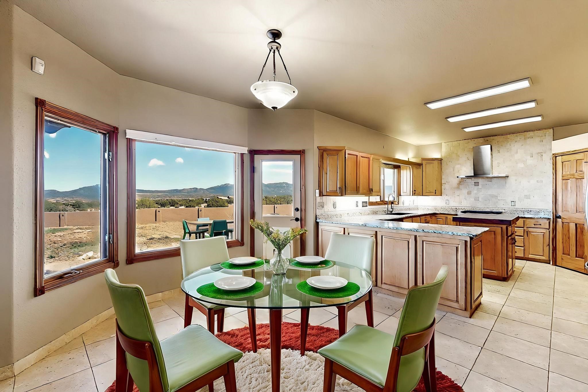 Welcome to 5 La Aguapa, Sandia Park, NM Experience luxury rural living in San Pedro Creek Estates! This custom 4,000+ sq ft home on 10.57 acres offers breathtaking views of five mountain ranges. Featuring 4 bedrooms, 4 baths, and two primary suites, this home combines comfort and elegance. The great room with soaring ceilings, a gas log fireplace, and panoramic views. The gourmet kitchen includes granite countertops, a built-in gas stove, pantry, and access to a workshop and three-car garage. Enjoy radiant heat, travertine tile flooring, a large utility room, and a walled backyard with access to Golden Open Space Los Duendes Trail. This is luxury rural living within reach.Situated on 10.57 acres in the prestigious San Pedro Creek Estates, this impressive 4,000+ square foot home offers refined comfort, privacy, and spectacular views of five separate mountain ranges. Featuring 4 bedroomsincluding two primary suites and 4 bathrooms, this thoughtfully designed home blends elegance with everyday functionality. The spacious great room showcases a gas log fireplace and sweeping views for miles, creating a warm and inviting central gathering space. The downstairs primary suite features a large walk-in closet and a generously sized bathroom, while the upstairs primary suite includes a private balcony the perfect spot to take in the serene landscape. Enjoy cooking in the large kitchen, complete with granite countertops, a built-in gas stove, ample cabinetry, a nice-sized pantry, and access to a spacious workshop and three-car garage perfect for hobbies, projects, or extra storage. The home is equipped with efficient radiant heat and features travertine tile throughout the downstairs, adding both beauty and functionality. A spacious utility room includes a sink and plenty of storage. Outside, you'll find a large walled-in backyard, ideal for relaxing, entertaining, or pets. The property also includes private gate access (key fob provided) to the Golden Open Space Los Duendes Trail, offering opportunities for hiking, biking, and horseback riding. Ideally located, this home is just 32 miles from Albuquerque, offering all the amenities of city living, 21 miles from Madrid, known for its artistic charm, and 50 miles from Santa Fe, celebrated for its rich culture and dining.POVEvery window frames a different view five mountain ranges that change colors with the seasons. It's peaceful, quiet, and filled with natural light. Mornings start with coffee on the balcony, and evenings end by the fire watching the sunset roll across the hills. There's room to breathe, create, and enjoy life at a slower pace yet you're still close enough to everything you need. It's truly the best of both worlds.