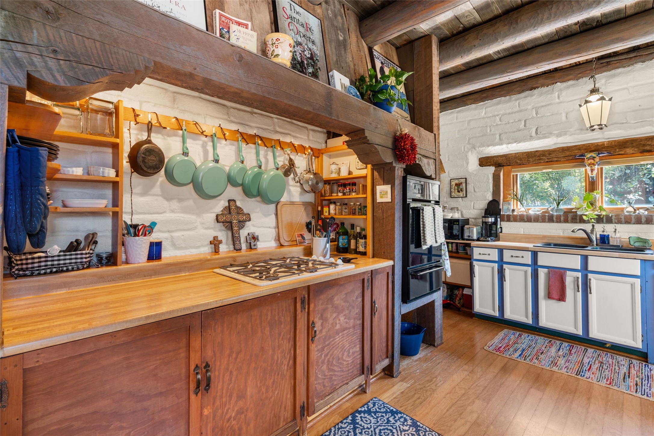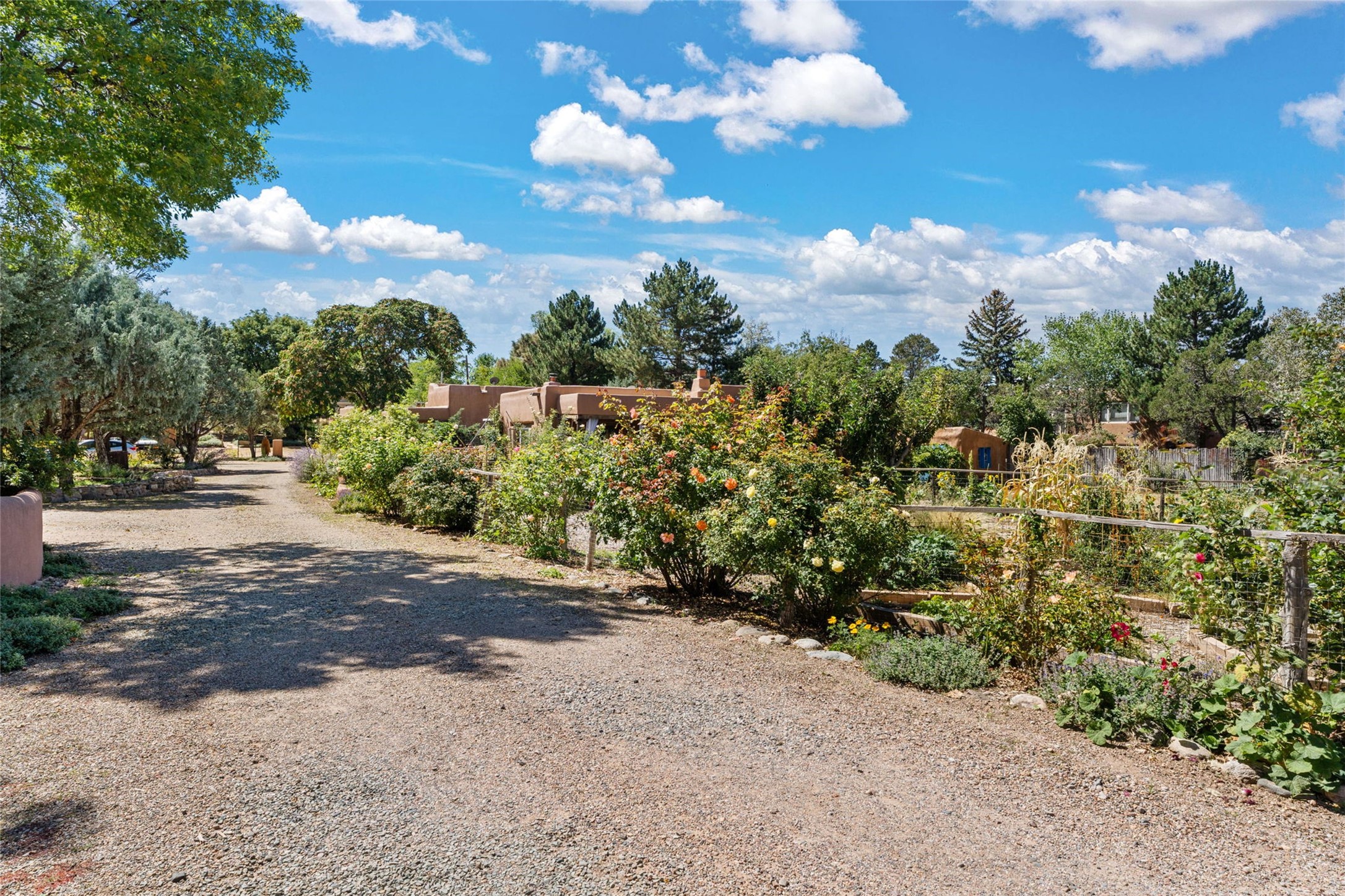 Envision the possibilities of this 3.27-acre estate, bridging iconic Canyon Road with the dirt stretch of East Alameda, directly beside the famed Compound Restaurant. This is a property of both heritage and horizon, anchored by a 3,829-square-foot historic residence on the Alameda side and a 4,424-square-foot commercial gallery on Canyon Road. Between these lies a hidden enclave of gardens, courtyards, and guest dwellings, including one designed by the celebrated Santa Fe builder Betty Stewart. The main residence, built in 1938 and recognized as a historically contributing building, has been lovingly preserved and enhanced by multiple generations of the same family. Within its adobe walls, you'll find four bedrooms, three full baths, an office, a laundry and craft room, a cedar-lined closet, and a sunroom, each space imbued with warmth & continuity of care. The Canyon Road gallery, leased through 2028, provides longevity and prestige in Santa Fe's most famous arts district. Throughout the grounds, mature trees and plantings and paths connect the various structures - serene, self-contained, and rich with character. The property enjoys full city utilities as well as two private wells, each yielding three acre-fee of water, an invaluable resource for maintaining the grounds or for future expansion. This extraordinary compound merges historic authenticity with modern versatility, one of the few remaining estates to unite Canyon Road and East Alameda in a single private holding. Whether envisioned as a multi-generational family retreat or a bespoke Eastside development, the site's dual access, exceptional size, and RC8AC zoning (allowing for 8 units per acre) make it a truly unique offering. Just moments from Santa Fe's galleries, dining, and cultural landmarks, yet profoundly secluded within its own walls and gardens, this property stands as both a legacy home and an expansive canvas for new possibilities in the heart of the city's most storied neighborhood.