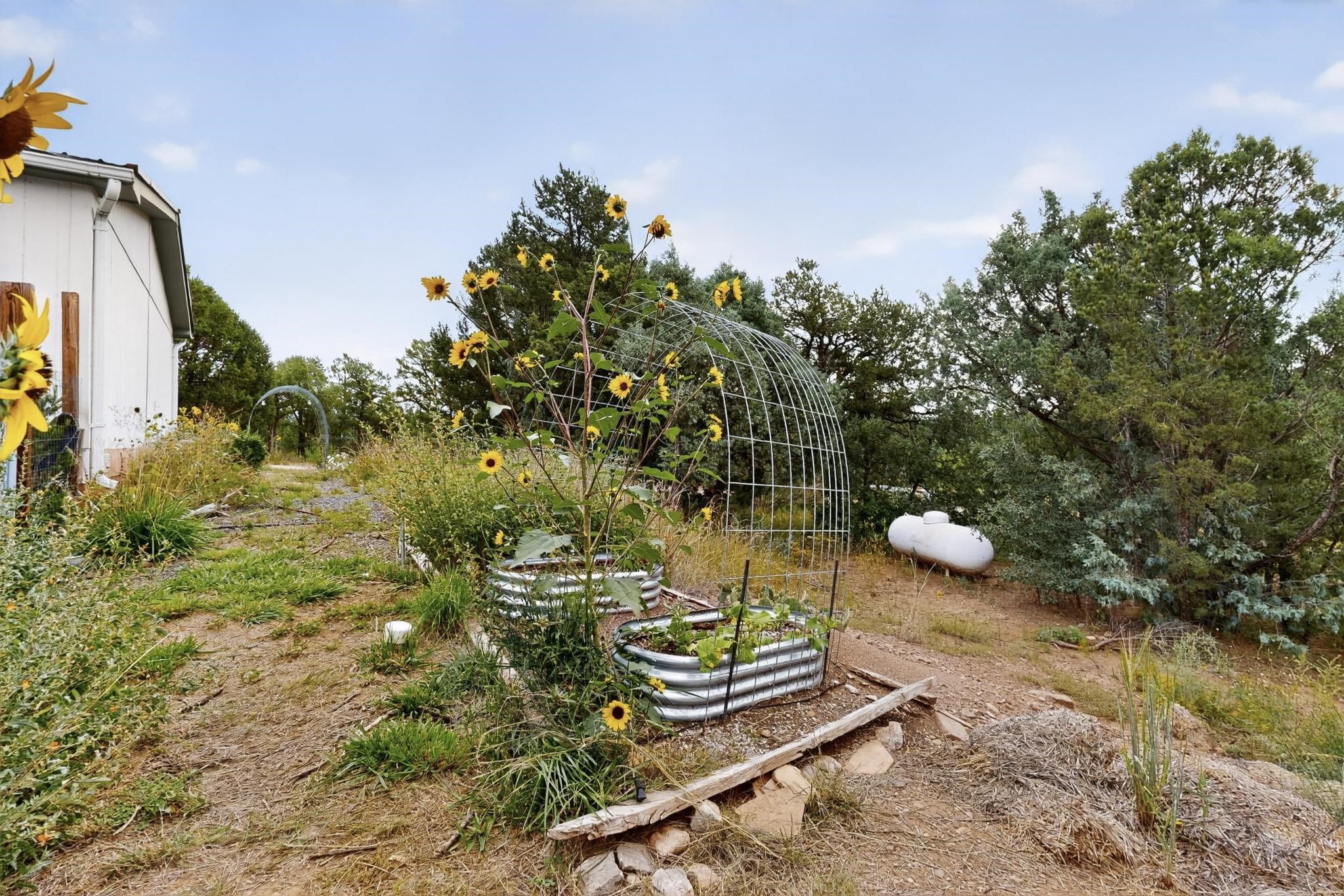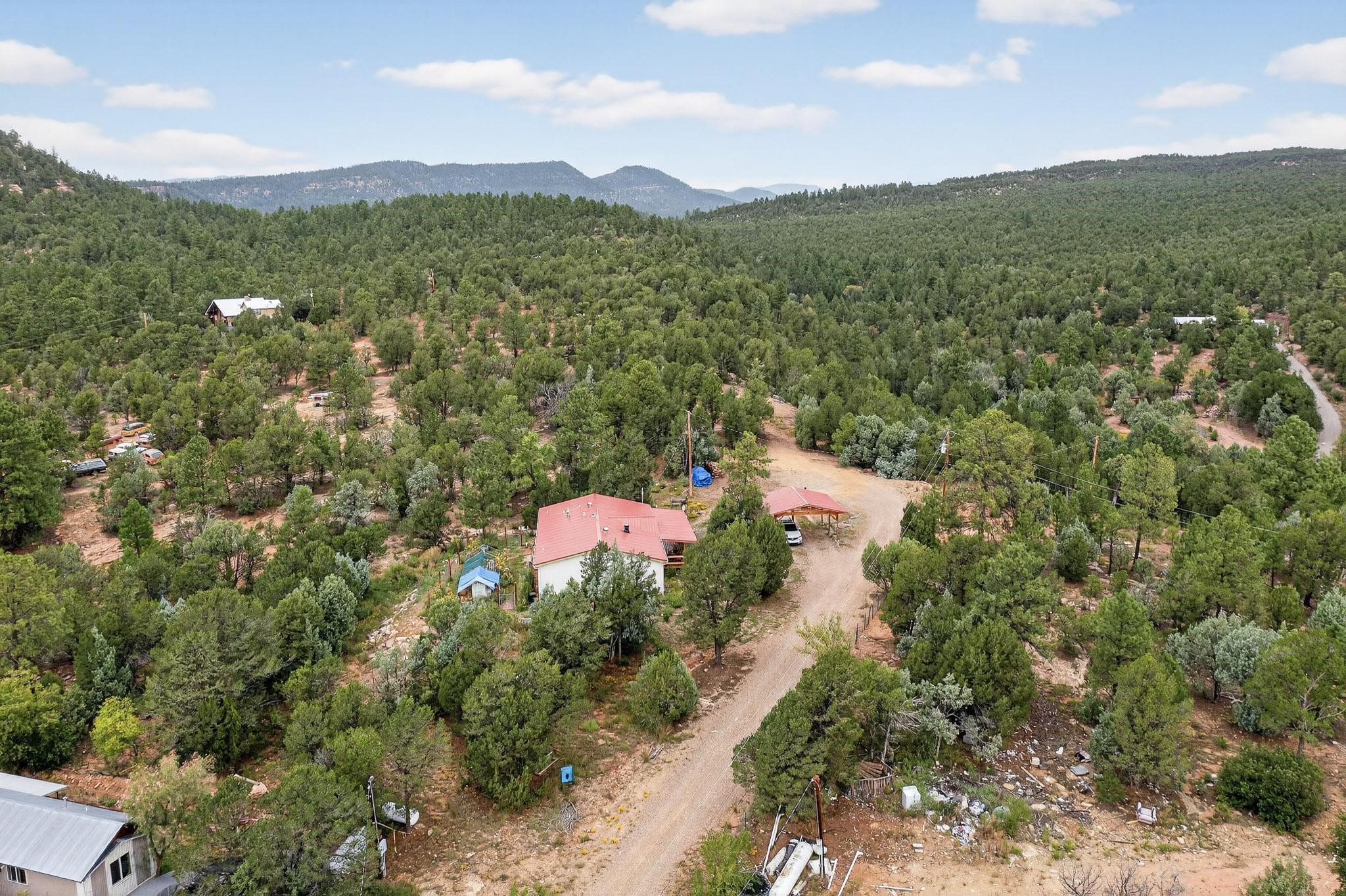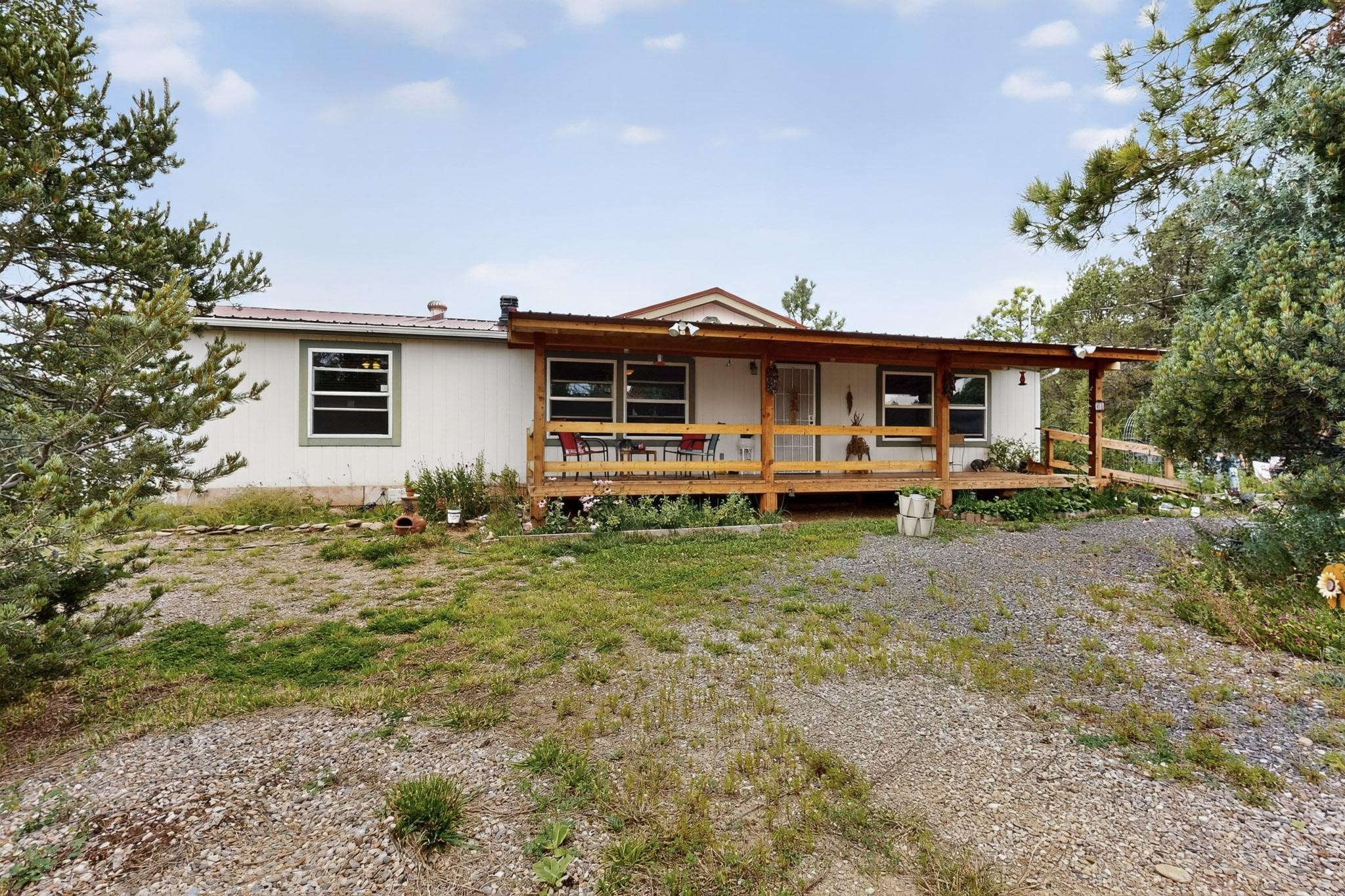 11 Corte Vargas has a 2007 3 bedroom, 2 full bath doublewide manufactured home on a permanent foundation sited on 1.026 +/- acres located in the Glorieta area, 22 minutes to Santa Fe. The home is accessed from a covered porch, has living room with wood burning stove, cook's kitchen, split bedroom floor plan, forced air heating as well as air conditioning, ample closets, washer and dryer. The area around the home is nicely landscaped with perennial flowers, walkways, covered chicken coop, 2 car carport and designated sitting and viewing area. Adjoining 5.37 acres also for sale MLS #202504963, for $124,900