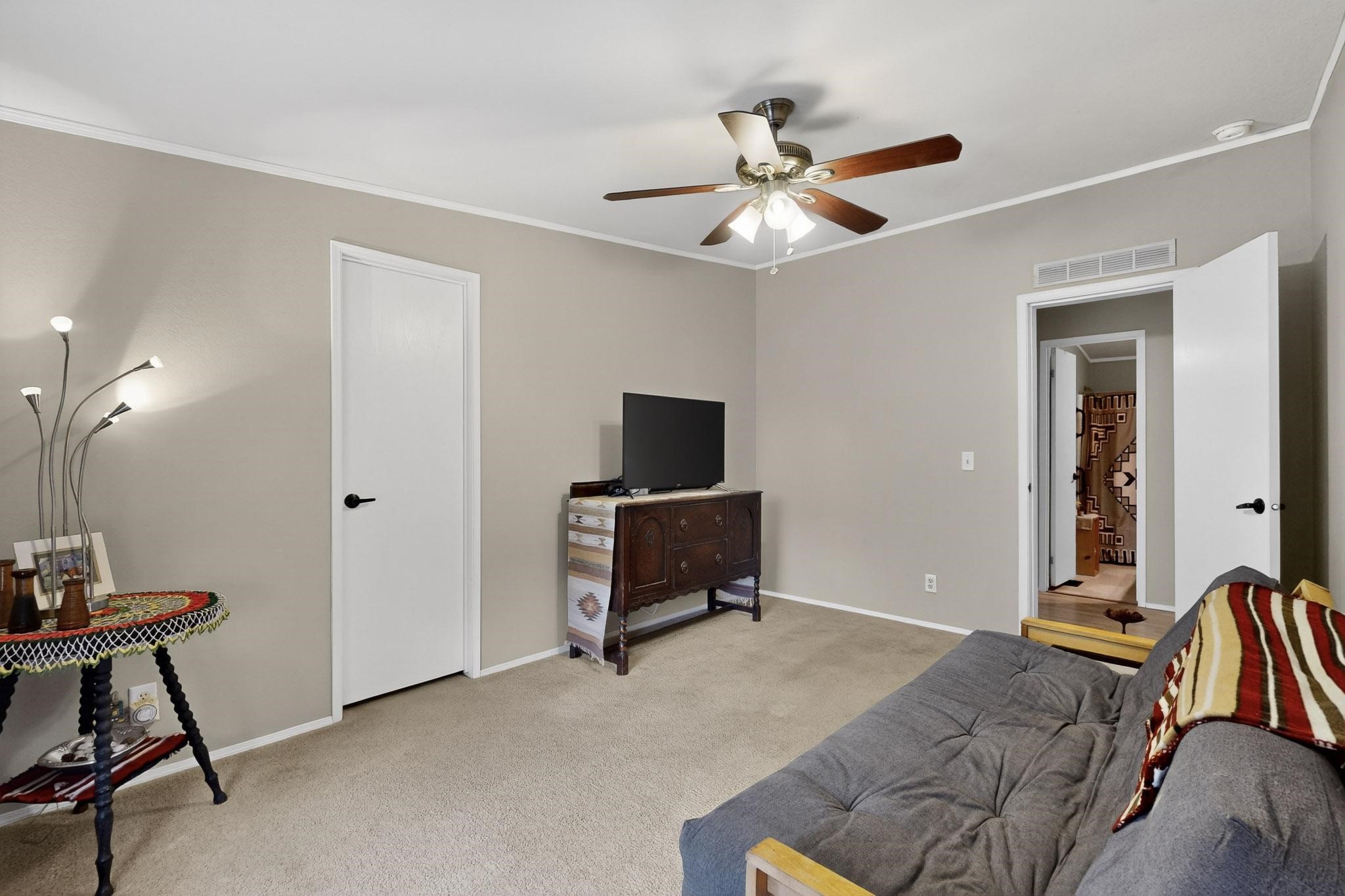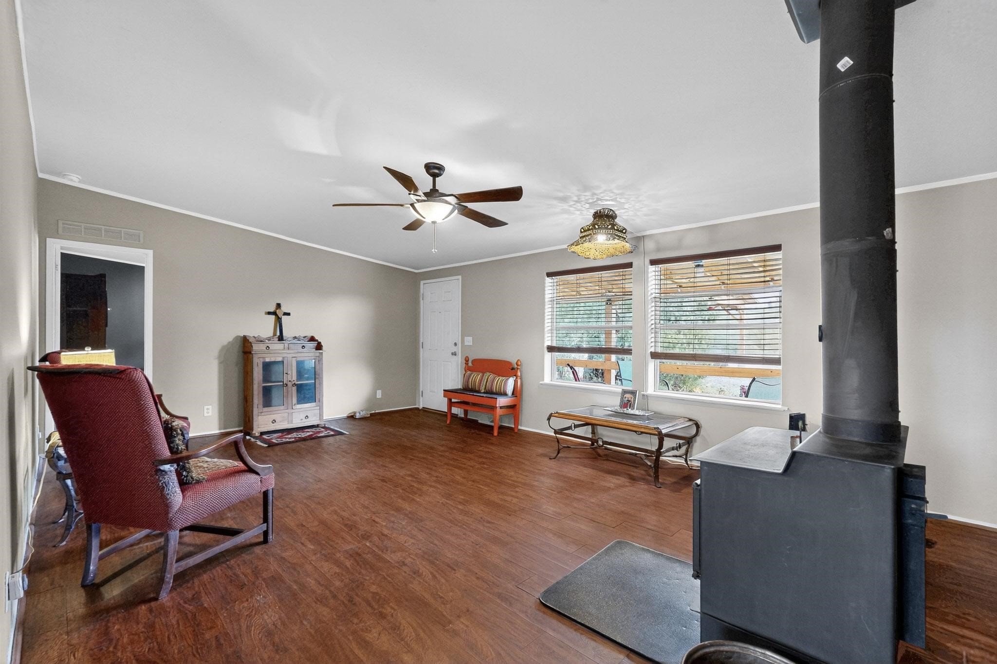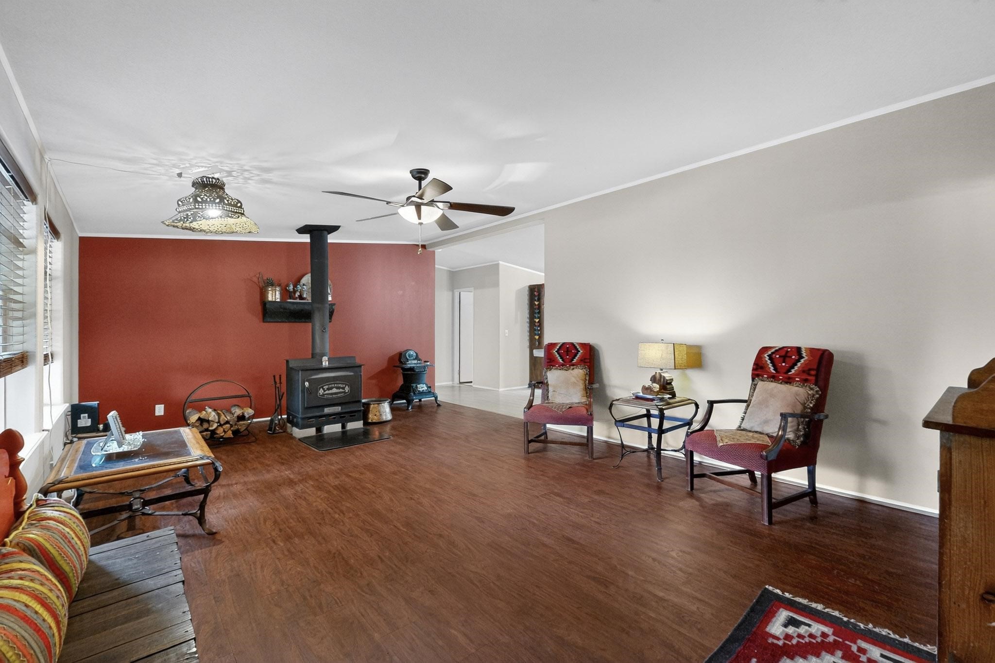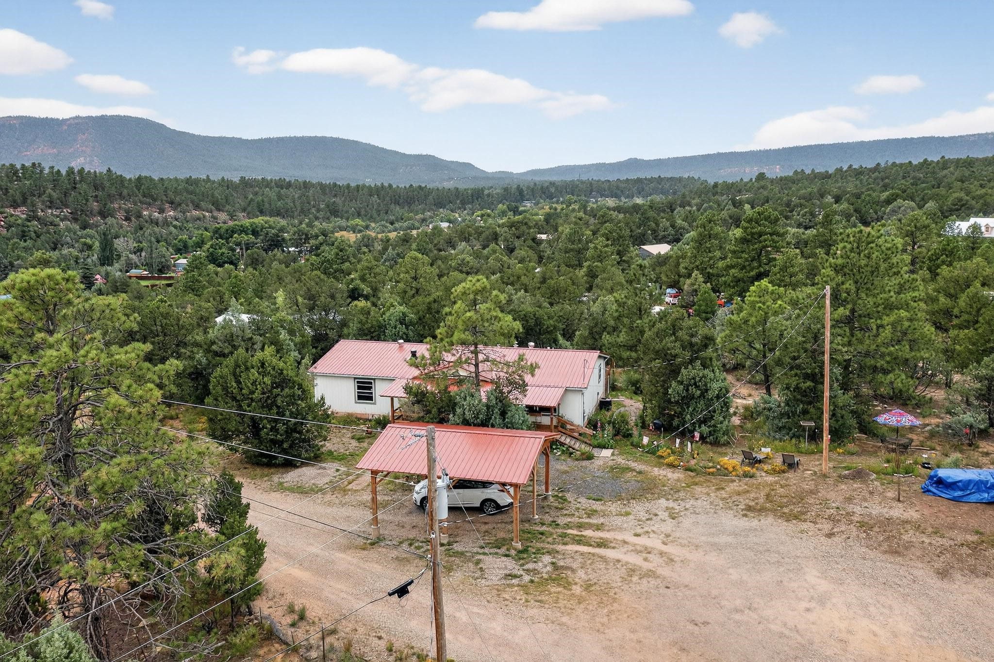11 Corte Vargas has a 2007 3 bedroom, 2 full bath doublewide manufactured home on a permanent foundation sited on 1.026 +/- acres located in the Glorieta area, 22 minutes to Santa Fe. The home is accessed from a covered porch, has living room with wood burning stove, cook's kitchen, split bedroom floor plan, forced air heating as well as air conditioning, ample closets, washer and dryer. The area around the home is nicely landscaped with perennial flowers, walkways, covered chicken coop, 2 car carport and designated sitting and viewing area. Adjoining 5.37 acres also for sale MLS #202504963, for $124,900
