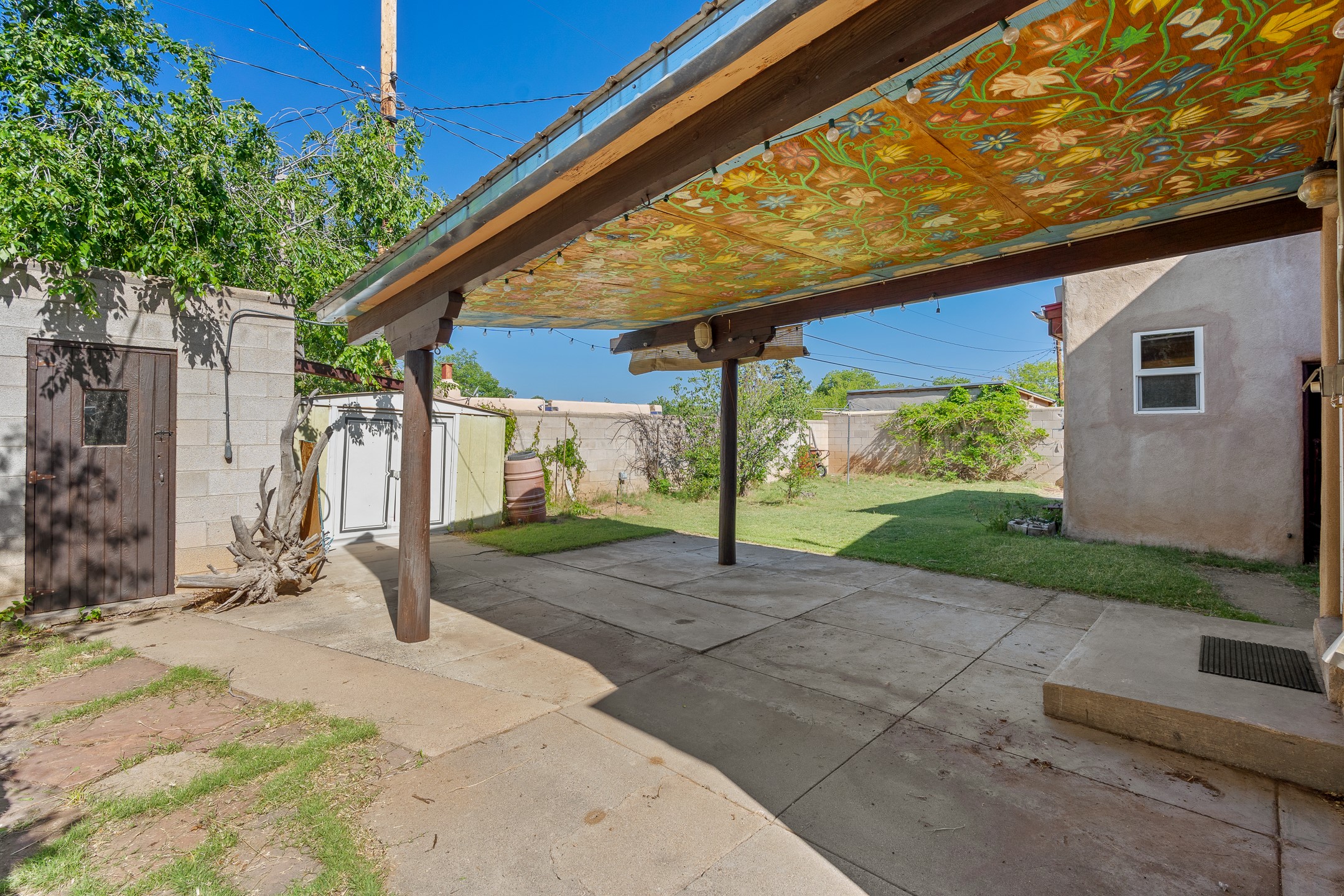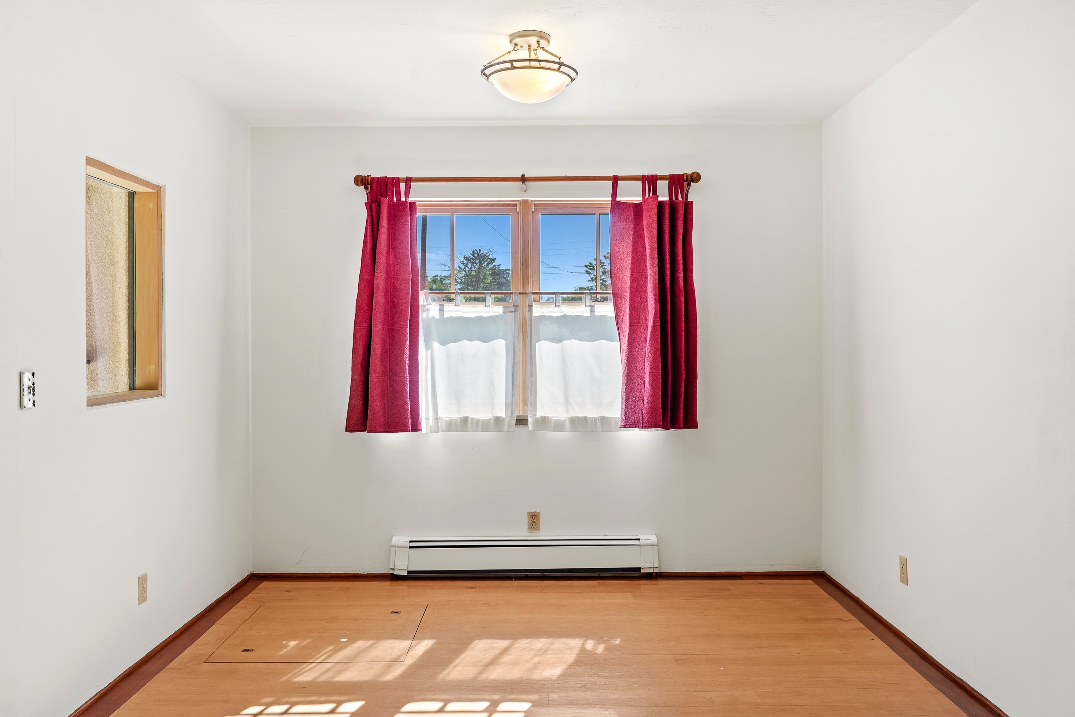 Charming and versatile single-level home nestled in the highly sought-after Casa Alegre neighborhood. Back on the market with significantly improved price. This property stands out as a unique opportunity, featuring multiple living areas and exceptional flexibility for the modern homeowner. This generous residence offers three bedrooms and two bathrooms, complemented by a large heated and finish open area. The oversized bonus space features direct access, presenting enormous possibilities. It's perfectly suited for a private art studio, home occupancy business, large gym, or a dedicated multi-generational living suite. The interior includes dedicated family, living, and dining rooms, all boasting beautiful hardwood flooring throughout the main living areas. Santa Fe Lifestyle at Your Doorstep. Enjoy true convenience with easy access to local shopping and dining. Best of all, the home is ideally situated near the Santa Fe River Trail and the Acequia Trail, providing direct, car-free routes straight to the vibrant Railyard District and historic downtown. The property features a spacious, fenced backyard and a covered portal, creating an ideal setting for outdoor entertaining and relaxation. Enjoy year-round comfort with reliable hot water baseboard heating and evaporative cooling.This motivated seller opportunity won't last long--schedule your showing today!