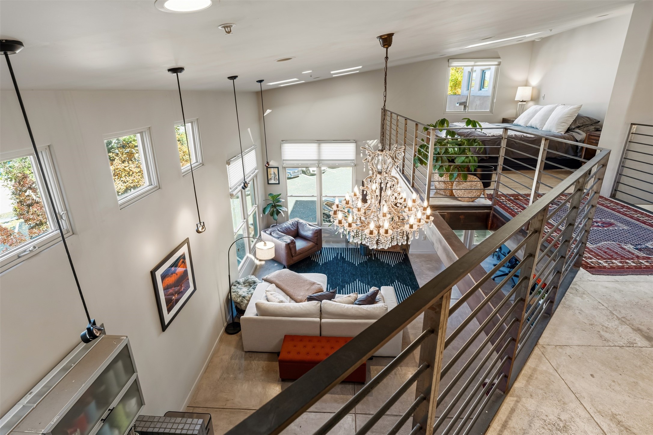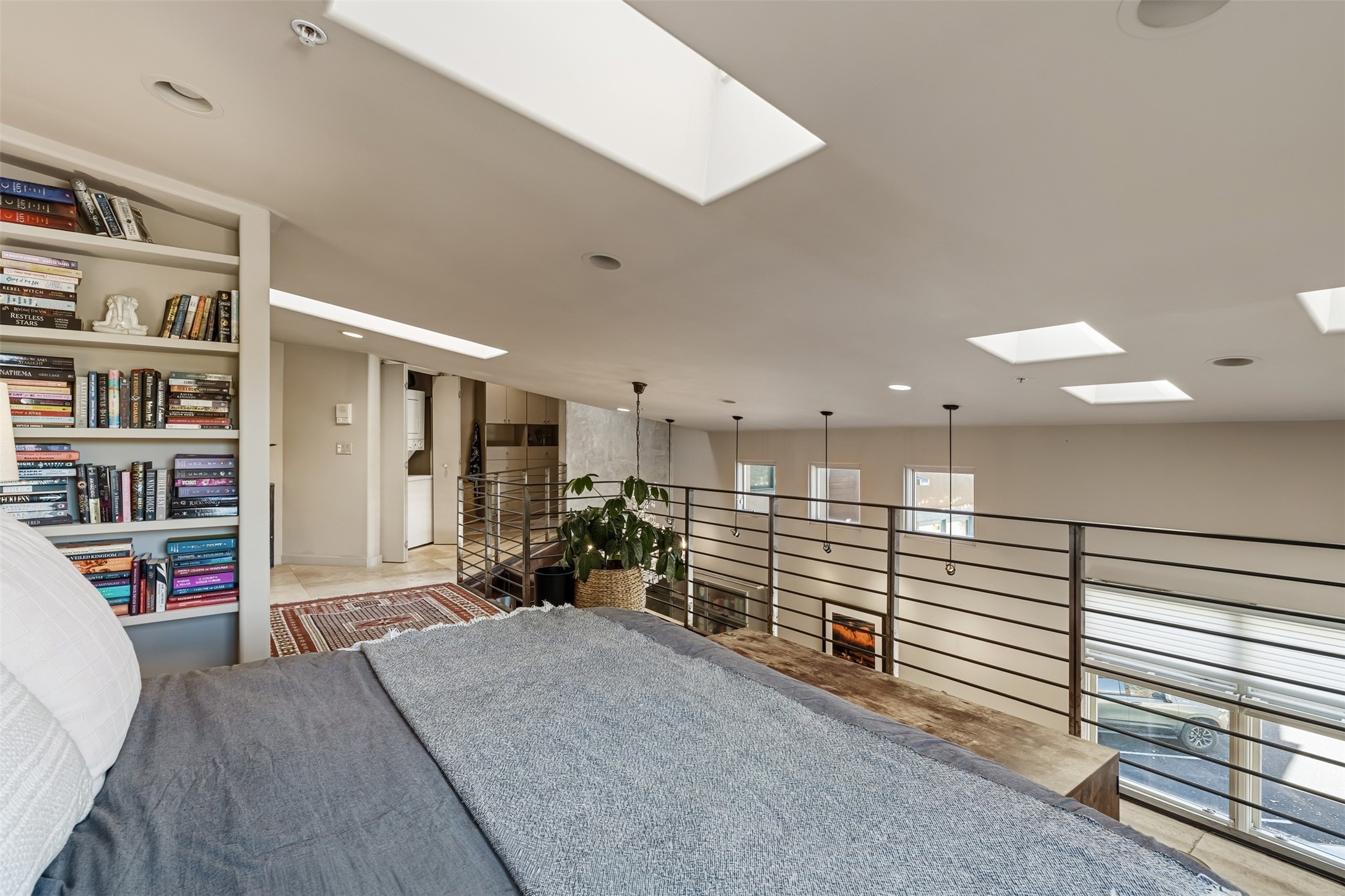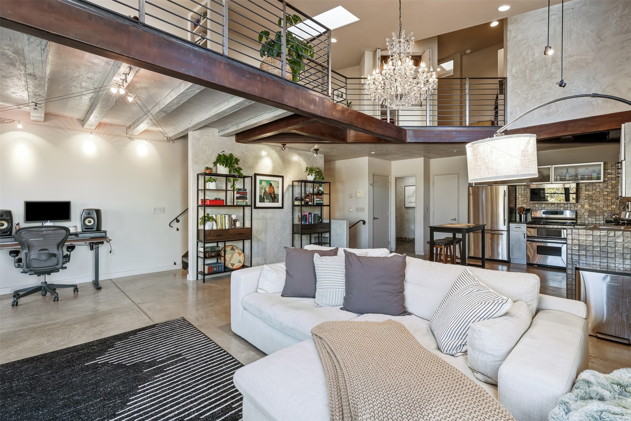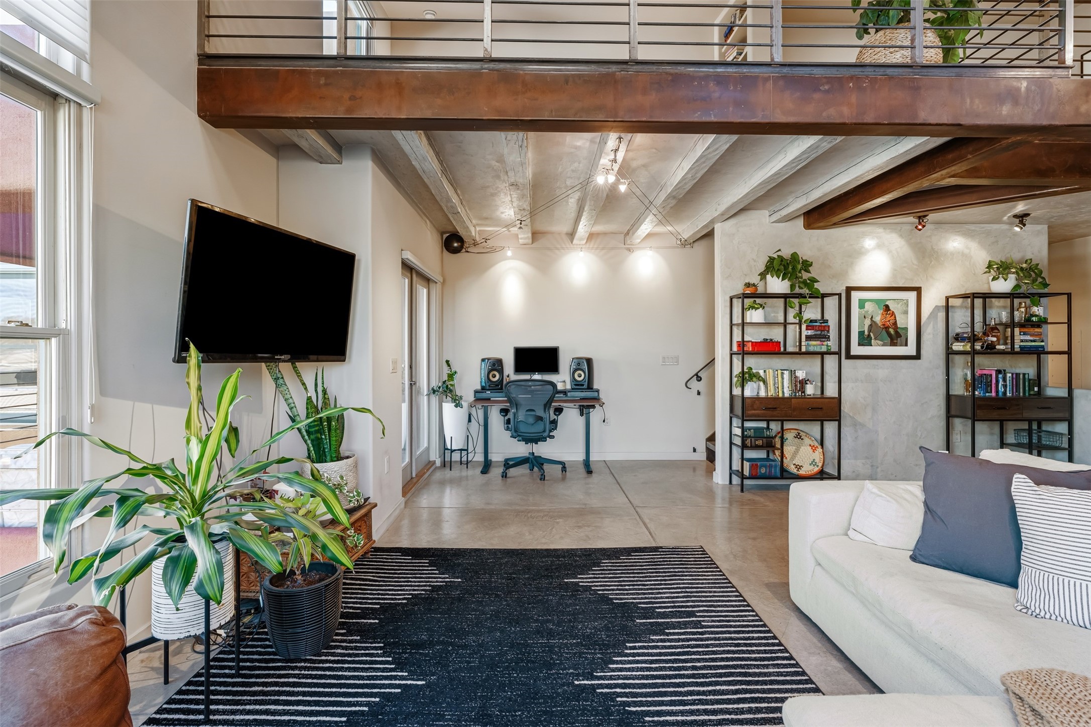 Contemporary live/work condo located in the highly sought-after South Capitol neighborhood--just a short walk to the Santa Fe Plaza and less than a mile from the Railyard District. Enjoy easy access to Whole Foods, Trader Joe's, Natural Grocers, popular restaurants, and a variety of local amenities. This two-level, second-floor residence offers 1 bedroom and 2 baths (1 full, 1 half) and is quietly tucked away at the back of the complex for added privacy. Expansive windows frame views of the Sangre de Cristo Mountains, while clerestory windows and soaring 17' ceilings fill the space with natural light. The open floor plan features a modern kitchen, sleek concrete floors with in-floor radiant heat, and a brand new evaporative cooler. Step out from the living area onto a spacious deck to enjoy outdoor living and mountain views. Upstairs, the lofted bedroom offers generous closet space, a bath with a steam shower, and stackable laundry. Don't miss this unique opportunity to own a stylish and light-filled home in one of Santa Fe's most desirable neighborhoods.