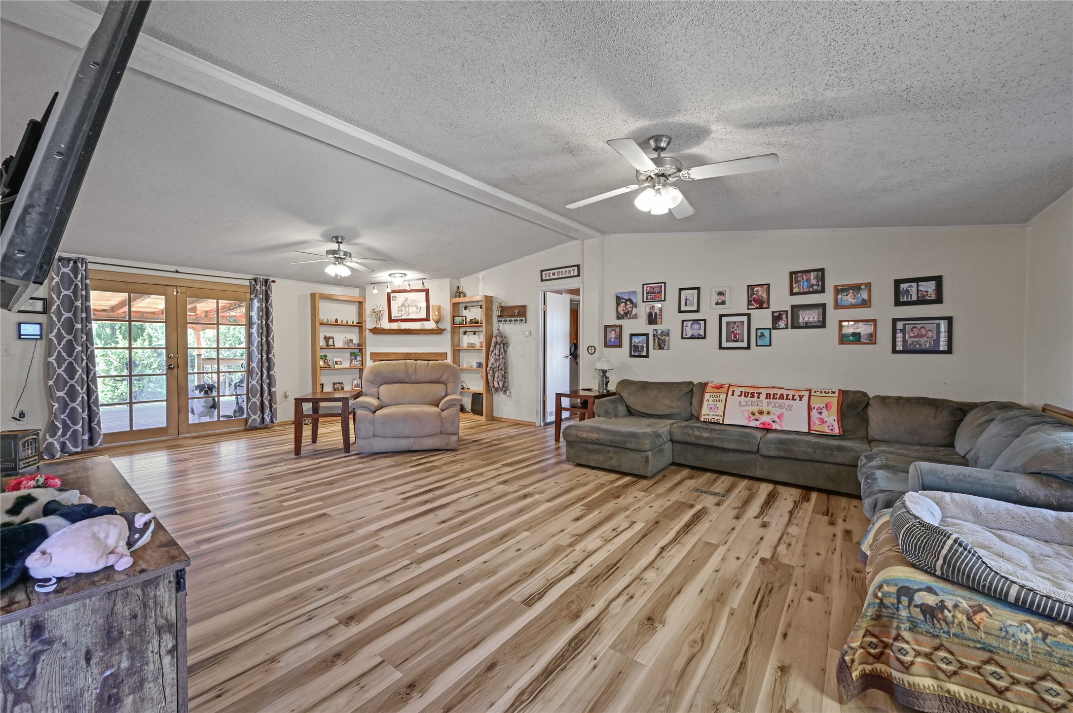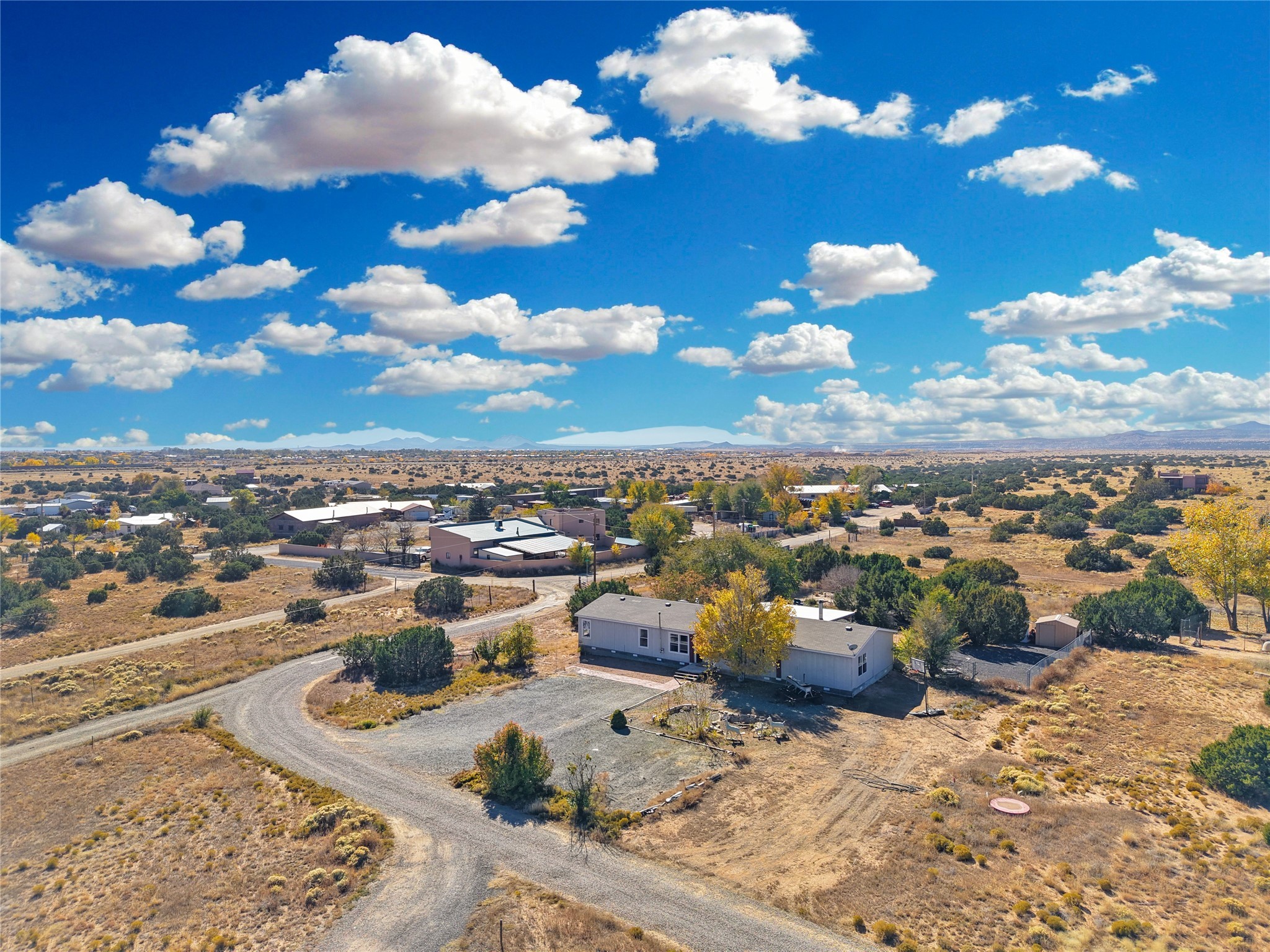 This is a great place to call home. 4 bedrooms with 2.5 bathrooms in approx. 1900 sqft and sited on approx. 1.25 acres. Out far enough to feel like your living a country life, but close in enough to get to anywhere in Santa fe in minutes. Access to anywhere in Santa Fe that you need to be by being just off of the 599 bypass route. Down a quiet road you find this home with big trees and a contained backyard that has an large back deck with a portal covering, making for your own private retreat that keeps pets in or allows for little ones to be able to roam enough while being kept close enough. The home has an open feeling with ceiling fans in every bedroom with 2 more in the common areas. A pellet stove and wood burning fireplace will keep the place more than warm enough on those cold days and nights. Great laminate wood flooring make for easy cleanup or is good for those that have allergies that come with carpet. The primary suite is private and has a separate bath tub and shower. All of the appliances will remain for a buyer to make for an easy move. In fact, if a buyer would like any of the furniture to remain, that could be a possibility too. Priced so that this home could work as a great place to live or could work or an investor. Don't wait to see this home.