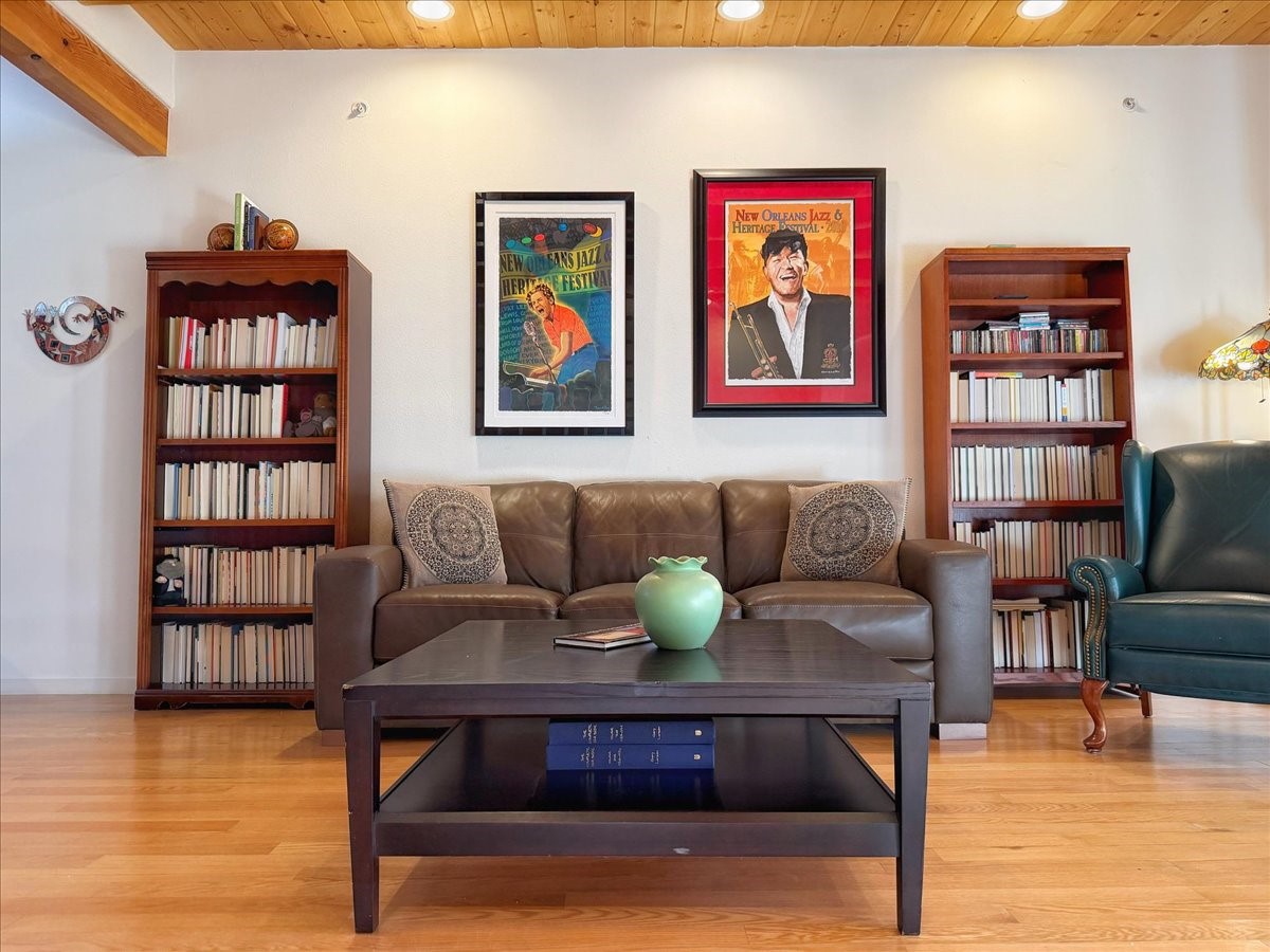Tucked into one of the community's most desirable lanes, this rare and **oversized townhouse** delivers an effortless blend of style, comfort, and Santa Fe living. These are upgraded units from the standard sized Townhouse.Offering 2 bedrooms and 2 baths, the flexible floorplan is designed for easy everyday living with room to entertain.The main level features an open kitchen, dining, and oversized living space anchored by a welcoming gas fireplace. Glass doors lead to a private garden courtyard--your own outdoor retreat for quiet mornings, alfresco dinners, or relaxed evenings with friends.Upstairs, the primary suite includes an **oversized bedroom**, and **oversized walk-in closet**, full bath, and a balcony perfect for savoring the day's last light. The second bedroom offers its own ensuite bath and eastern views. High ceilings, vigas, Pella windows, and stainless steel appliances bring classic Santa Fe character to the modern layout.The community rounds out the experience with thoughtful amenities: a clubhouse, fitness center, and seasonal pool surrounded by beautifully maintained grounds, lush landscaping, and open green space.Step outside and you're moments from neighborhood favorites--Iconik Coffee, Backroads Pizza, Midtown Bistro, Chocolate Maven, Anytime Fitness, and more. Prefer the outdoors? The Santa Fe Rail Trail sits just half a mile away, ideal for biking, running, or a leisurely stroll.Practical perks include strong cell service, optional carport rentals, and a lock-and-leave lifestyle that suits first-time buyers, downsizers, or anyone seeking a comfortable Santa Fe home base.This isn't just a townhouse--it's a vibrant, convenient, easygoing way of life.