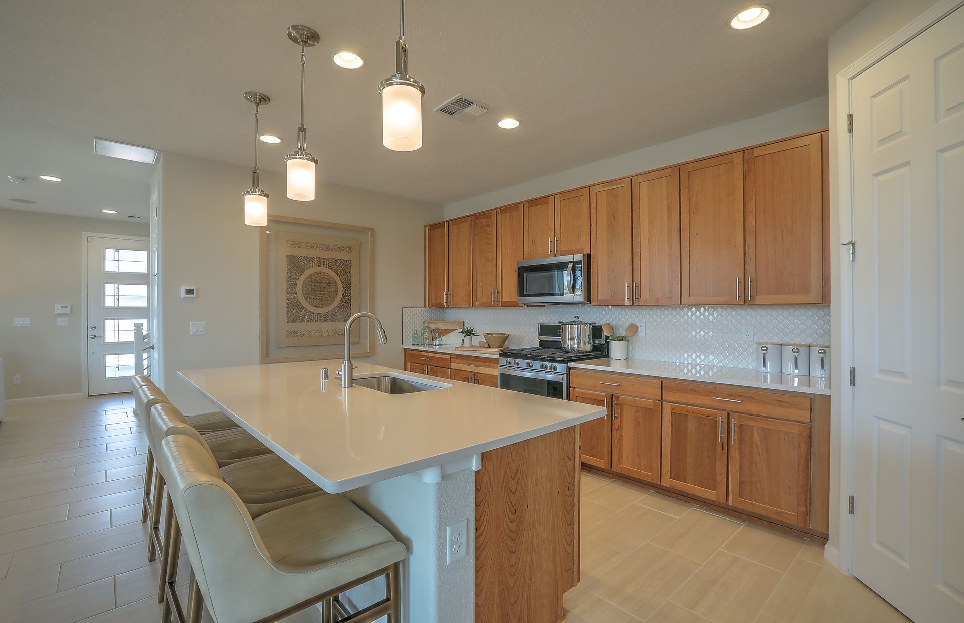 This brand new home has never been lived in and is ready in February for move in! This luxury townhome features a nice corner homesite giving you only 1 neighbor. Large owner's suite with owner's retreat with a balcony. Open kitchen with plenty of counter space and large kitchen island. Situated in a prime Santa Fe location, close to every convenience. Low maintenance living at its finest. Easy commute to anywhere and just 3 minutes to interstate 25
