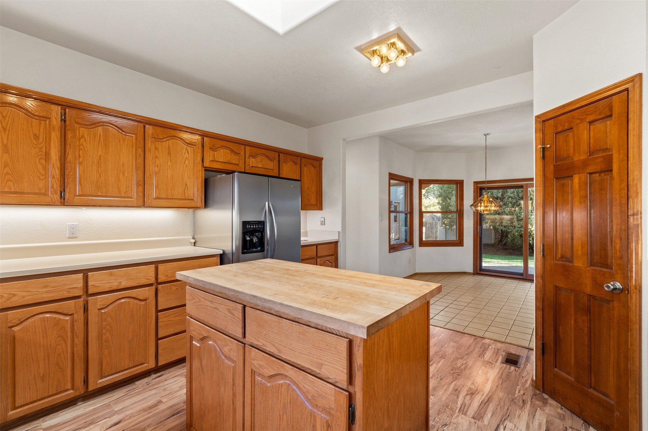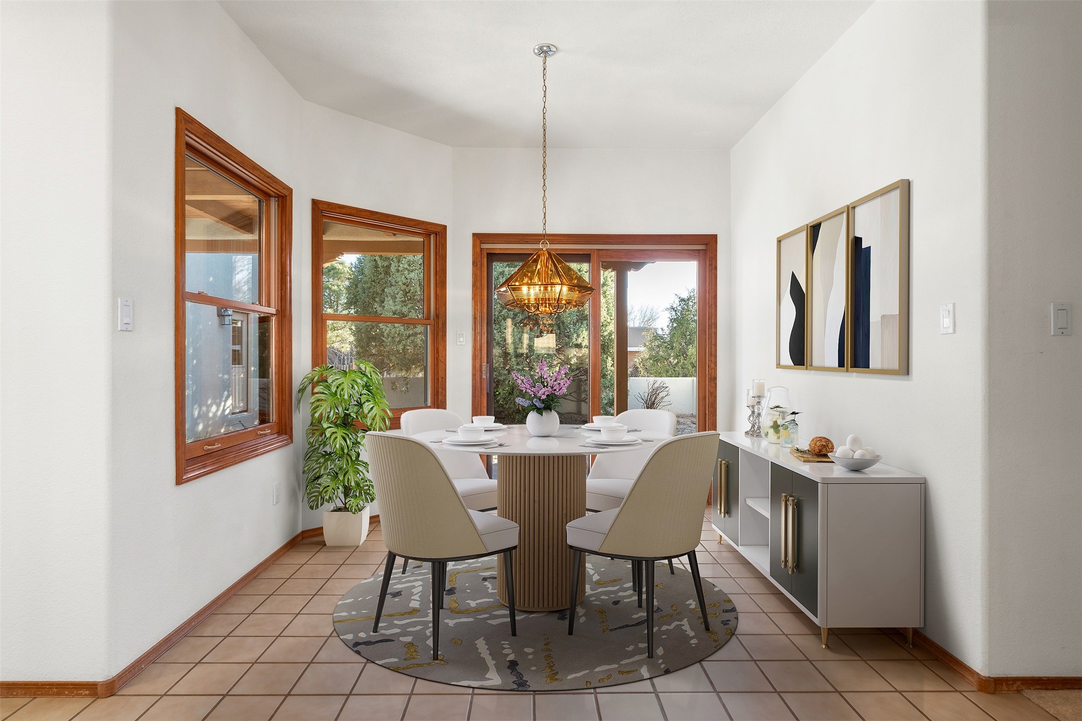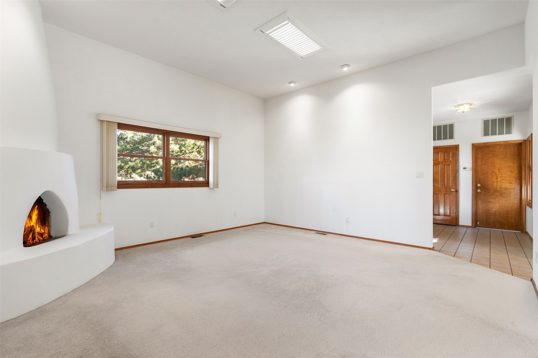 A wonderful opportunity to own a single-level home, perfectly situated in the highly desirable DeVargas Heights neighborhood. This property is an ideal canvas, ready for your personal touches to make it truly your own. Its prime location offers exceptional convenience, being close to downtown Santa Fe, various medical services, and a host of other local amenities. The home itself features a generously sized backyard with established trees, providing a private and serene side portal and courtyard. Inside, the primary suite encompasses a spacious bathroom designed with wheelchair access, ensuring comfort and accessibility. Additionally, the primary bedroom includes a dedicated sitting/office area, perfect for remote work or a quiet study space. Further enhancing this property's appeal are a three-car garage and potential RV parking in the side yard, offering ample space for vehicles and storage.This home combines an excellent location with practical features and the potential for customization. The type of cooling and its operation will need to be verified.