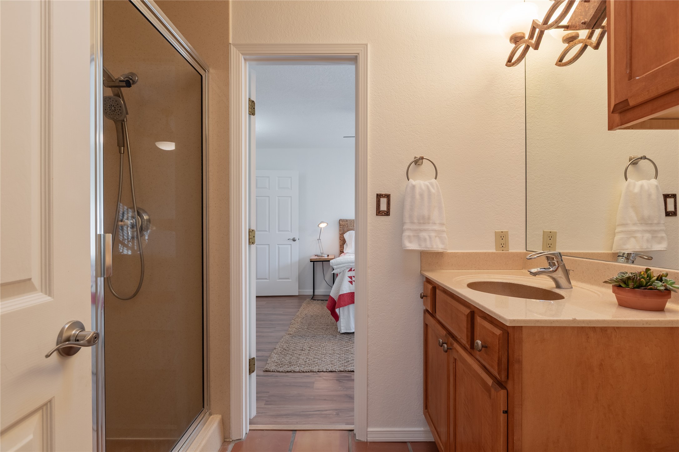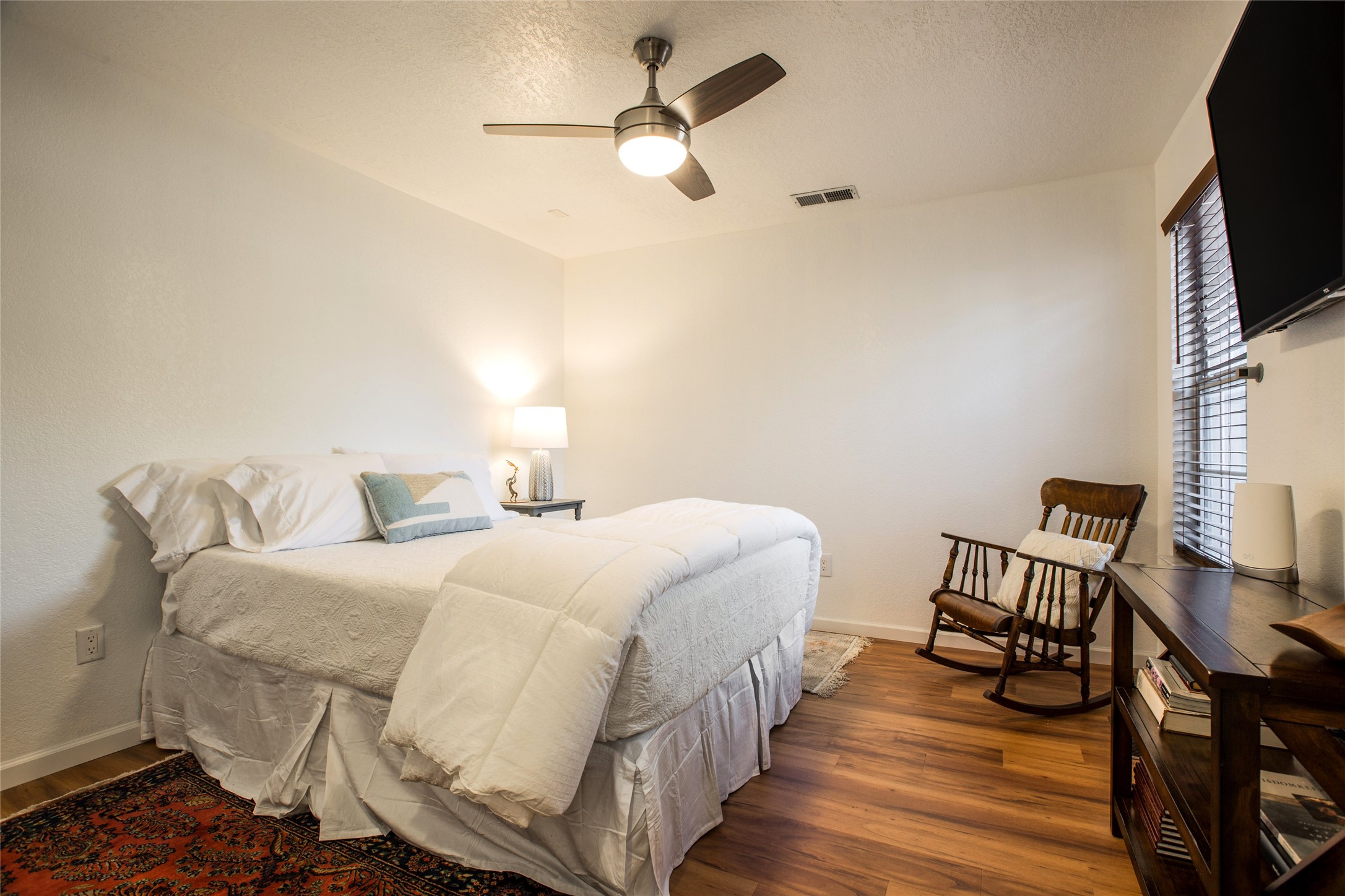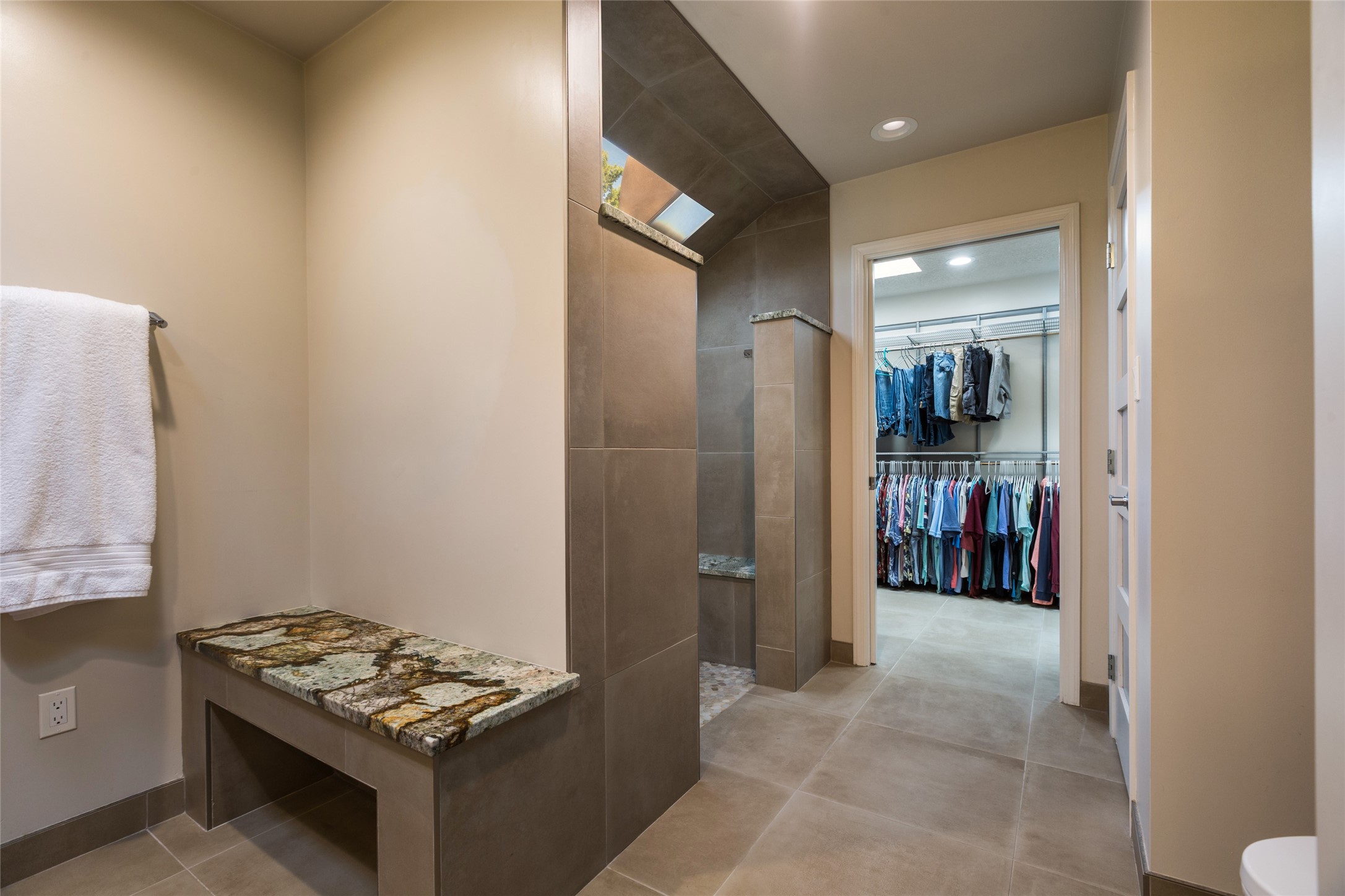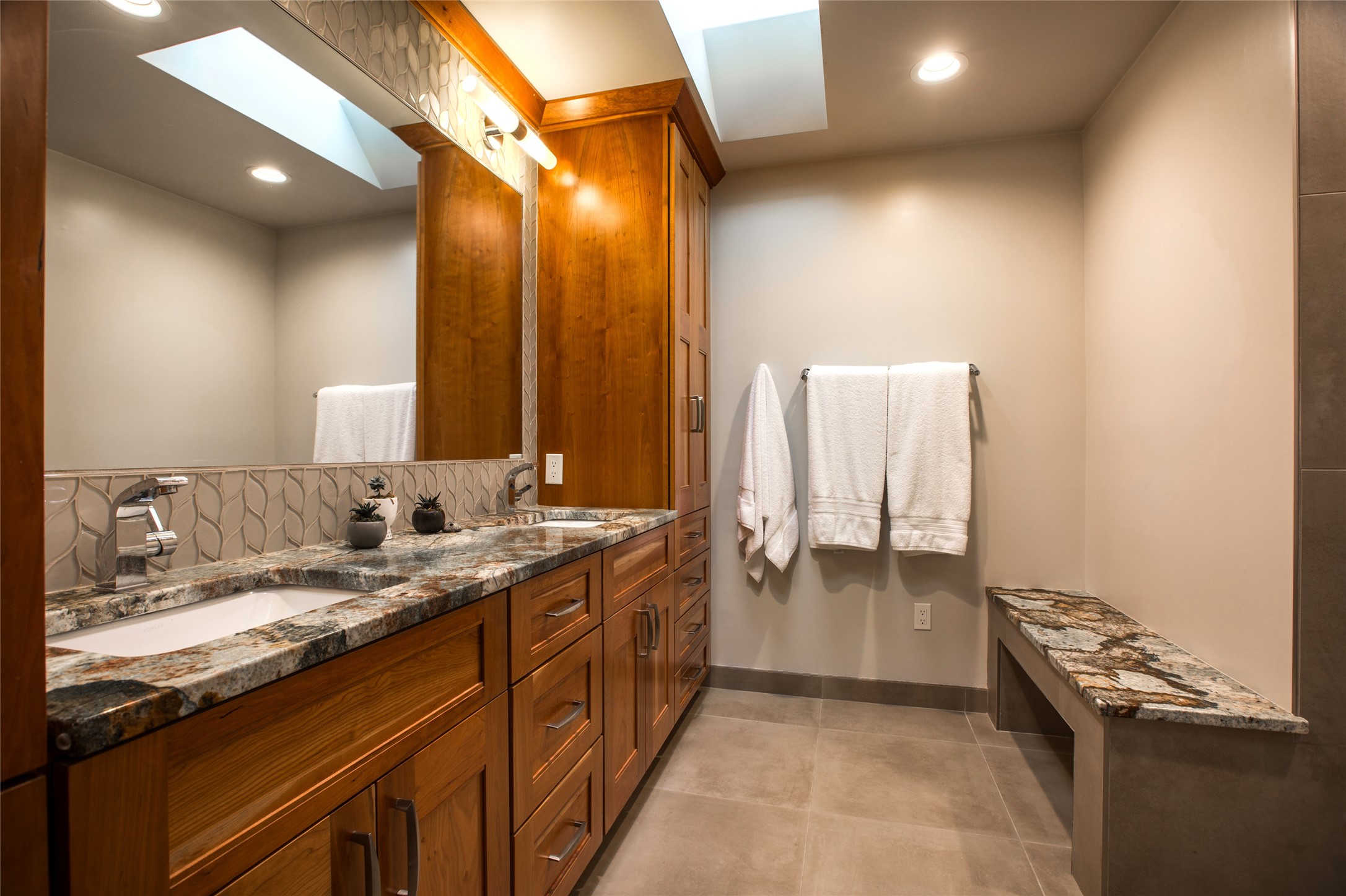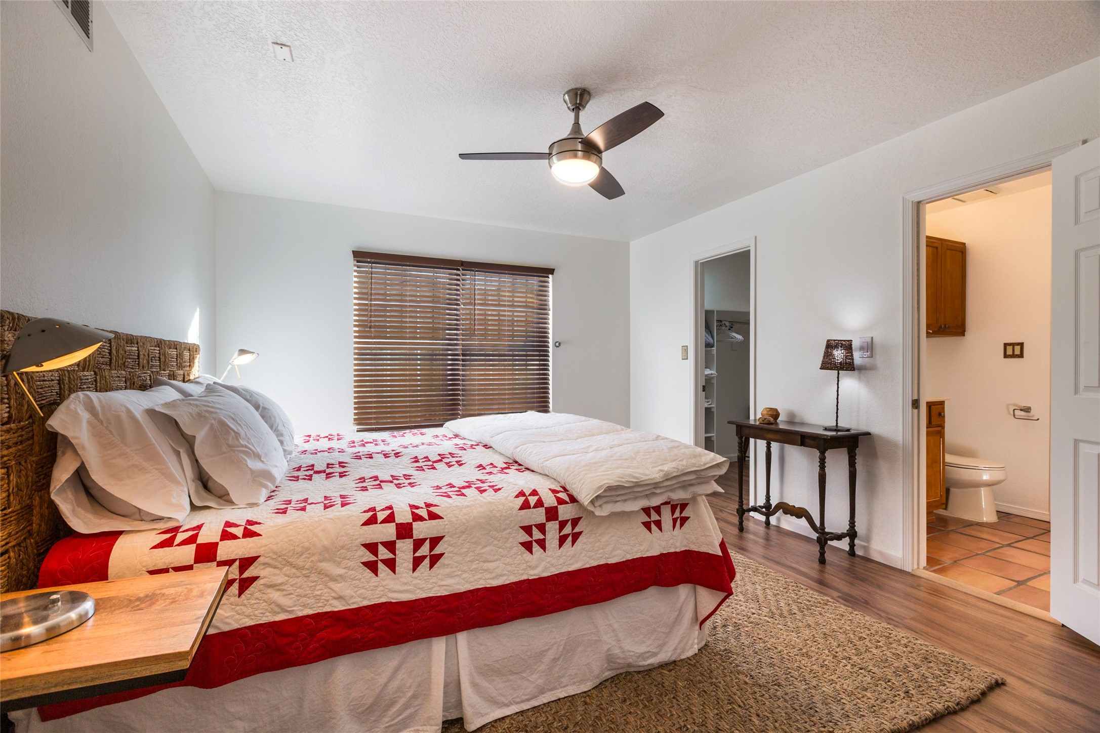 Southwestern beauty in coveted Academy Estates--spacious, single-story, updated, and powered by 30+panel, fully-owned solar for exceptional efficiency. Bright, inviting home offering 4 bedrooms (2 with ensuite baths) plus a dedicated office/2nd living/possible 5th bedroom, and formal dining. High beamed ceilings, clerestory windows, 12 skylights, and a classic kiva fireplace create warm New Mexico character throughout. The updated kitchen features modern finishes, abundant counter space, and seamless flow to the breakfast area and great room. The primary suite includes a beautifully updated bath and generous walk-in closet. Step outside to an oasis-like backyard w/ mature pear, peach, and fig trees, grapes, rock garden, pond with waterfall, and shaded covered patio perfect for entertaining. A raised view deck, accessed from the backyard, offers a peaceful spot for morning coffee or sunset unwinding with gorgeous mountain views. Major upgrades include new refrigerated air, and two new heat pump systems. A 3-car garage, rare for this area, and spacious laundry room, plus NO HOA complete this exceptional offering in Albuquerque's desirable Far North East Heights.