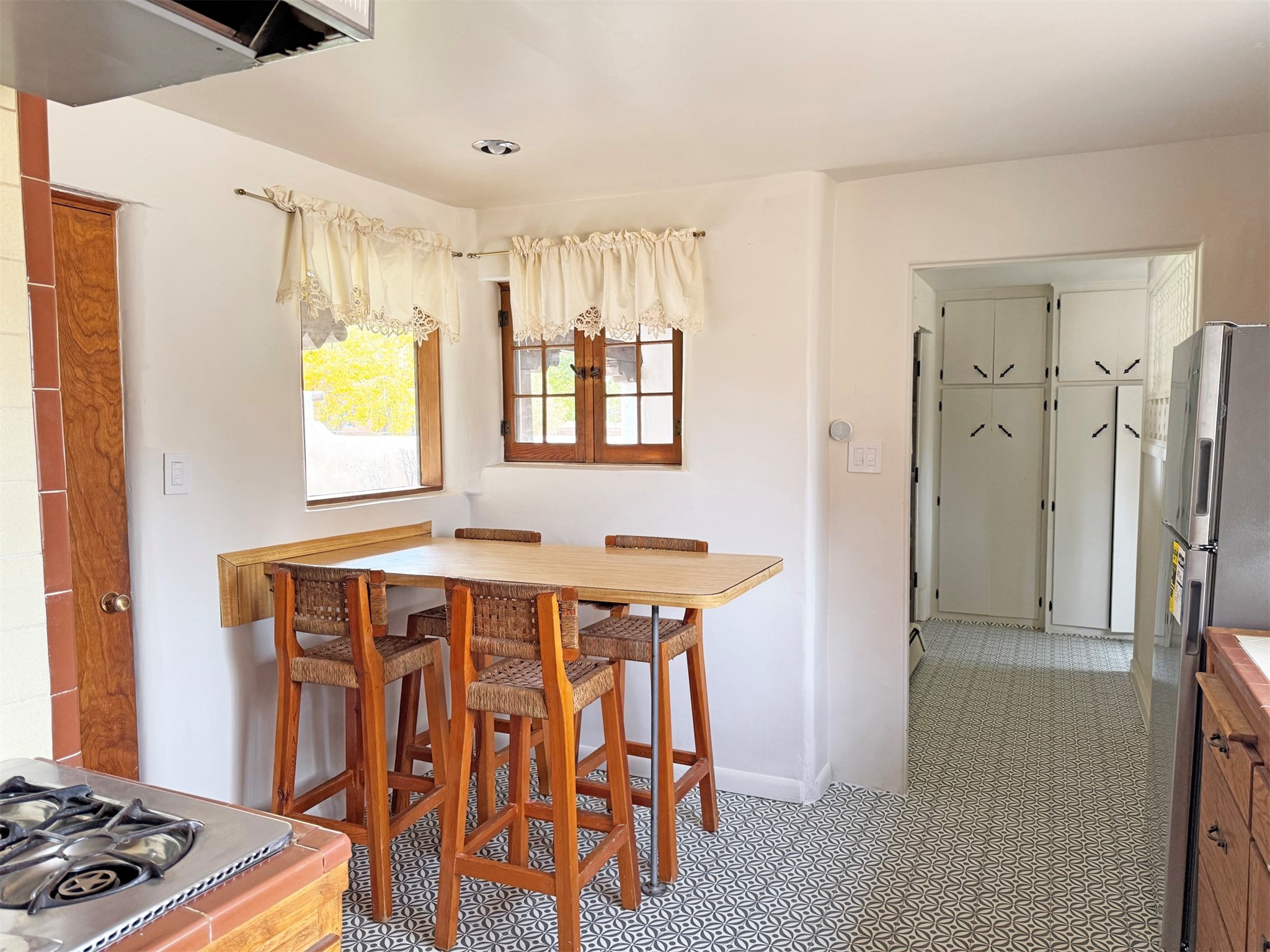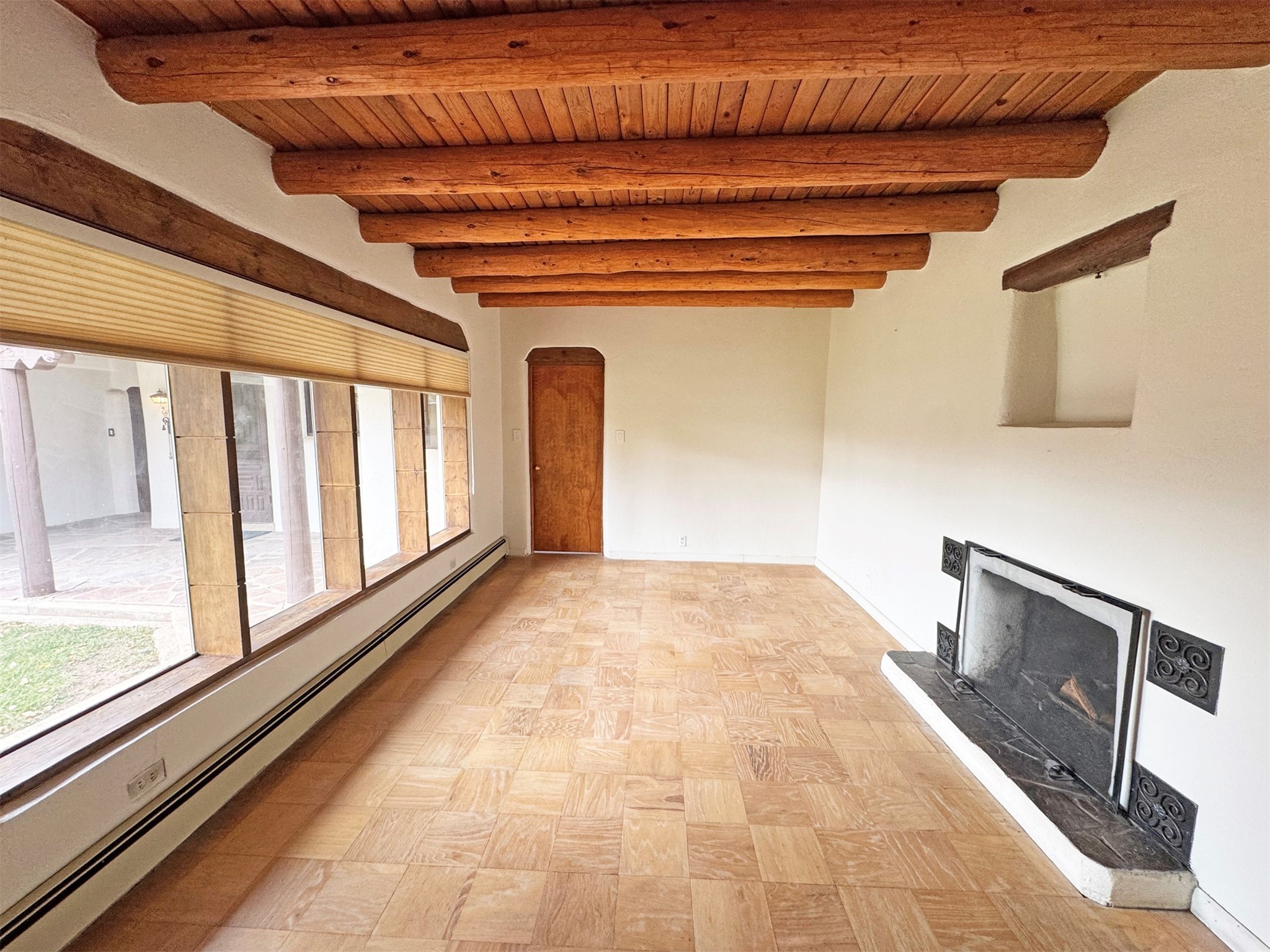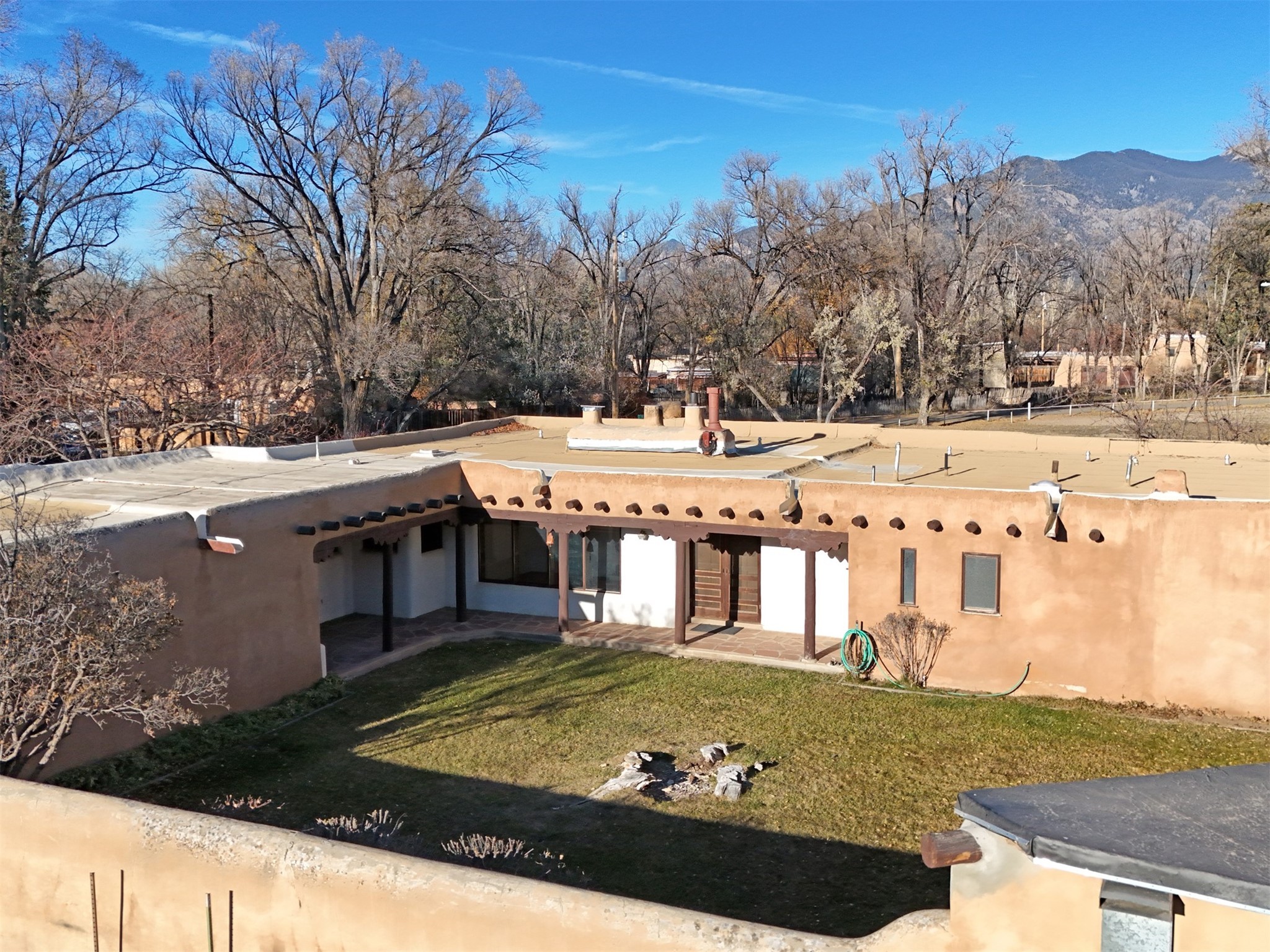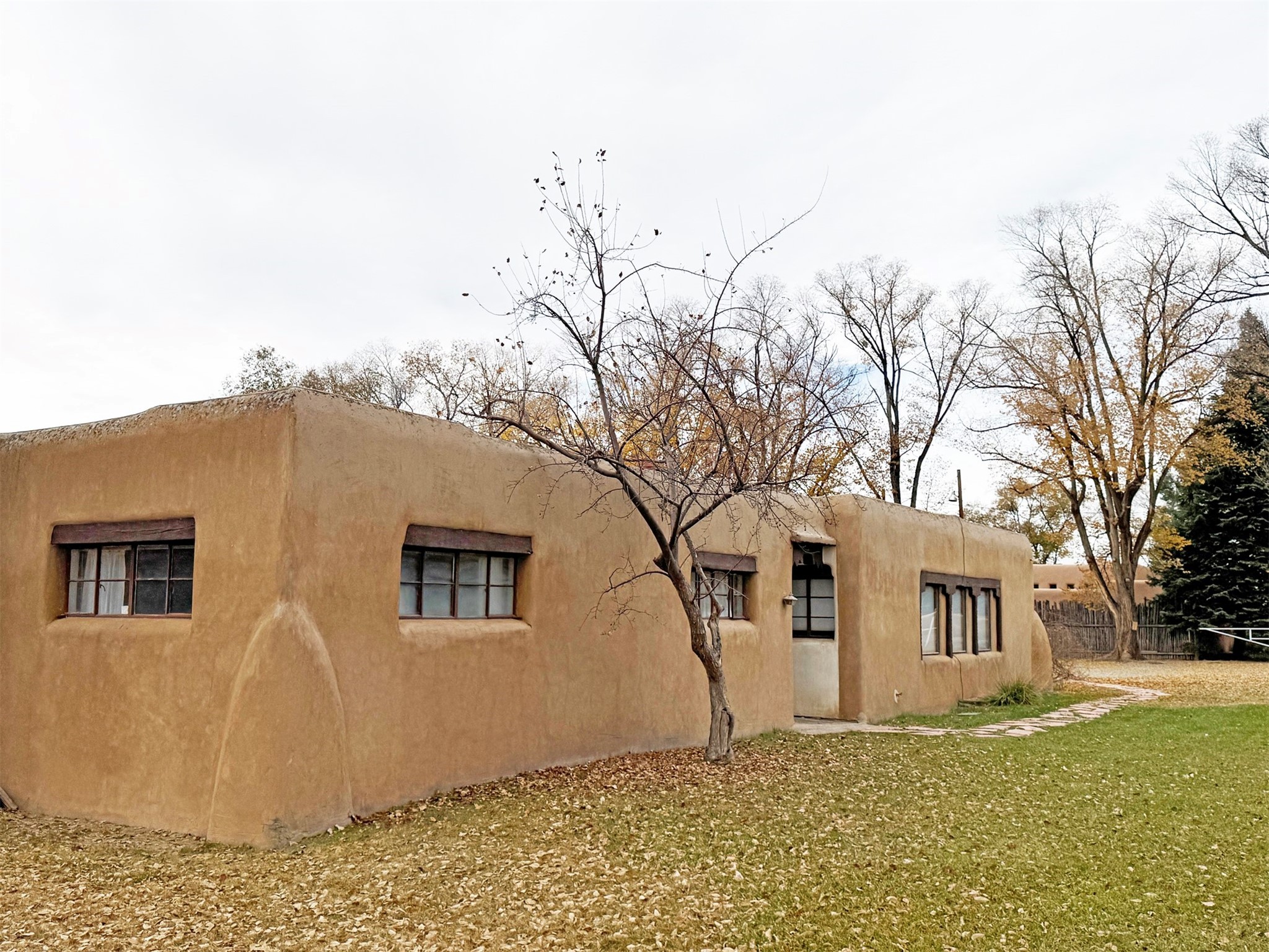 A walk to Taos Plaza estate sited on approximately one, park-like acre of land rarely comes to market! 315 Theodora Street is an authentic 2,365 square feet mid-century adobe structure located on one of Taos' premiere streets with views of Taos Mountain and the Sangre de Cristo foothills. This property offers such flexibility...move in now and complete cosmetic renovations over time; create a spectacular Northern New Mexican period renovation, or use it as a canvas to re-imagine a contemporary mid-century modern rebirth. Whatever choice, this property promises a smart investment with prospective equity gain in a sought after location. A traditional zaguan entry into a private courtyard through a winding portal is reminiscent of a hacienda main house. Inside double doors entry lies a stone floored foyer with a cozy fireplace study to the side, leading into a very spacious Living/Dining area with a stacked rock fireplace. Off the Living Area and Study is a kitchen with eat-in bar and a Butler's Pantry/Utility Room with separate entry. From the kitchen are stairs to an additional 484 square feet basement.