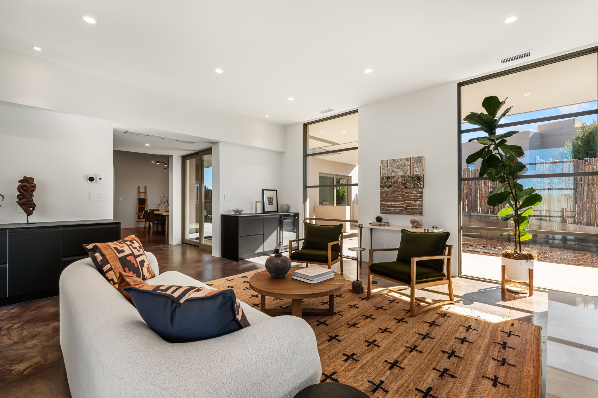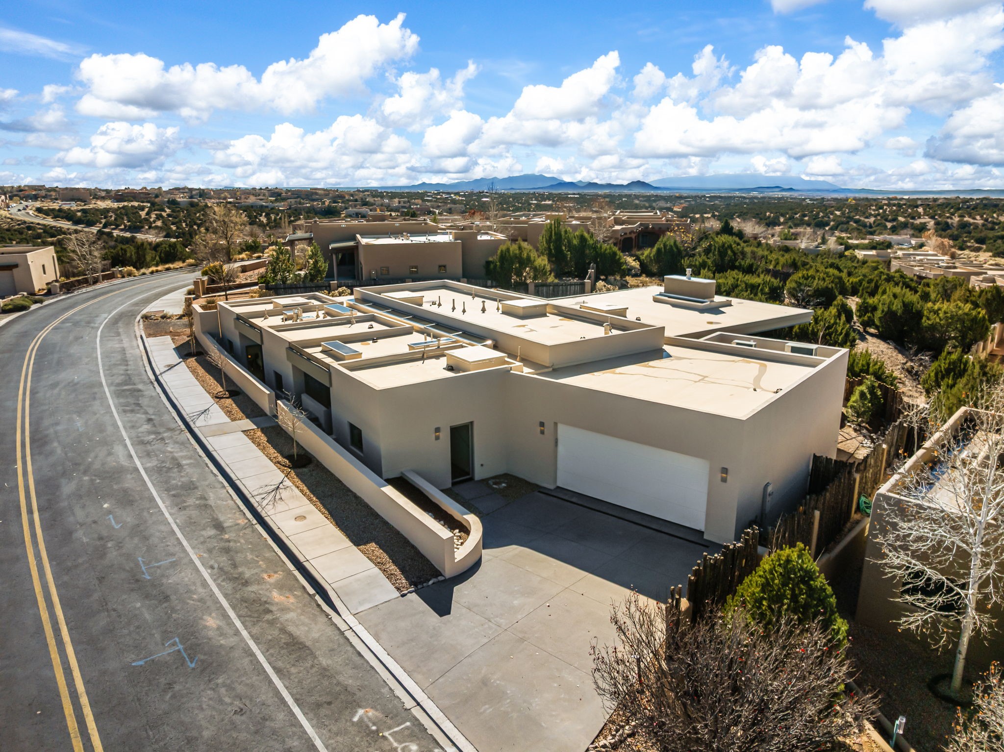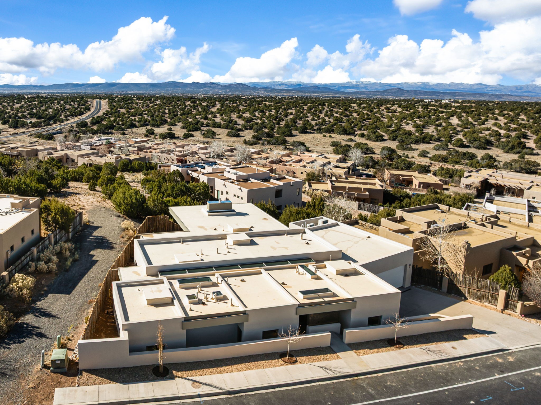 Mesa Modern | Move in now! Experience refined Contemporary Southwestern living in this stunning new construction home by Acacia Builders, a family owned and operated firm renowned for crafting sophisticated, high quality residences. Nestled in the desirable Aldea de Santa Fe community, this 3-bedroom + office home blends modern design with timeless craftsmanship. Just completed, the home Features: Sleek concrete flooring throughout, lux radiant in-floor heating, expansive picture windows that capture sweeping western views of the Jemez Mountains, and clean architectural lines that define contemporary elegance. Thoughtfully designed using Eco Friendly, ICF construction materials (insulated concrete forms) and a floorplan to maximize light and space, this residence will offer an ideal balance of form and function -- perfect for both serene living and stylish entertaining. With a legacy rooted in quality, attention to detail, and innovation, Acacia Builders delivers a home where every design choice reflects a deep commitment to excellence and modern aesthetics. Now is your opportunity to own a future-forward home in one of Santa Fe's most sought-after communities.