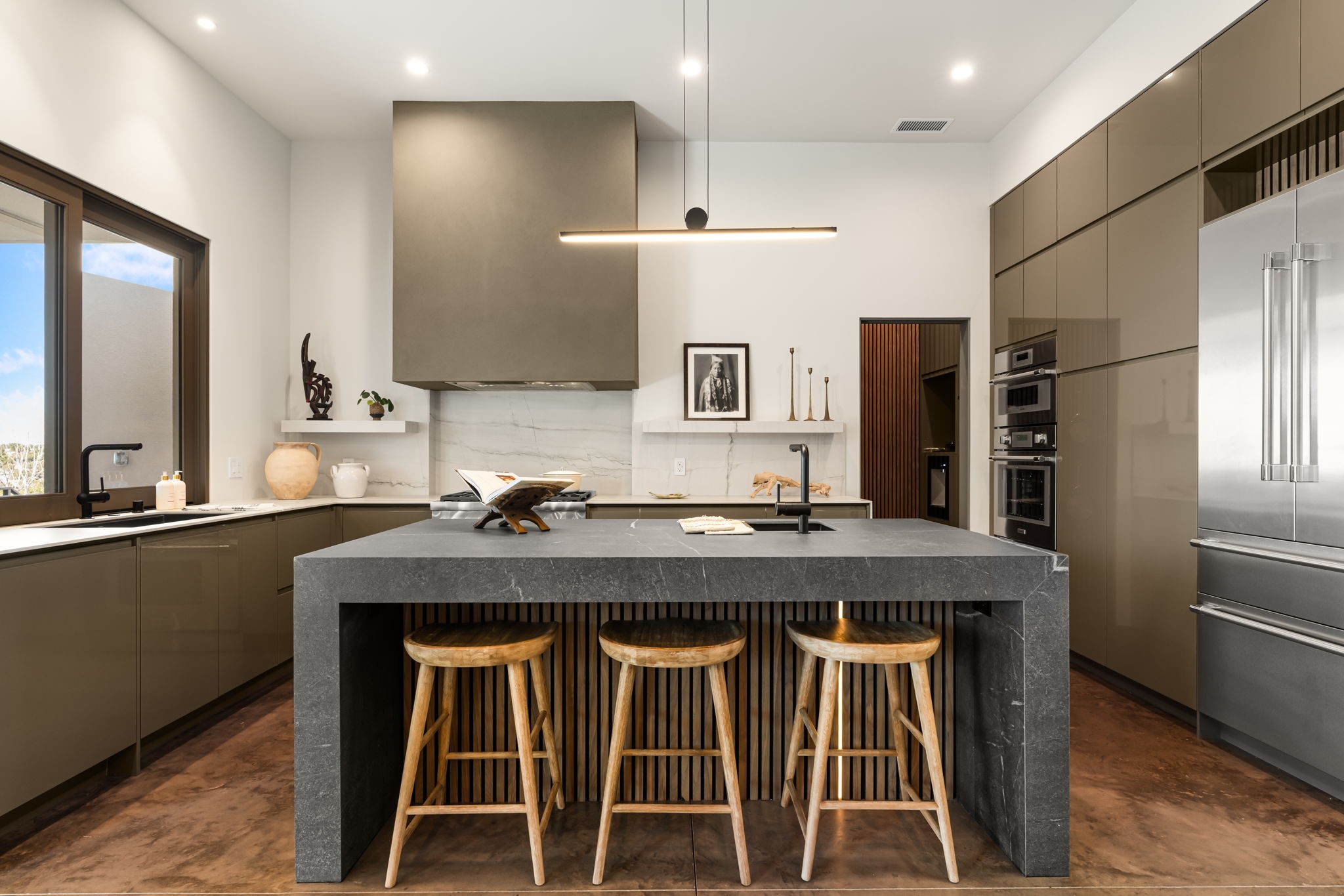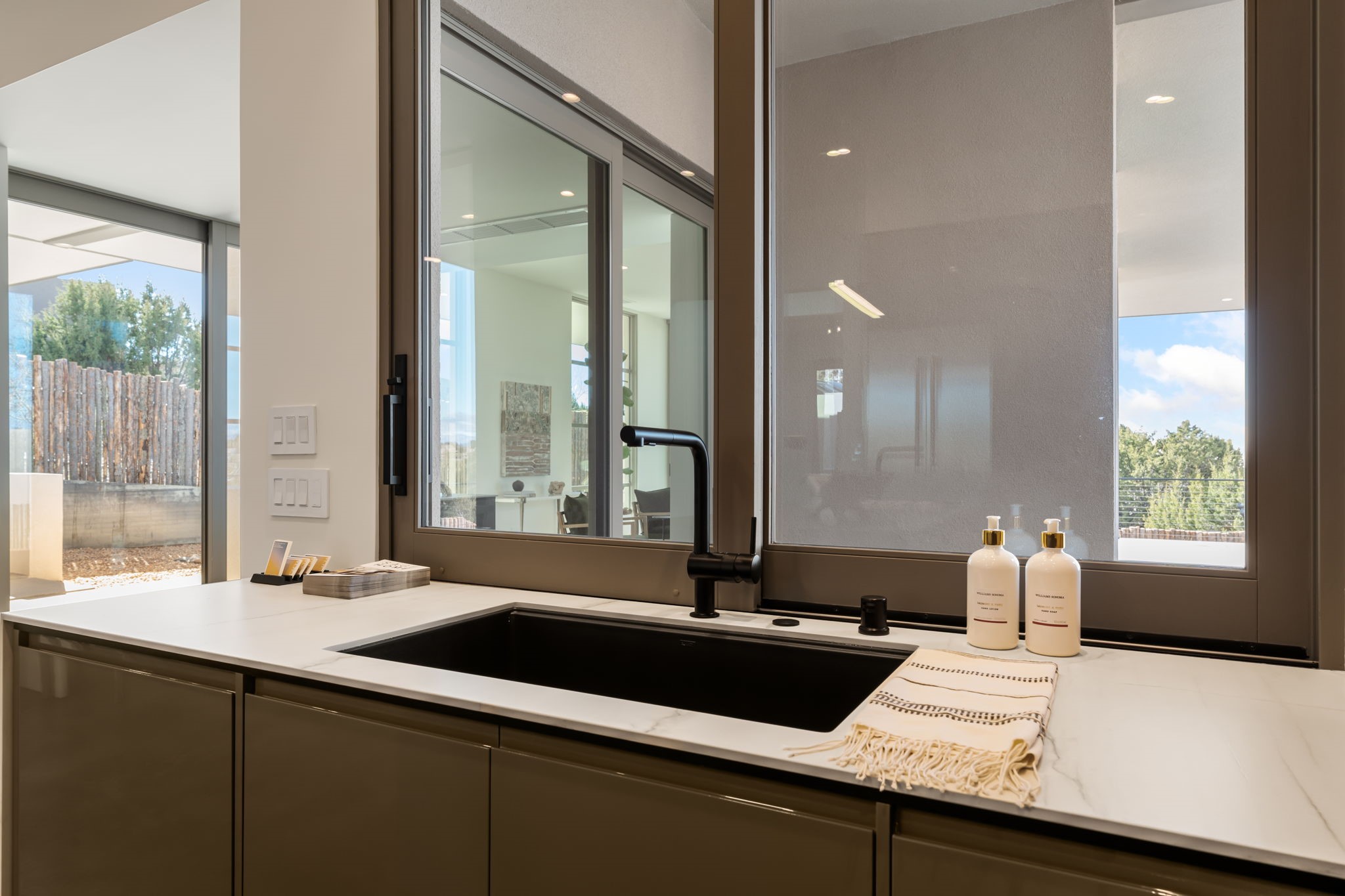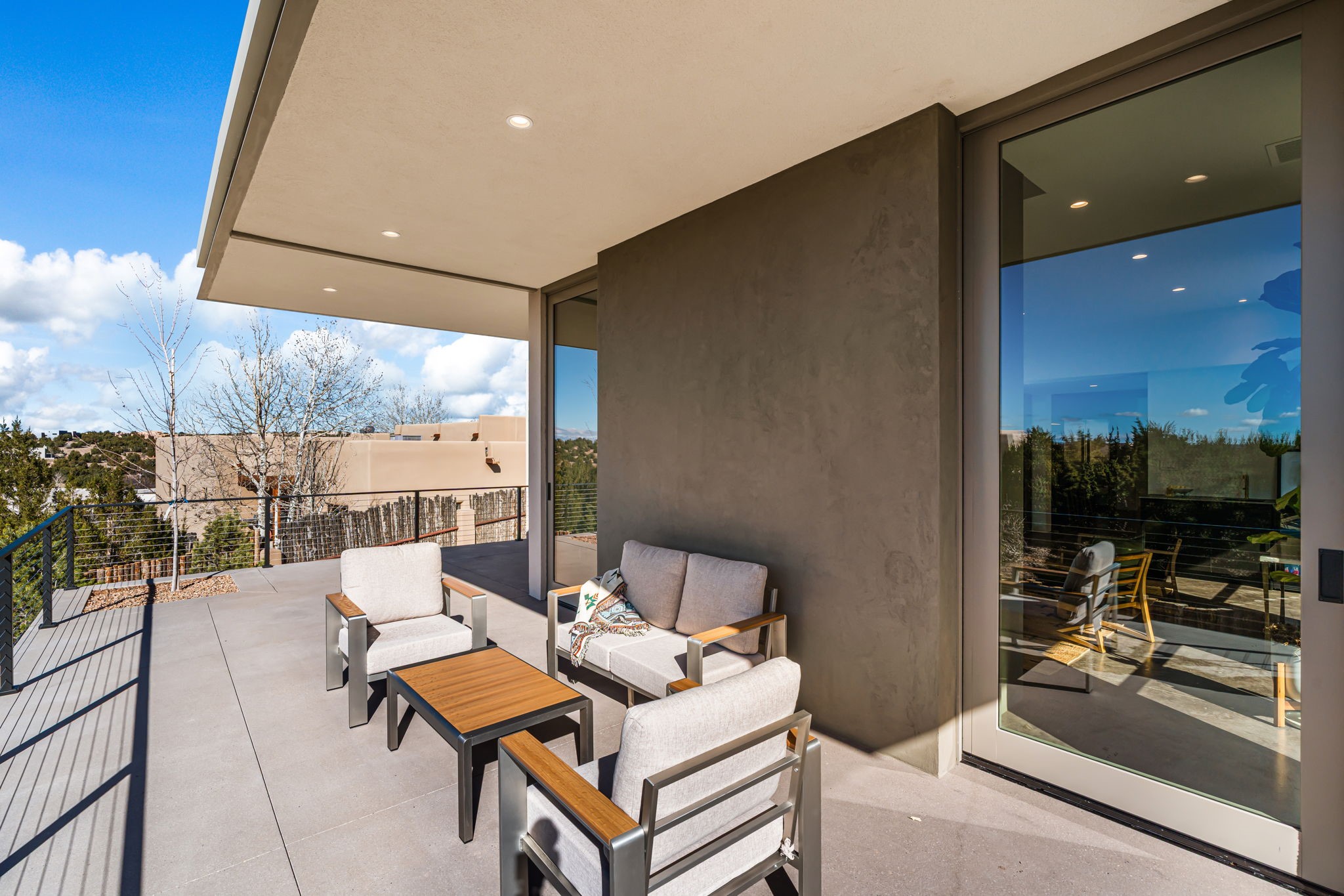 Mesa Modern | Move in now! Experience refined Contemporary Southwestern living in this stunning new construction home by Acacia Builders, a family owned and operated firm renowned for crafting sophisticated, high quality residences. Nestled in the desirable Aldea de Santa Fe community, this 3-bedroom + office home blends modern design with timeless craftsmanship. Just completed, the home Features: Sleek concrete flooring throughout, lux radiant in-floor heating, expansive picture windows that capture sweeping western views of the Jemez Mountains, and clean architectural lines that define contemporary elegance. Thoughtfully designed using Eco Friendly, ICF construction materials (insulated concrete forms) and a floorplan to maximize light and space, this residence will offer an ideal balance of form and function -- perfect for both serene living and stylish entertaining. With a legacy rooted in quality, attention to detail, and innovation, Acacia Builders delivers a home where every design choice reflects a deep commitment to excellence and modern aesthetics. Now is your opportunity to own a future-forward home in one of Santa Fe's most sought-after communities.