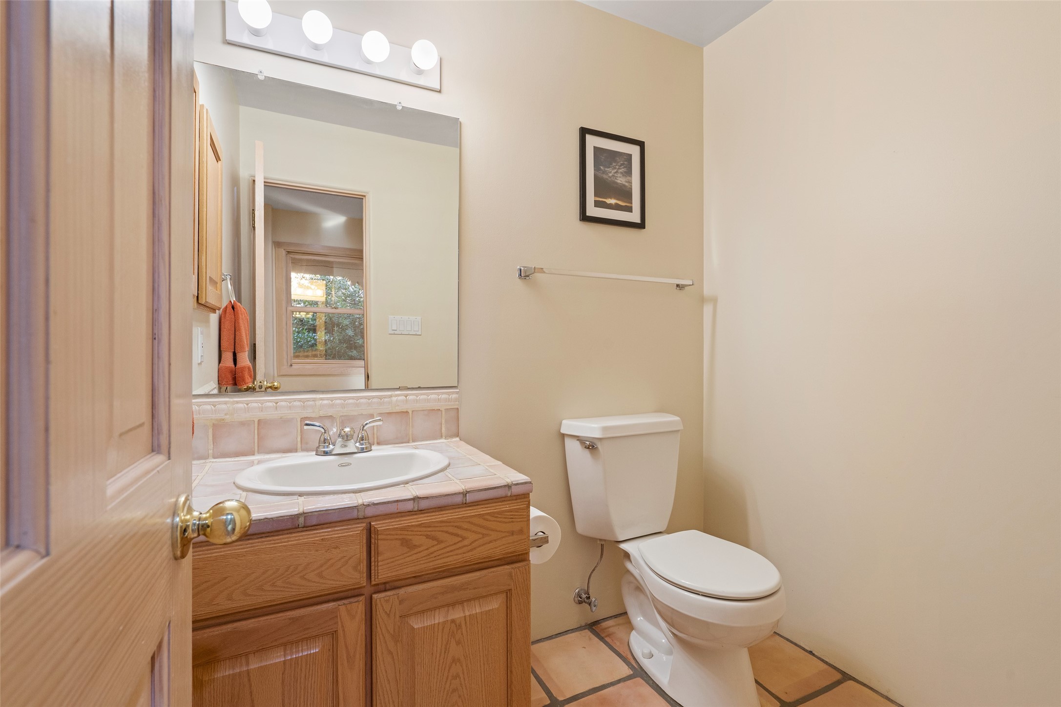 Welcome home! This light and bright two-story home in the quiet neighborhood of Pueblos del Sol, offers convenience, southwest character with vigas and a kiva fireplace as well as thoughtful updates throughout. Enjoy the classic Saltillo tile flooring on the main level and a mature, fully fenced, tree-filled backyard that provides both shade and charm to enjoy while sitting on the finished back deck! Upstairs, you'll find three sunny bedrooms with newer carpet, including a spacious primary suite featuring a generous walk-in closet and a bathroom illuminated by skylights that welcome in beautiful New Mexico sunshine. And don't forget the heated 2 car garage for conveneince! Ideally located, this home offers quick access to coffee shops, restaurants, medical facilities, and an easy commute to I-25, 599, and Hwy 285/84. Schedule a showing today, don't miss this one!