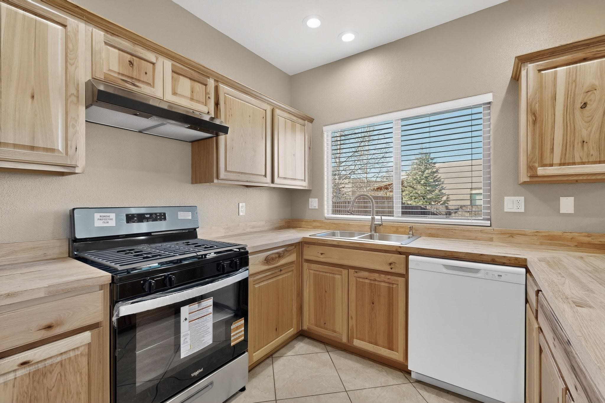 Welcome to this beautifully updated 5-bedroom, 2.5-bathroom home offering modern comfort and move-in-ready appeal! Step inside to discover fresh new flooring throughout, complemented by a brand-new paint job that brightens every room. The kitchen features sleek NEW cabinets, countertops, a refrigerator, and stove--perfect for everyday living and entertaining. Outside, the curb appeal shines with NEW exterior paint, fresh xeriscape landscaping design, and freshly stained wood fencing for added privacy. The finished garage also boasts durable NEW epoxy flooring. Recent mechanical upgrades ensure peace of mind: a new water heater (less than 2 years old), new air conditioning and condenser (less than 3 years old), and a roof replaced with premium silicone foam approximately 5 years ago, backed by a 10-year guarantee from the installation date.
