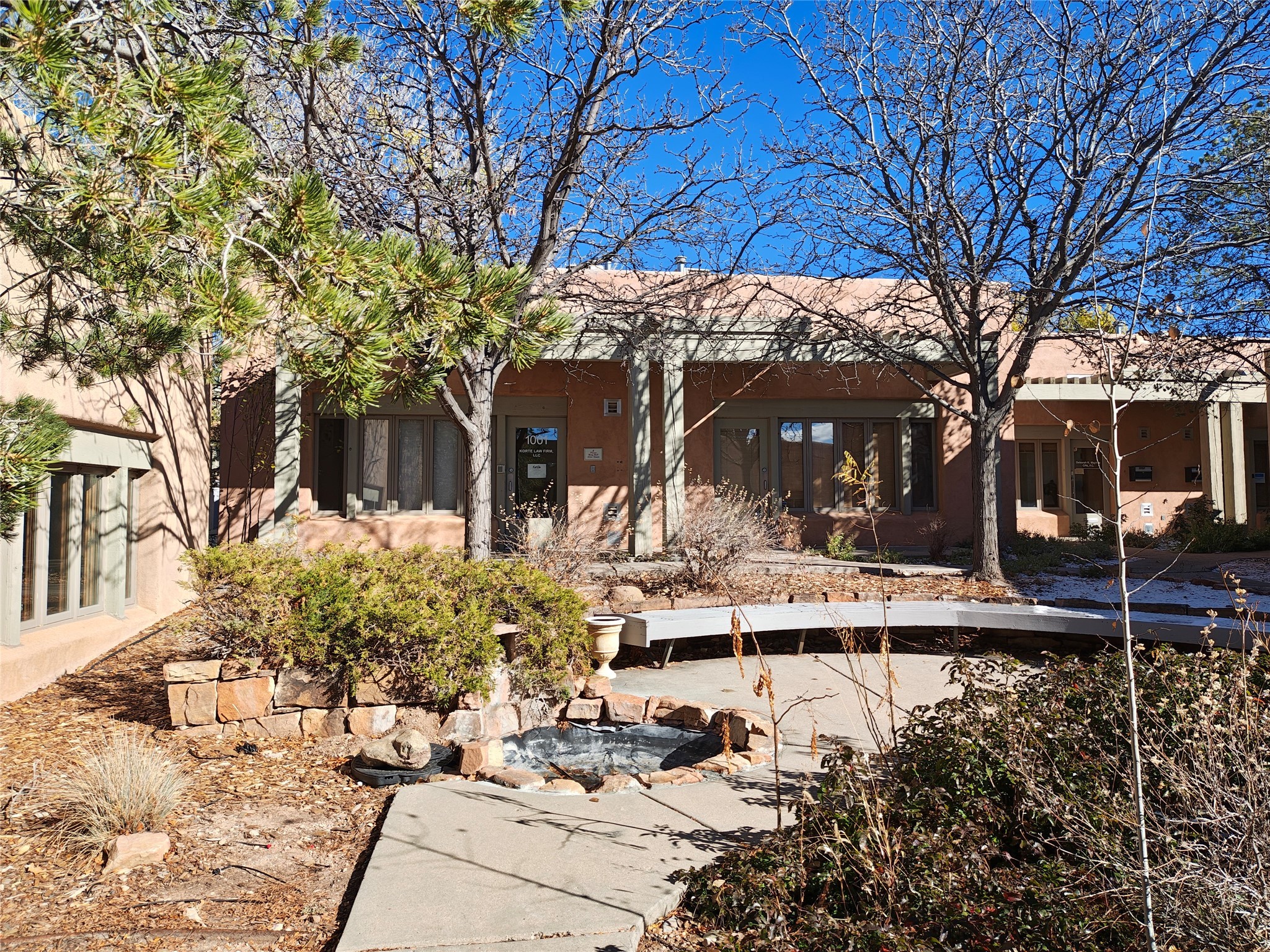 Santa Fe's Premier Courtyard Office Park. Caddy corner from the hospital. St. Michael's frontage. Originally the headquarters of a venture capital firm, this unit features carved woodwork, a dramatic reception, 4 large offices/conference rooms, a circular outdoor fountain with benches, tons of operable windows, and great parking.DISCLAIRMER: PLEASE NOTE THAT THIS LISTING AND ANY CONTRACT IS SUBJECT TO LANDLORD PAYING OFF ITS MORTGAGE. ASK LISTING AGENT FOR DETAILS.