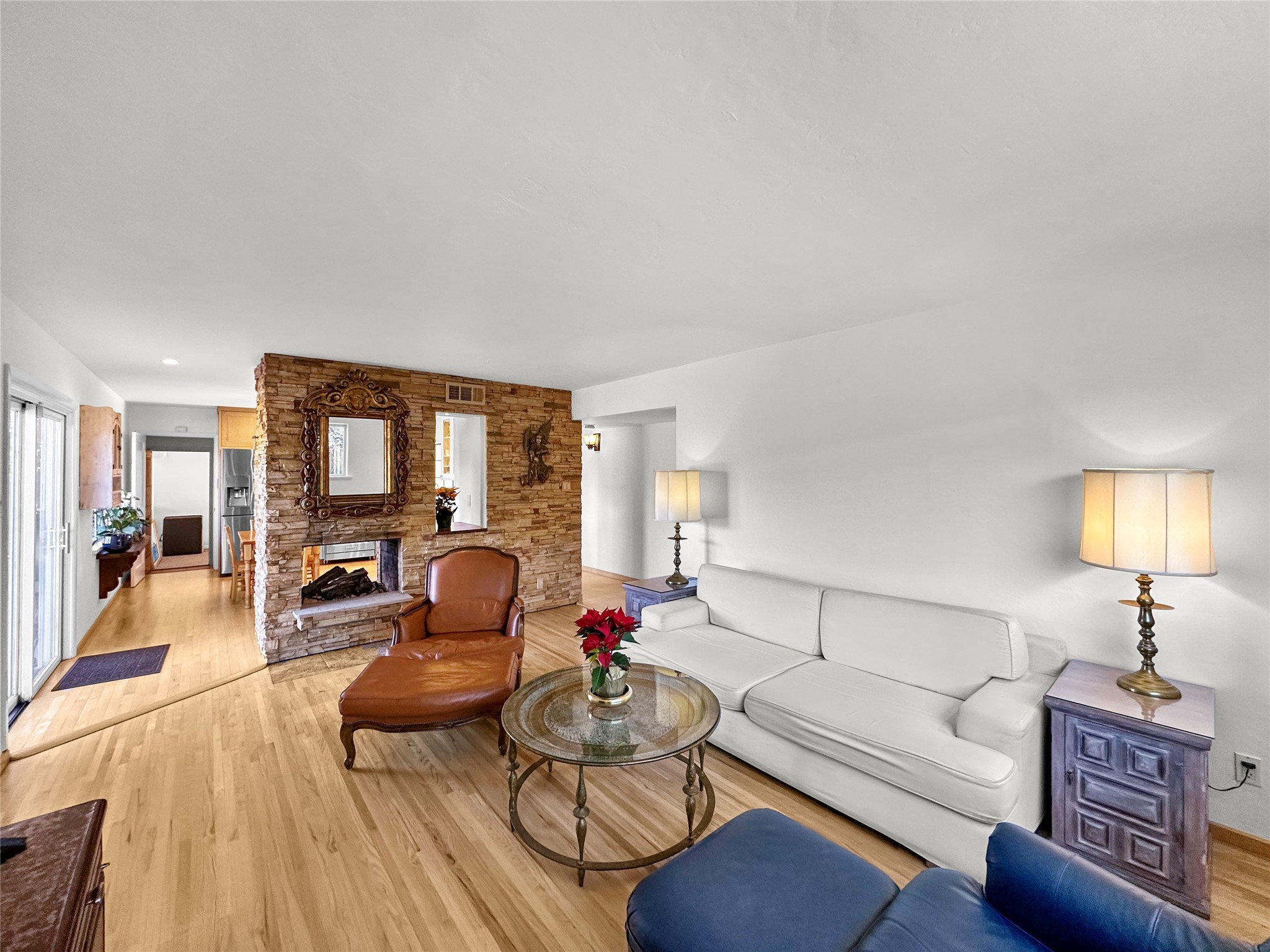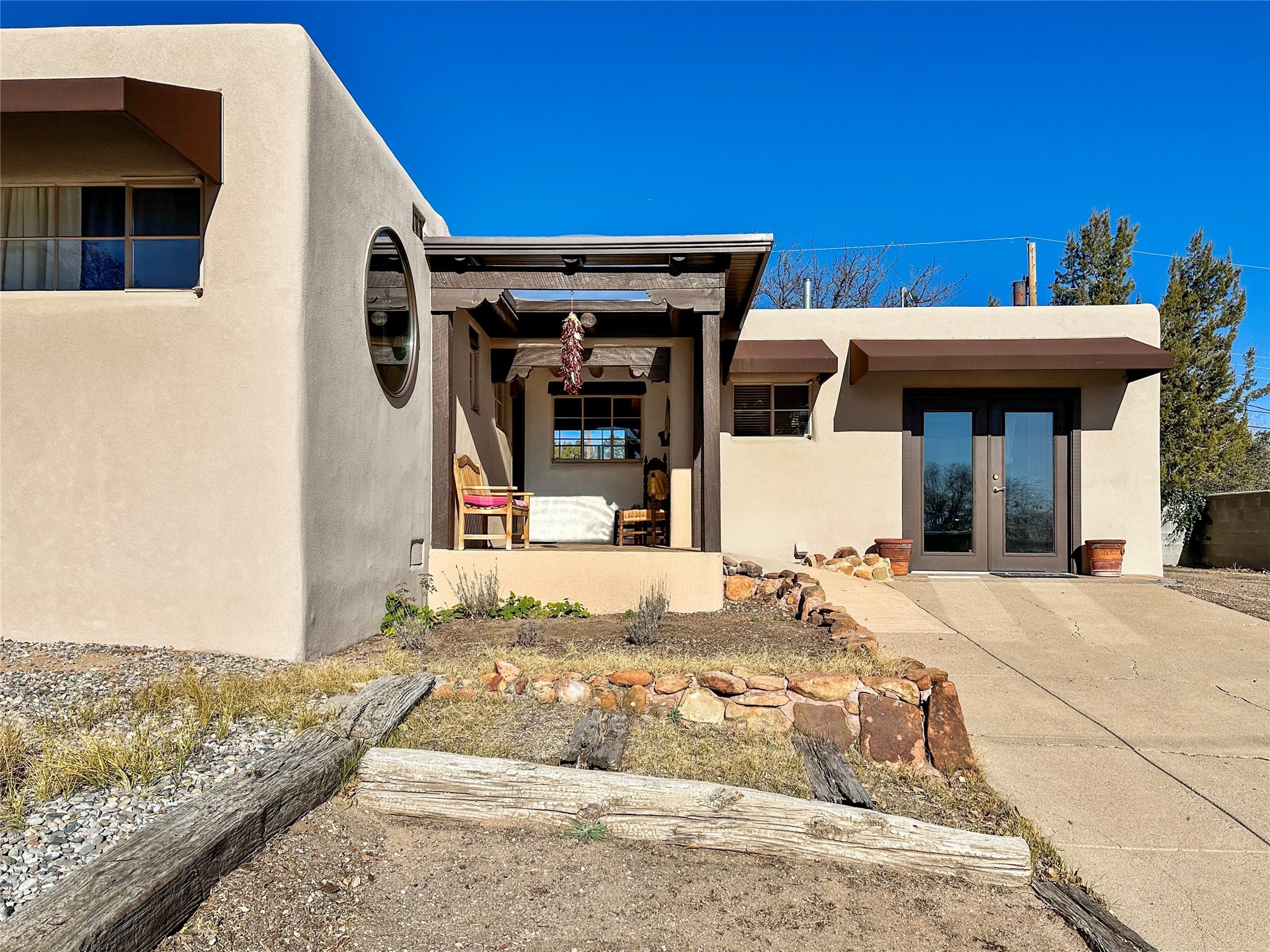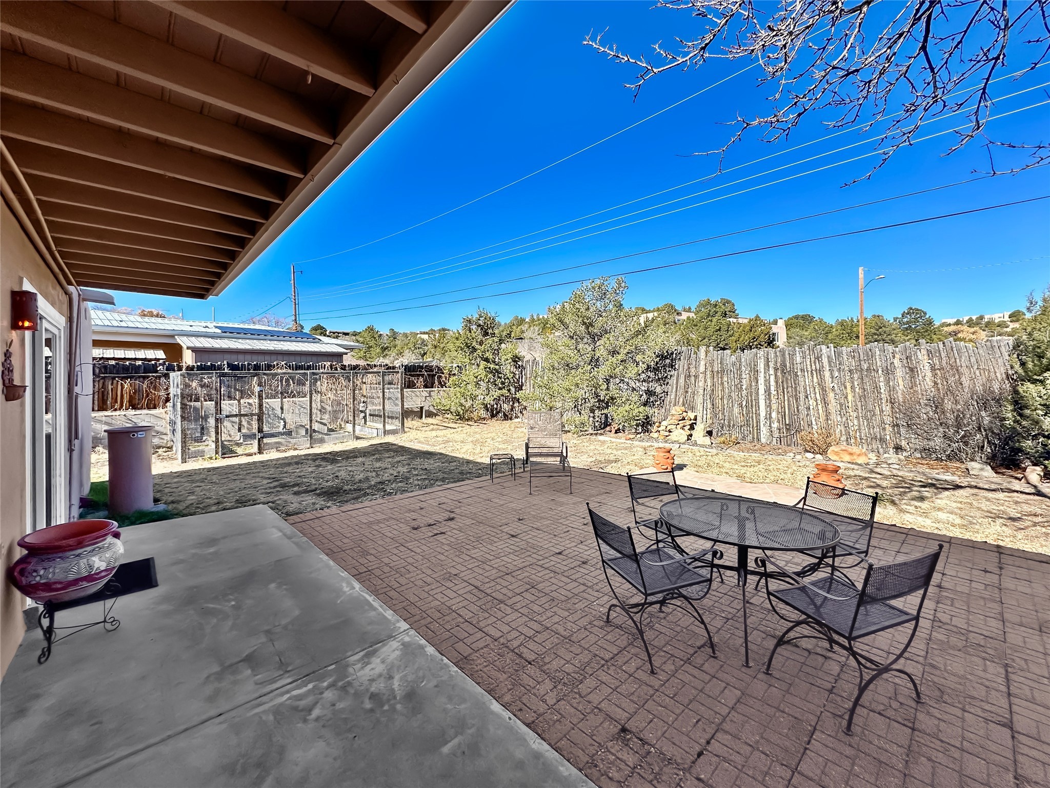 The best location in Casa Solana. Up on the hill overlooking the city with mountain views, this updated Stamm home has it all. An easy walk to the dog park and the community pool. Neighborhood shopping and restaurants, 1.5 miles from the Santa Fe Plaza. Three bedrooms, three baths, plus a bonus studio/office, or bedroom with an exterior entrance. Fantastic updates include a modern cook's kitchen with stainless steel appliances and a Wolf range. Beautifully finished light oak flooring, a two-sided fireplace. Walled backyard with a protected garden area, a large patio with mountain views. New Brai roof (2021 - 8-year warranty, includes annual inspections). On-demand hot water (2024). Ducted evaporative cooler. Mini split (heat/cool) in the studio. Reverse osmosis filtration in the kitchen. Countless updates and wonderful maintenance. Priced to sell. Schedule a showing today.