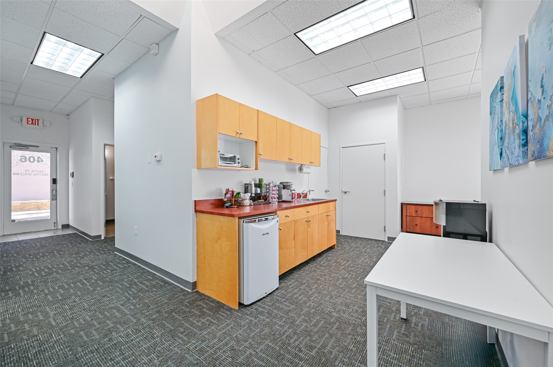 Conveniently situated office condo on the west end of town. This recently updated unit offers three offices and one large conference/training room. In-suite kitchenette and private ADA restroom. The space includes a double-door entry for receiving, along with a shared loading area. The complex hosts a variety of businesses, including counseling offices, churches, and a government office, and with I-1 zoning, it is suitable for a wide range of uses. Professionally managed.