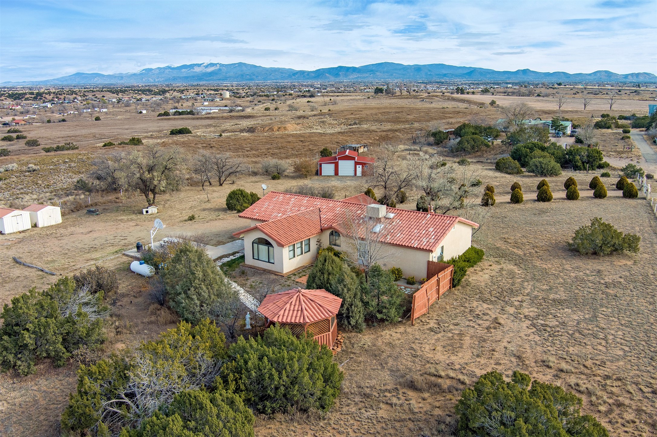 Listed below July 2025 appraisal on 2.5 tree-lined acres in La Cienega, 9 Puerto de Luna offers 3 bedrooms, 2 full baths a detached garage/shop and plenty of storage. This one-owner, well-cared-for property with its panoramic views offers year-round enjoyment both inside and out. Filled with an abundance of natural light, spacious layout with a nice sized kitchen, comfortable living areas and bedroom separation from the primary. The primary bedroom, closet and bath are huge! Utilities are provided by a private well, septic, and propane. The garage will house an RV with easy access off a private road, property is fully fenced. Enjoy the peace and SPACE of the community of La Cienega while being a quick drive into Santa Fe and access to the Santa Fe airport within minutes. Also, just minutes from Ojo Spa Santa Fe and Rancho de Las Golodrinas.