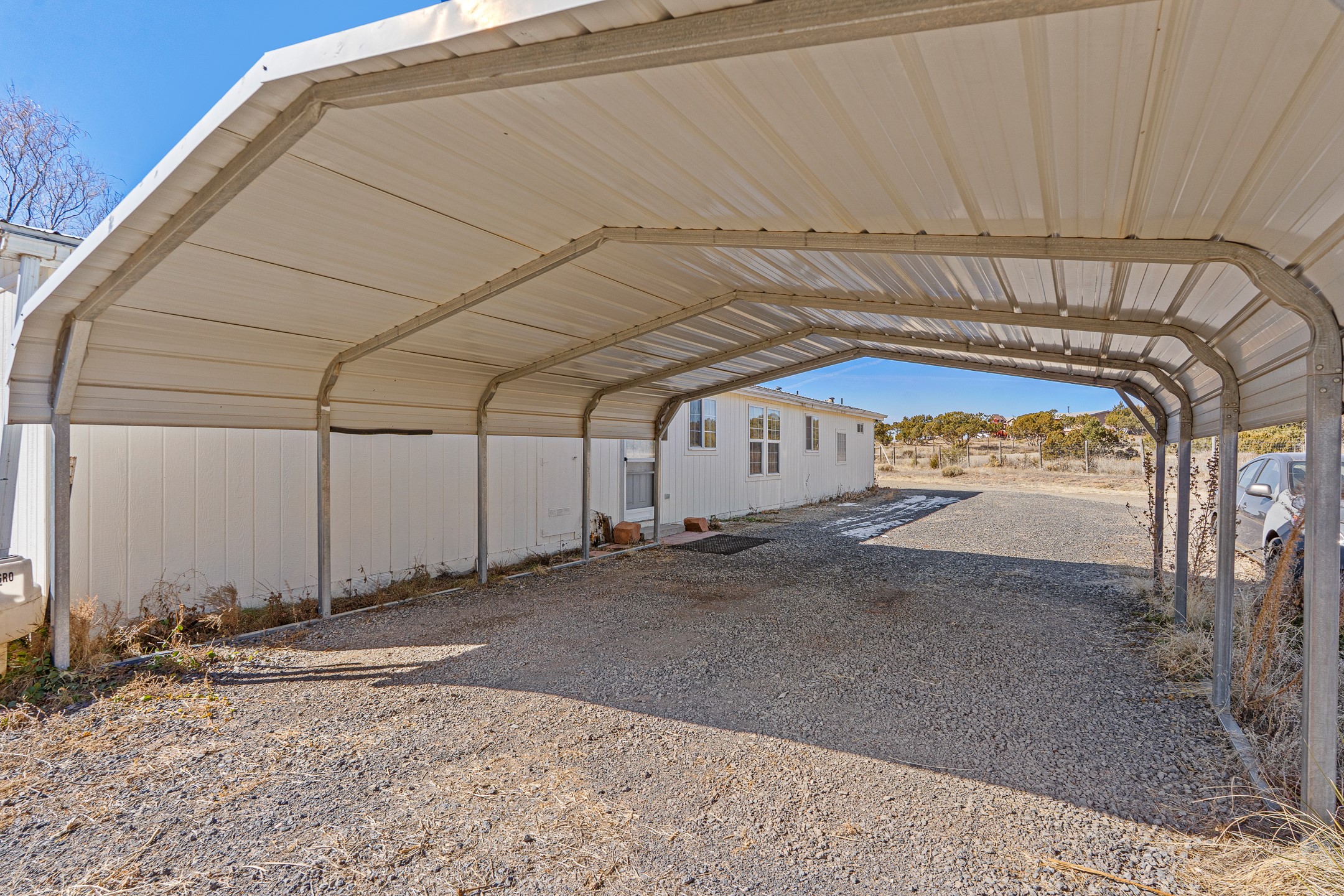Peaceful private home in a rural setting with easy access to amenities and downtown Santa Fe. Enclosed front yard, metal roofing, refrigerated ac. Large new shop building for all your creative activities and storage. Large lot is fully fenced for your privacy and enjoyment.