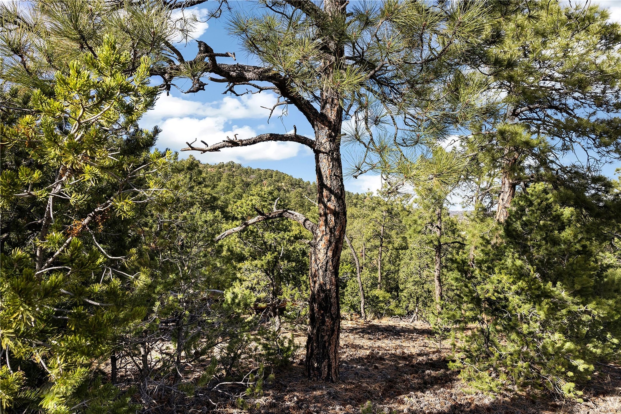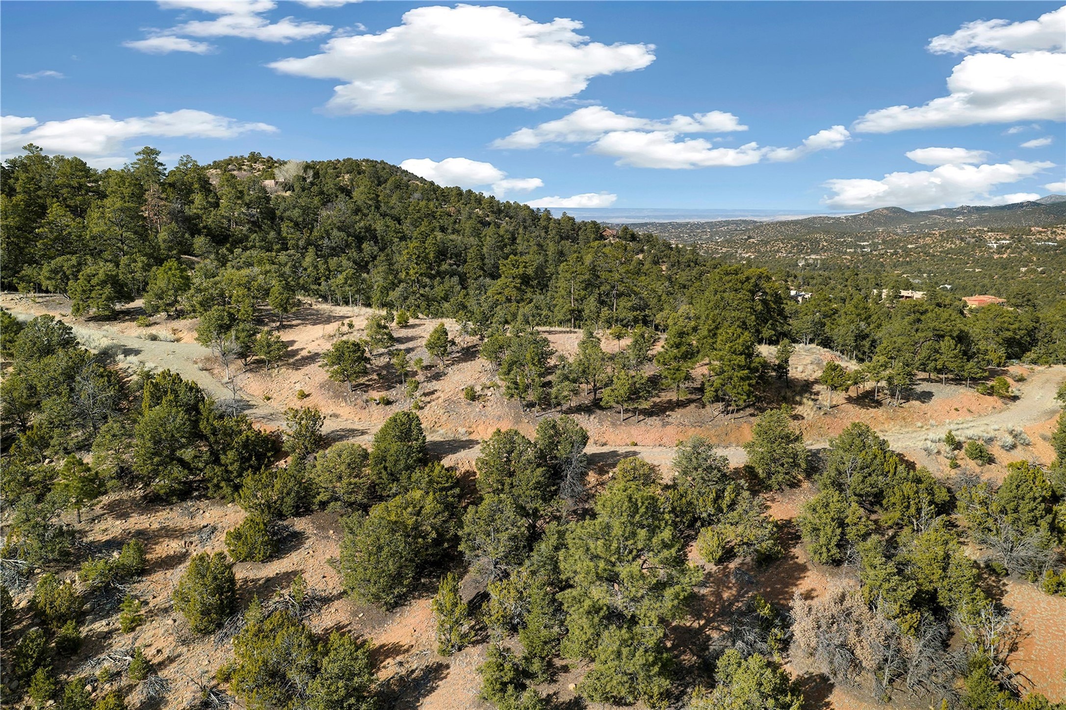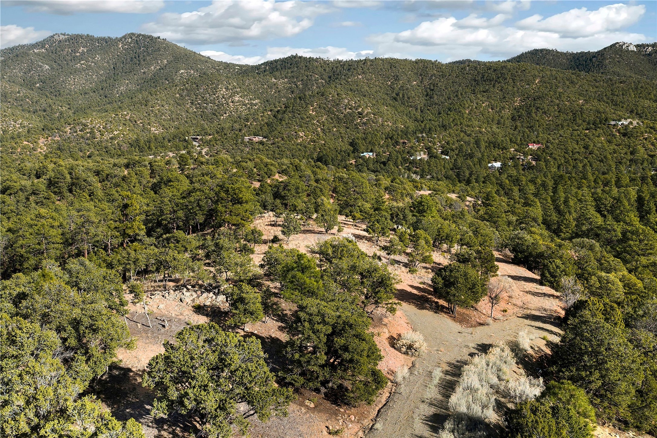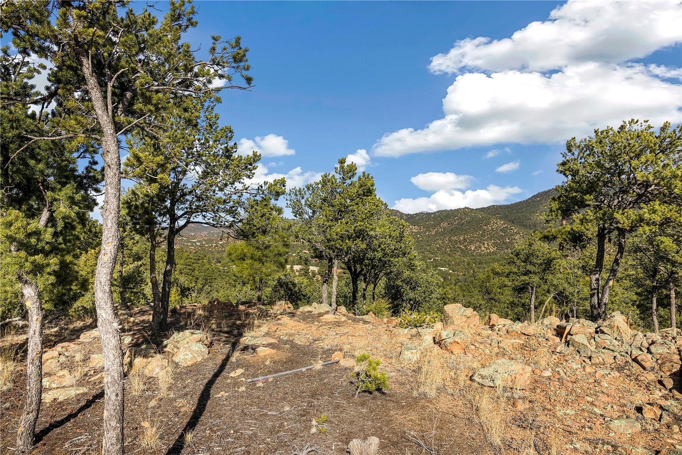 Located at the top of gated Double Arrow Road in the Abajo del Cielo subdivision, this approximately 7.5-acre residential parcel offers exceptional privacy, serenity, and sweeping unblock-able treetop, valley, and high-mountain views. The land features beautiful natural rock formations and Ponderosa Pines, mature pion trees, creating a rich, quintessentially Santa Fe landscape. The building site has been partially cleared to maximize vistas while preserving the wooded terrain, offering an ideal setting for a custom home. Valuable improvements include a septic system and a shared well with one neighbor, providing a significant head start for future construction. Access is convenient, with the road paved nearly to the property; only the last few hundred feet transition to the gravel driveway leading to the homesite. With generous acreage and varied terrain, the property supports thoughtful site design, and outdoor living spaces. Minutes from St. John's College, Museum Hill, and surrounding trail systems, this location blends peaceful seclusion with quick access to the Santa Fe Plaza, Canyon Road, shops, dining, and cultural amenities. A rare opportunity to build in a gated mountain setting off of Old Santa Fe Trail with natural beauty, infrastructure already in place, and no HOA fees, with the exception of shared road maintenance.