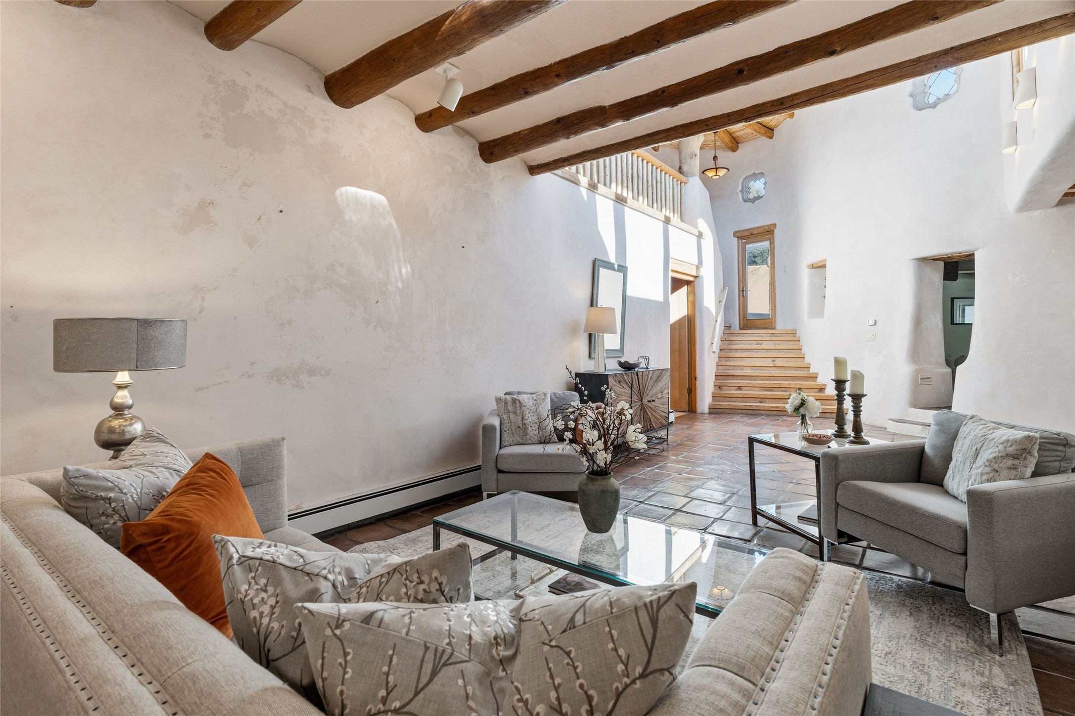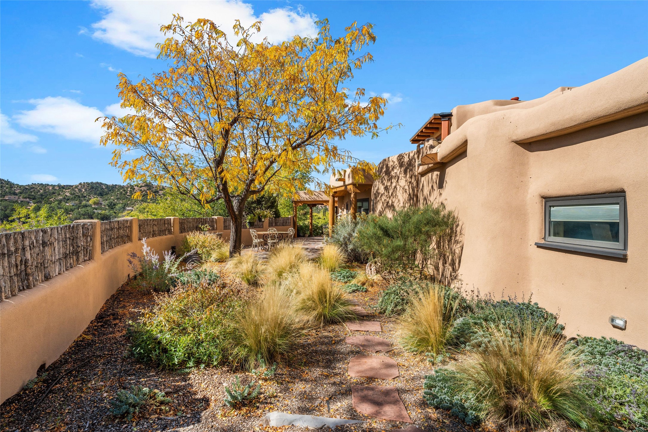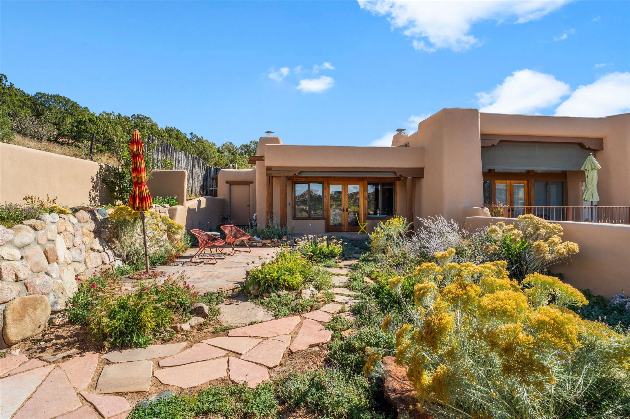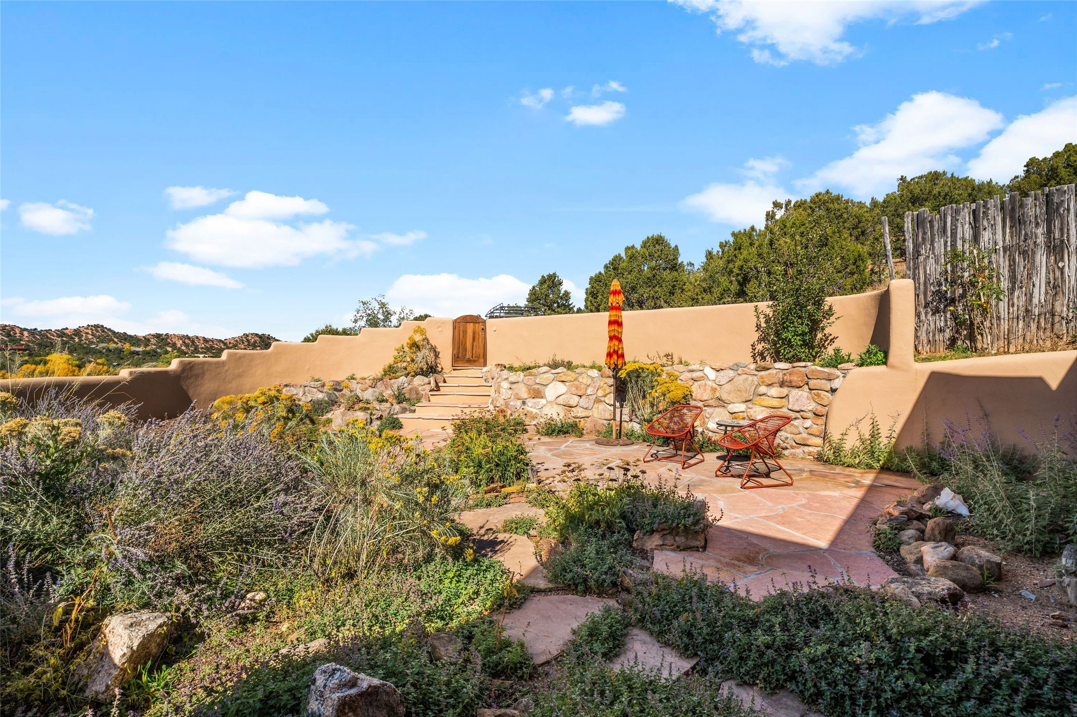 Where History Meets the River. In the heart of the Tesuque foothills, where the river still runs and cottonwoods shade the valley floor, stands a home unlike any other in Santa Fe. At its center: a circular Kiva with three-foot-thick adobe walls, built as a silo by the Tewa people in the 1750s--a full century before the tax assessor's official 1867 date. These massive walls have witnessed the entire arc of New Mexico's history, from Spanish colonial times through statehood and into the present day. The intimate, contemplative space of the Kiva--one of seven fireplaces in this gracious home--contrasts magnificently with the adjacent living room's soaring twenty-foot ceilings. This is architecture as conversation: between old and new, between earth and sky, between the quiet of thick adobe and the drama of light and volume. The Tesuque River runs alongside the property. Multiple portals and outdoor living spaces--carefully designed for four-season use--frame views of the Sangre de Cristo Mountains. The primary suite occupies its own level with expansive living room, dressing room, and bath, opening onto a private outdoor terrace. A fully renovated guest suite (circa 2007) offers its own entrance for visiting family or creative collaborators. A third guest area completes the flexible floor plan. Since 2024, the property has undergone comprehensive renovation: new boiler system, updated plumbing and electrical, complete perimeter adobe wall replacing the original coyote fence, restored and newly constructed portals, custom ironwork throughout, and fresh exterior paint. Modern infrastructure--updated security system, new internet, central air supplemented by mini-splits--supports contemporary life within these historic walls. Ten minutes from the Plaza. A mile from Bishop's Lodge. Adjacent to the river. Rooted in three centuries of history and ready for its next chapter. Tesuque foothills, 10 minutes from Santa Fe Plaza. Adjacent to Tesuque River. Bishop's Lodge approximate