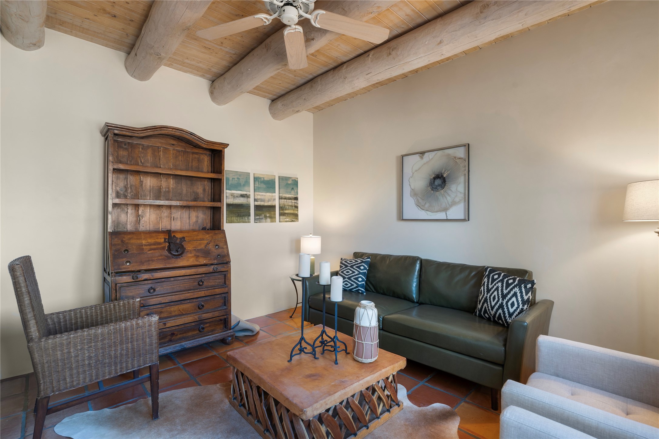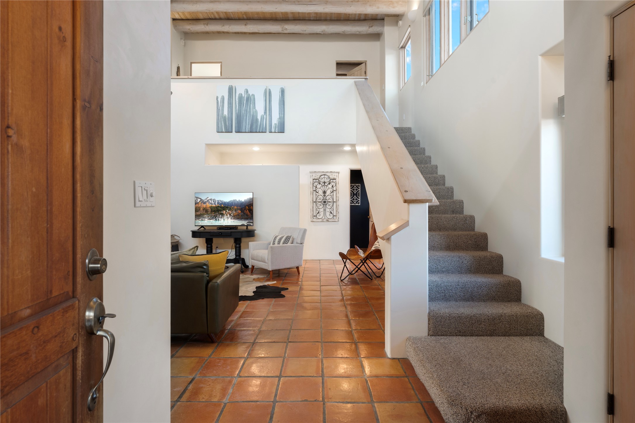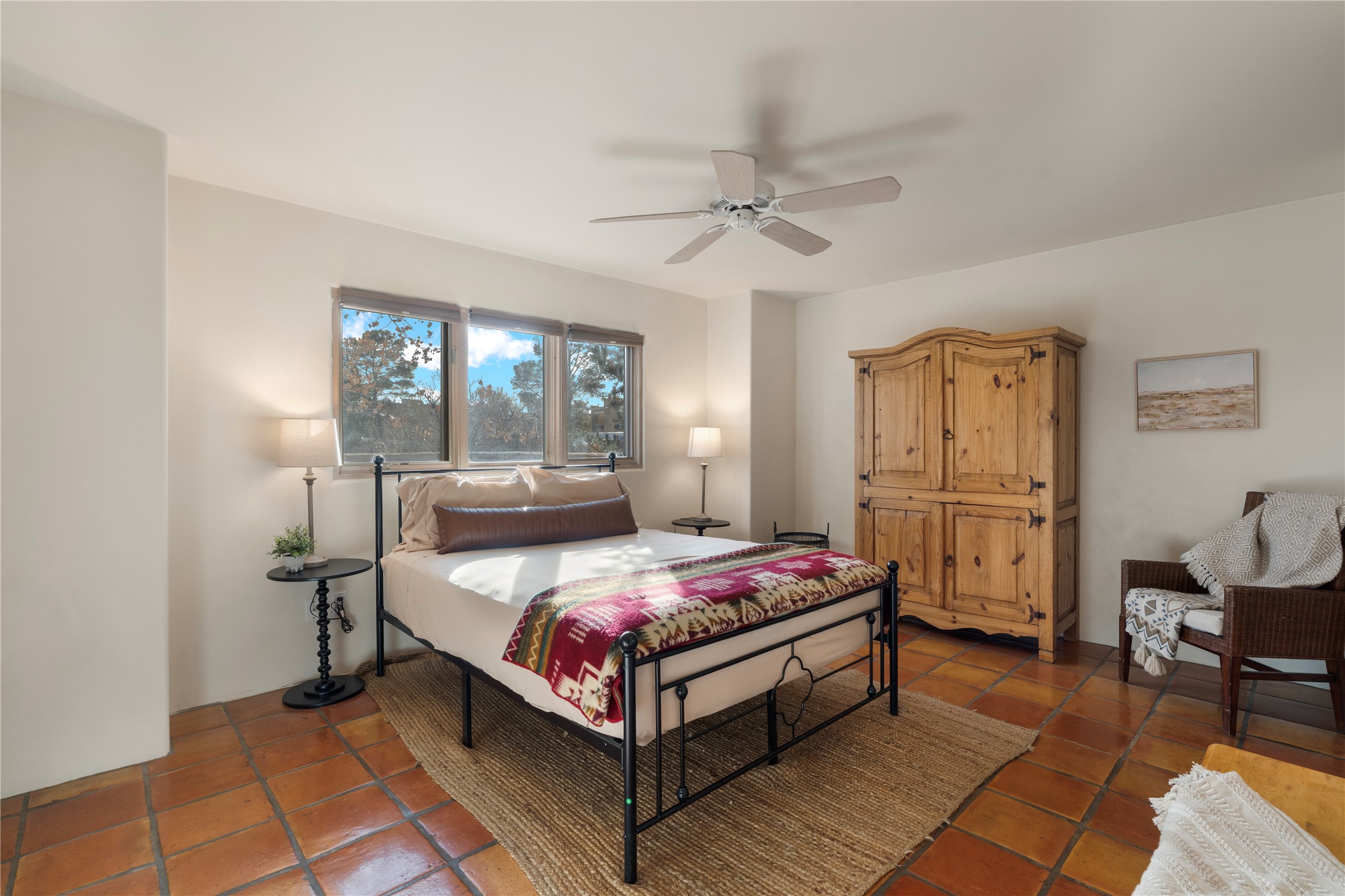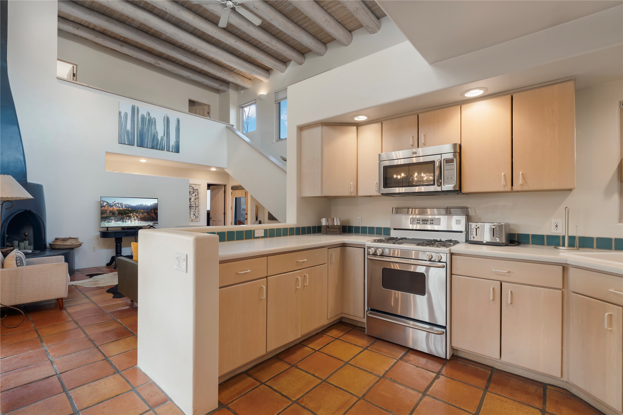 Experience an enchantingSouthwestern retreat in one of Santa Fe's most exclusive neighborhoods.This stunning 3 bed, 3 bath home has soaring ceilings with exposed vigas and exquisite Saltillo tile floors, set within an open, light-filled space enhanced by expansive windows.The inviting living area centers around a kiva fireplace and flows into a chic dining area and state-of-the-art kitchen outfitted with stainless steel appliances. Perfect for rental opportunities with all furniture, household items, artwork, and dcor ensures a truly turnkey move-in experience. Adding to its appeal are a private gated entrance, lush mature landscaping, 2 car garage, all ideally located just minutes from shopping, dining, and downtown Santa Fe.
