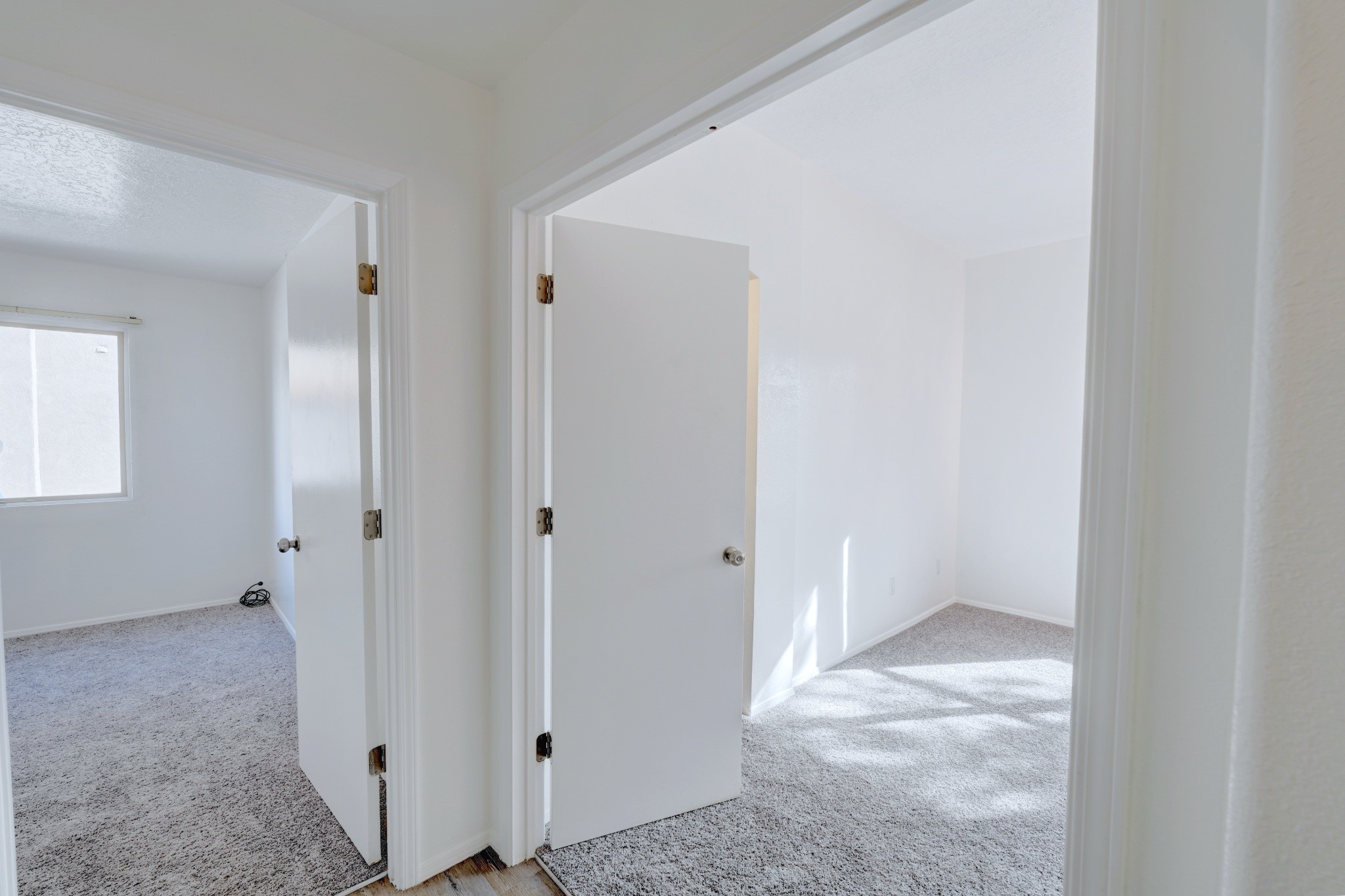 Welcome to this thoughtfully updated two-bedroom, two-bathroom home nestled on a desirable corner lot in Santa Fe's welcoming neighborhood. This single-level residence offers comfortable living with 946 square feet of well-designed space, perfect for those seeking a single level home with comfortable open floor plan. The heart of this home features a completely refreshed kitchen equipped with new appliances including a range, dishwasher, and refrigerator, complemented by new countertops. Throughout the home, you'll discover fresh interior paint, updated flooring, and modern light fixtures that create a bright atmosphere. Both bathrooms have been enhanced with new sinks and fixtures, while the recent installation of a new water heater and door hardware demonstrates the attention to detail invested in this property. The thoughtful updates extend beyond aesthetics to ensure long-term comfort and functionality. Outside, the fenced backyard provides privacy, while the spacious layout offers plenty of room for gardening or simply enjoying New Mexico's beautiful weather. The covered patio creates an ideal outdoor living space and the convenient shed provides storage. A one-car garage adds practical appeal for vehicle protection and additional storage. The location offers excellent convenience with Rancho del Sol park just steps away, providing recreational opportunities and green space. Best of all, there are no homeowners association fees, giving you the freedom to enjoy your property as you choose. This move-in ready home combines modern updates with comfortable living in a prime location. Please see the 3-D Matterport in the listing!