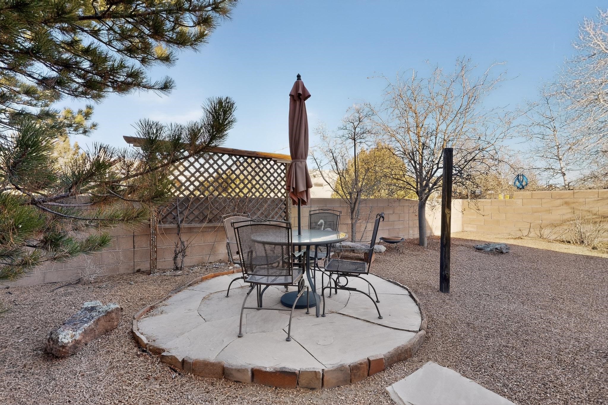 Welcome to this delightful single-level home, thoughtfully cared for and gently lived in. As you step into the inviting foyer, you'll be greeted by an open, airy layout that immediately creates a sense of warmth and comfort. The living area offers a cozy fireplace and a view to the back patio, making it the perfect spot to unwind and enjoy your time at home. The home's neutral color palette compliments tile flooring throughout the main spaces. Adjacent to the living area, you'll find a flexible office or den, ideal for working from home or relaxing with a good book. Home has two well-separated bedrooms plus an office or sitting room. The spacious kitchen features a cozy eat-in nook, perfect for casual meals and morning coffee. Step outside to the beautifully landscaped, low-maintenance yard. The private patio offers a serene outdoor retreat to savor wonderful summer days and evenings. Conveniently located to Santa Fe Community College, dining and shopping amenities. Just a short drive to Highway 599--this location is perfect for commuters to Los Alamos. Santa Fe Downtown Plaza is only about 20 minutes away.