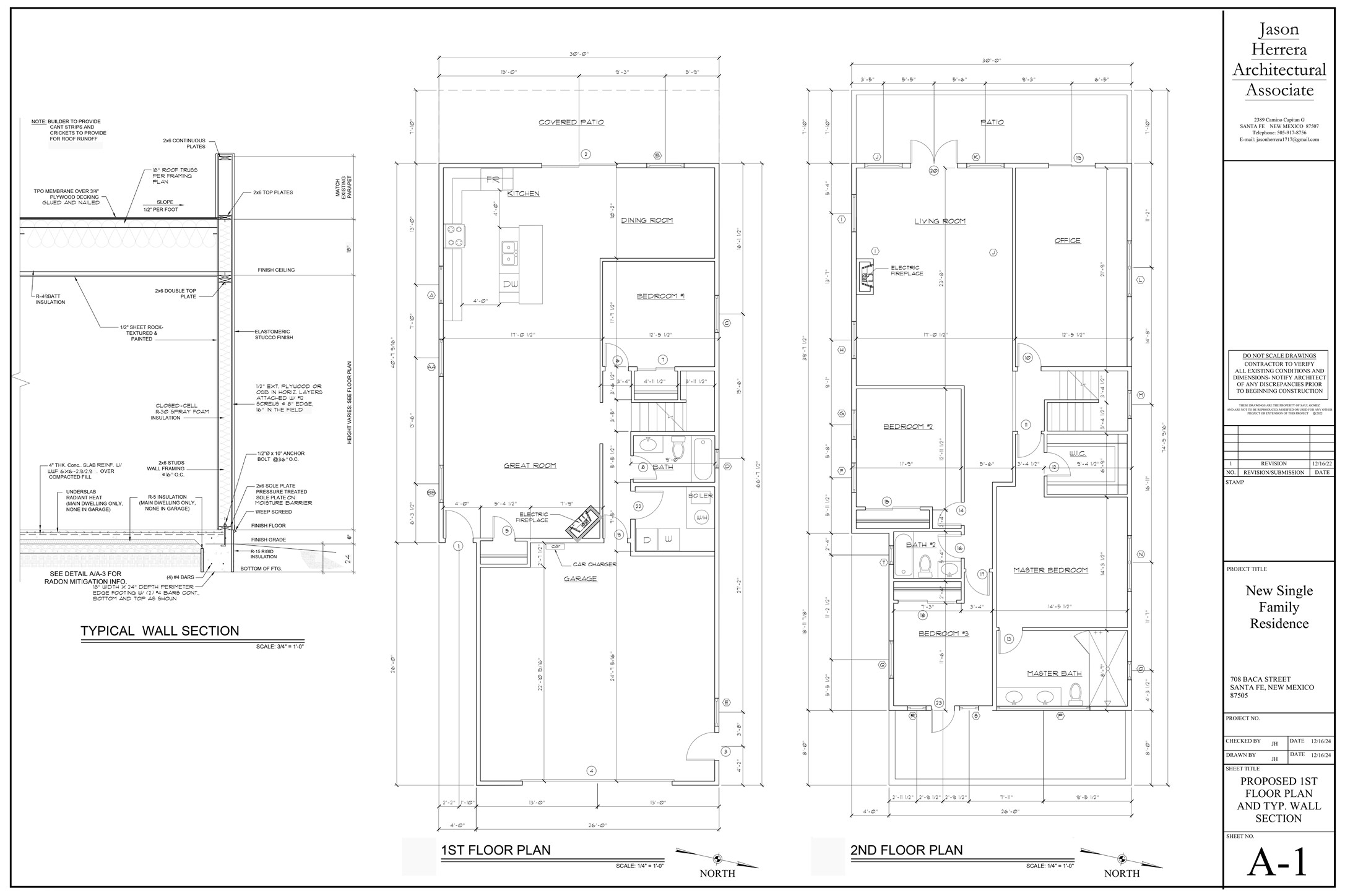 To-be-built new construction on desirable Baca Street in Santa Fe. This thoughtfully designed home offers approximately 2,827 sq ft with 4 bedrooms, 3 bathrooms, an office, and a two-car garage with electric car charger. The flexible floor plan includes two separate living areas and two electric fireplaces, providing comfort and versatility.Planned features include a tankless hot water heater, radiant heat on the lower level, forced air heat upstairs and AC throughout, a gas stove, a TPO roof, and privacy fencing. Enjoy indoor-outdoor living with a covered patio and two upstairs portals/decks, ideal for Santa Fe's climate. Buyer may select color options from builder-approved finishes, allowing for personalization. Ideally located near the Baca Railyard, bike paths leading to downtown, restaurants, galleries, shopping, and outdoor recreation, this is a rare opportunity to own a brand-new home in one of Santa Fe's most sought-after neighborhoods.