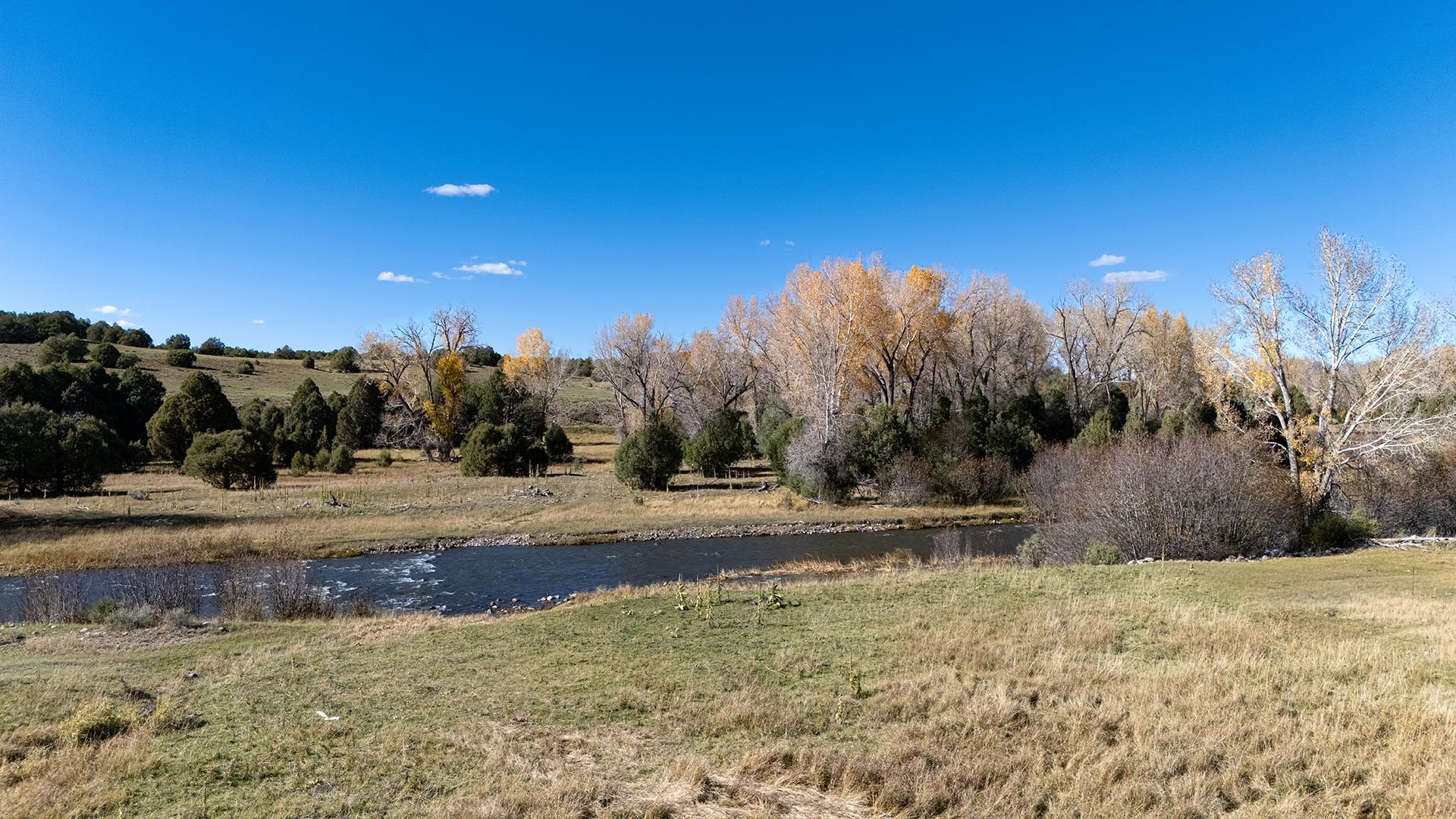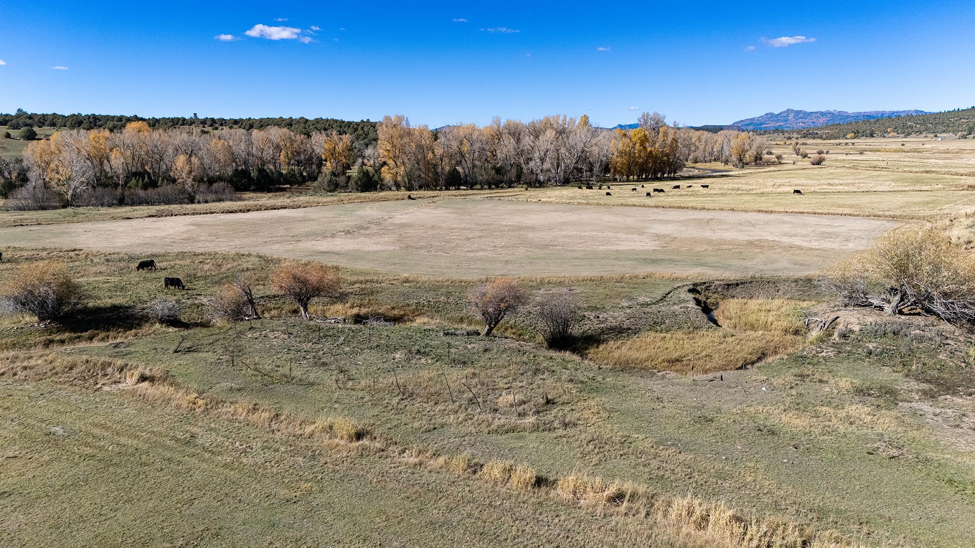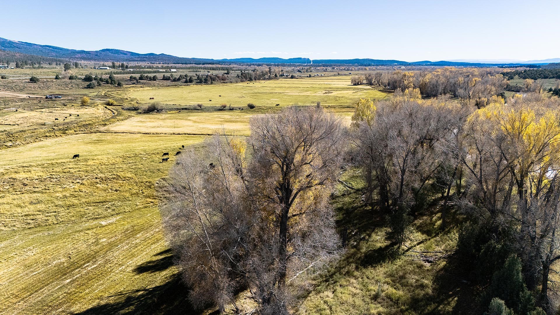 El Barranco Ranch on the Chama River consists of 440 gorgeous acres, blessed with 1.5 miles of both sides of the Chama River in Northern New Mexico. The El Barranco trio of fly fishing, agriculture, and big game hunting is difficult to match on one property. The ranch offers excellent fly fishing on the trout-rich Chama River, which winds through a beautiful setting of cottonwoods. Fly fishing is a prominent feature, but the opportunity to hunt elk or mule deer cannot be overlooked. The ranch borders the vast, undeveloped acreage of the Jicarilla Apache Nation, as well as the renowned elk and mule deer habitat that exists on those lands. Elk and mule deer routinely visit El Barranco's hayfields and river bottom to feed and water. The ranch is eligible for and has received multiple hunting vouchers. It is not unusual at El Barranco in the early fall to hunt elk or mule deer in the morning, fish for large brown and rainbow trout in the middle of the day, and then enjoy another evening hunt. There is more value than just the first-class recreational aspects of the ranch. Substantial senior water rights lead to great hay production and cattle grazing, which has been the primary focus of the current owners. Farm work can be done hands-on or by retaining existing hay and grazing leases. At a time when live water fishing properties and senior water rights are hard to find, a rare recreational and agricultural opportunity awaits the buyer of this gold medal property. Buyers seeking additional acreage should consider the 270 acre El Barranco East property, located across the highway.