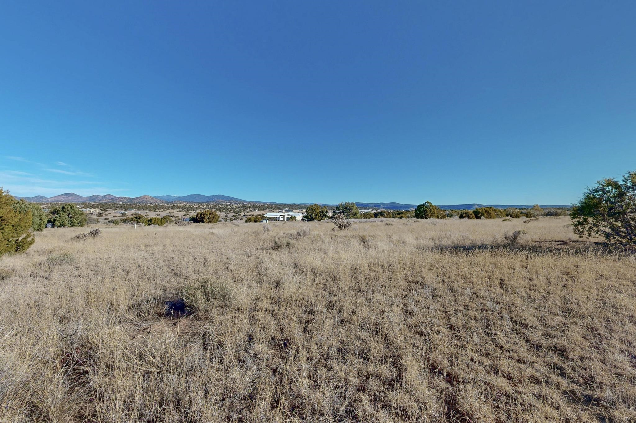 Bring your vision to life on this pristine one-acre corner parcel, where build-ready convenience meets an atmosphere of tranquility. Gently contoured terrain offers an effortless foundation for new construction, supported by on-site water and electric with natural gas available in the street for easy connection. Perfectly positioned to embrace sweeping views to the east, west, and north--experience golden morning light, dramatic sunsets, and expansive northern horizons. A rare opportunity to craft a private retreat in an exceptional setting. Just a short drive from downtown Santa Fe, the Eldorado/Lamy corridor is ideally situated close to main thoroughfares with effortless access to all the amenities, culture, and conveniences of Santa Fe.