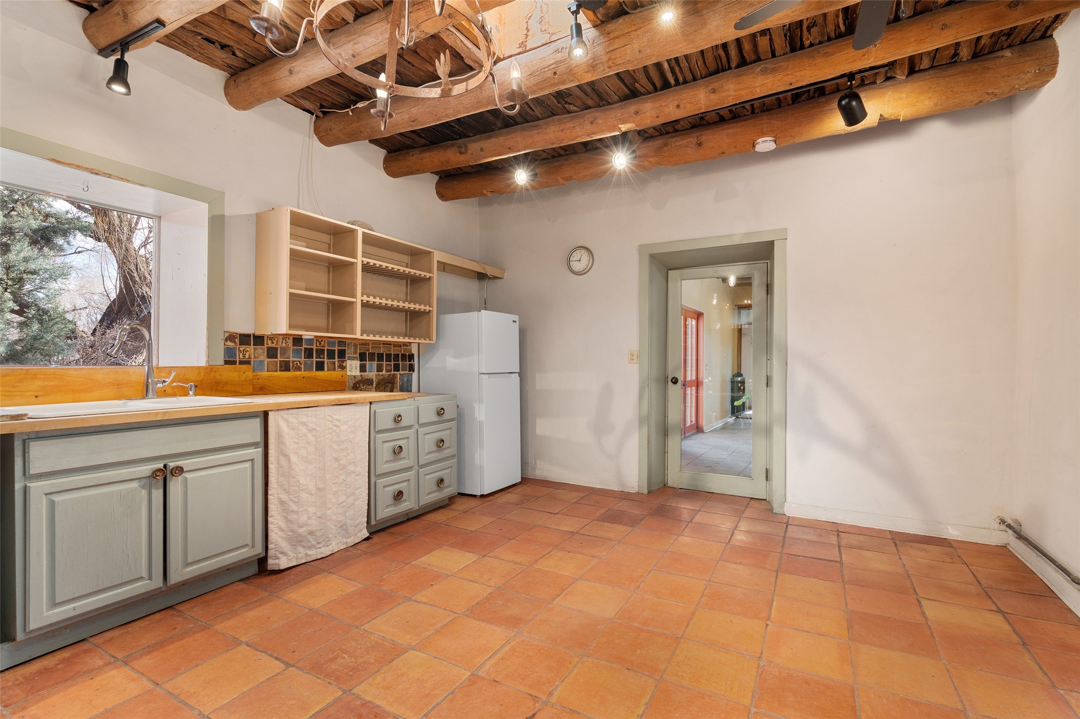 This historic Galisteo Hacienda presents a rare opportunity to restore an iconic adobe estate set on 3.8 acres within the village of Galisteo, one of the largest landholdings under Traditional Community zoning, which supports residential, live/work, and art gallery uses. Dating to the 1800s, the property once served as the headquarters of Don Jos Ortiz y Pino's sheep empire and later as the iconic Quartermill Farm - home, studio, and gallery of acclaimed artist Priscilla Hoback--making it uniquely suited to continue as a creative live/work estate. Located in the heart of Galisteo Village, the property includes a former gallery along a central village road and a substantial adobe main house privately set behind it.The hacienda features two residential wings with four bedrooms and three baths, a large library, grand living and dining rooms, multiple fireplaces, and authentic architectural details. A generous inner courtyard with mature trees, portals, and a koi pond creates a serene, campus-like setting ideal for both living and creative pursuits, complemented by fruit trees, gardens, and expansive village acreage.Equestrian facilities include a large handcrafted stone and adobe barn with spacious stalls and turnouts, wash rack, hay loft, tack room with bath, and an oversized arena, supported by a private well dedicated to the barn. Additional structures include an art studio with sink and loft, and a one-bedroom guest house--formerly the historic town bar--offering flexibility for guests, staff, or extended work use.The property is in need of renovation and restoration, presenting an exceptional opportunity for a discerning buyer to reimagine a historically significant live/work estate, blending residential life, creative enterprise, and community engagement in one of Galisteo's most storied village settings.