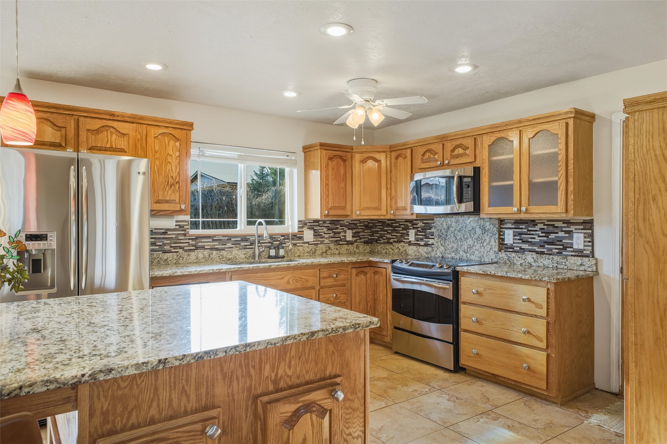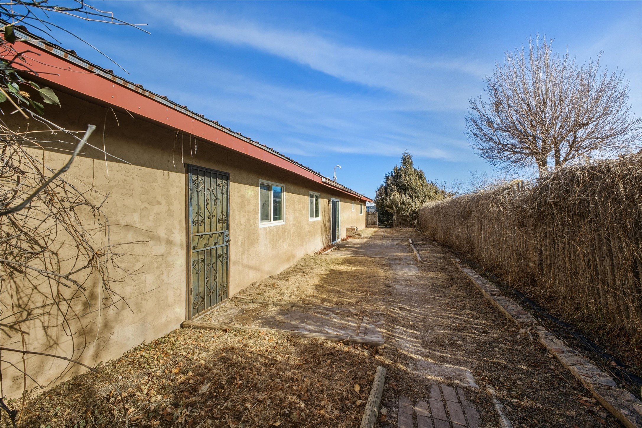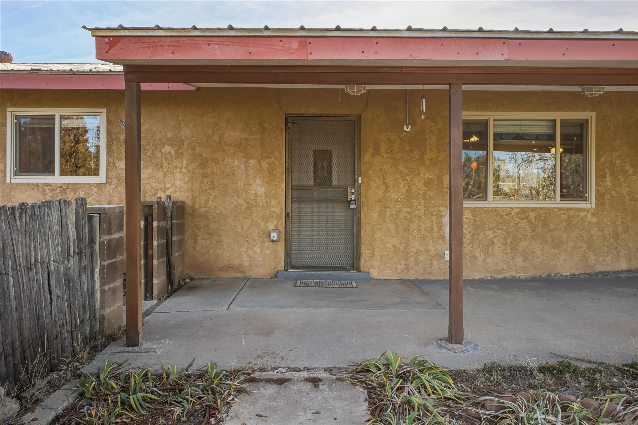 Nestled on over an acre of land with breathtaking mountain views, this updated and well-maintained home offers the perfect blend of modern convenience and rustic charm. From its spacious, light-filled interiors to its serene outdoor setting, this property provides the ideal environment for both relaxation and creativity. With a short commute to Los Alamos and Santa Fe, you can enjoy the peace and privacy of rural living without sacrificing convenience. The heart of the home is the expansive, modern kitchen. Featuring luxurious granite countertops, a large central island with extra storage, and stainless steel appliances, this kitchen is designed for both function and style. Whether you're preparing meals for the family or hosting friends, the layout is perfect for food prep and entertaining, with ample room to gather around the island. A charming wood burning stove located in the kitchen adds warmth and ambiance, creating a cozy focal point for winter mornings and evenings spent cooking and connecting. The kitchen flows seamlessly into the main living areas, offering an open and comfortable layout. The property offers an incredible amount of space for gardening, hobbies, or projects. Mature fruit trees add charm and productivity to the landscape, while the insulated shed provides excellent space for storage or can easily be used as a workshop. The home features an updated bathroom with modern fixtures and stylish finishes, offering both comfort and functionality. This is a rare opportunity to own a well-cared-for home with space to grow, stunning views, and easy access to nearby communities. A perfect balance of comfort, functionality, and location.