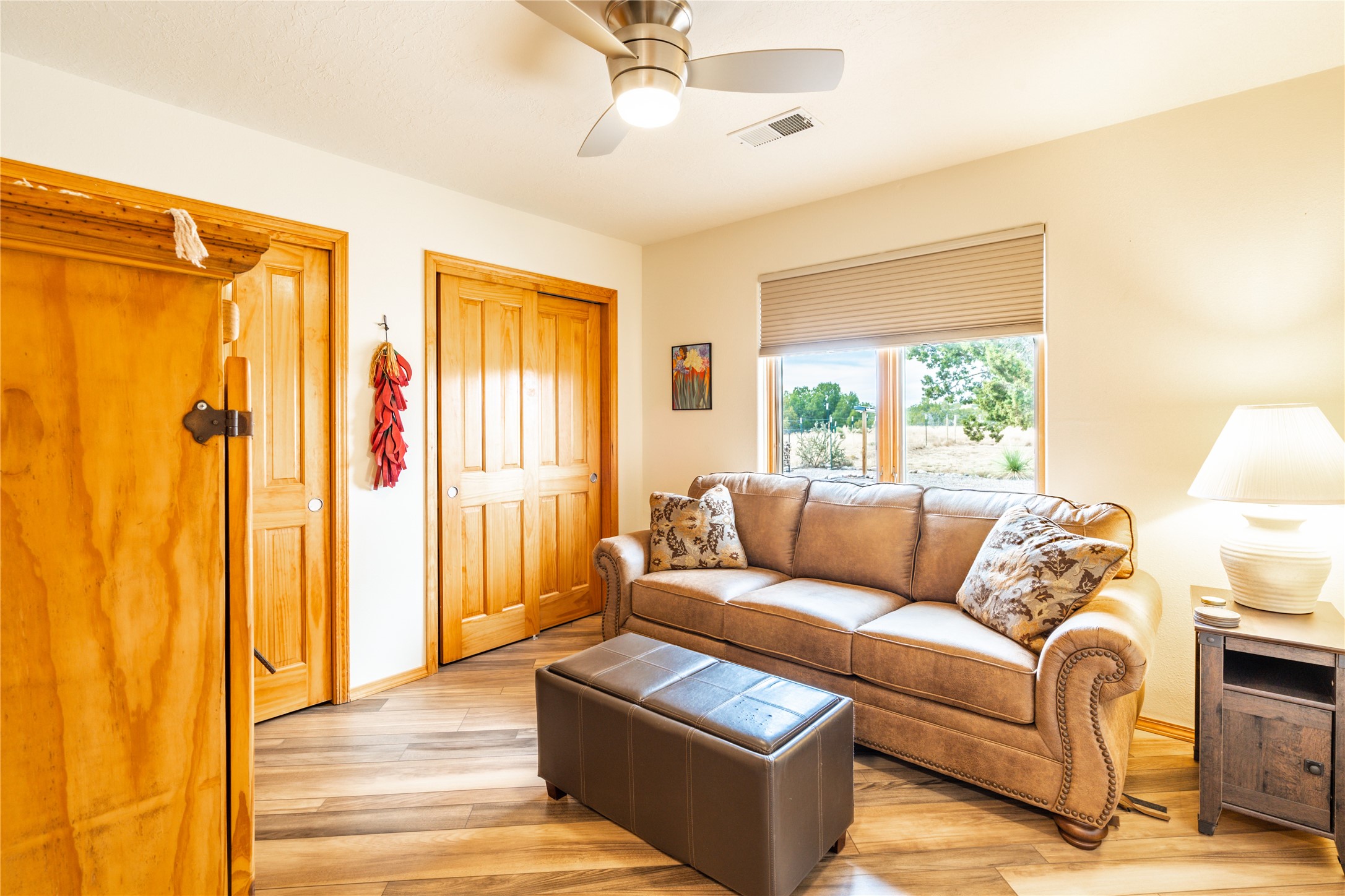 Amazing! Must See! Offering both privacy and convenience, this single-level ranch home with 2,016 heated square feet features 3 bedrooms, 2 bathrooms, a bonus office/study room, central forced air heating and cooling, a kiva fireplace in the family room, two outdoor entertainment patios (one with a hot tub/spa), quality Pella wood windows and solid doors, and a private well. The oversized 780 +/- square foot garage provides ample room for vehicles and storage. Recent updates include flooring, window treatments, appliances, lighting fixtures, well pump and bladder, interior paint and a fabulous remodel of the main suite bathroom enhancing the comfort of this home. External RV 30 Amp Service. The entire property is fully-fenced and gated with horses allowed! Additional casita dwelling permissible per CCR's. Majestic sunrise and sunset skies with breathtaking mountain vistas abound. Be sure to see this property in person to fully appreciate the advantages and opportunities of this sublime property!