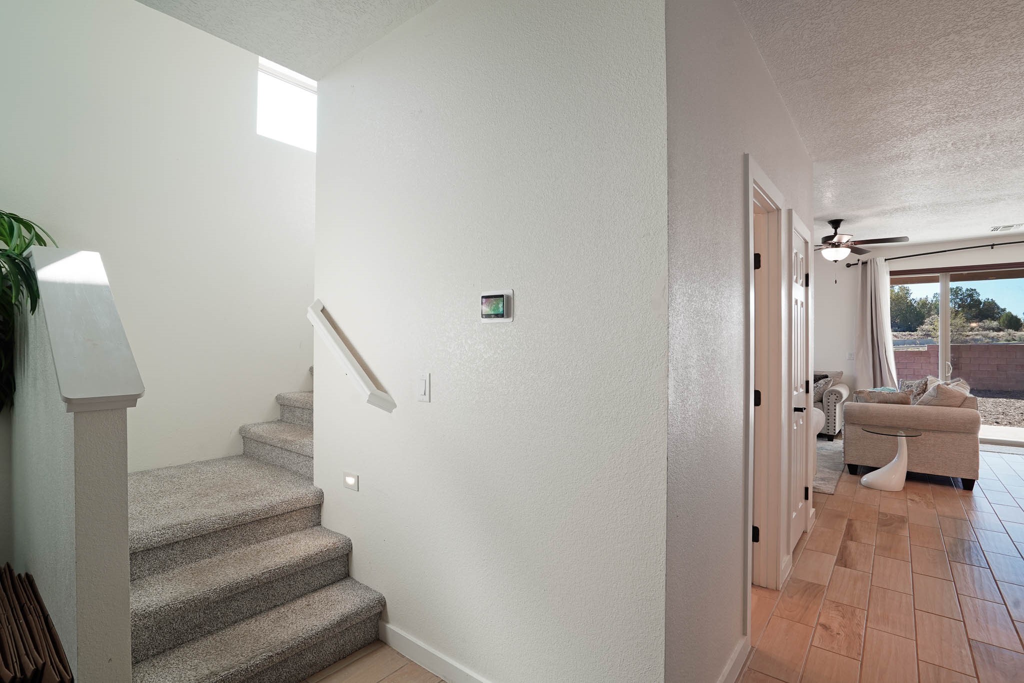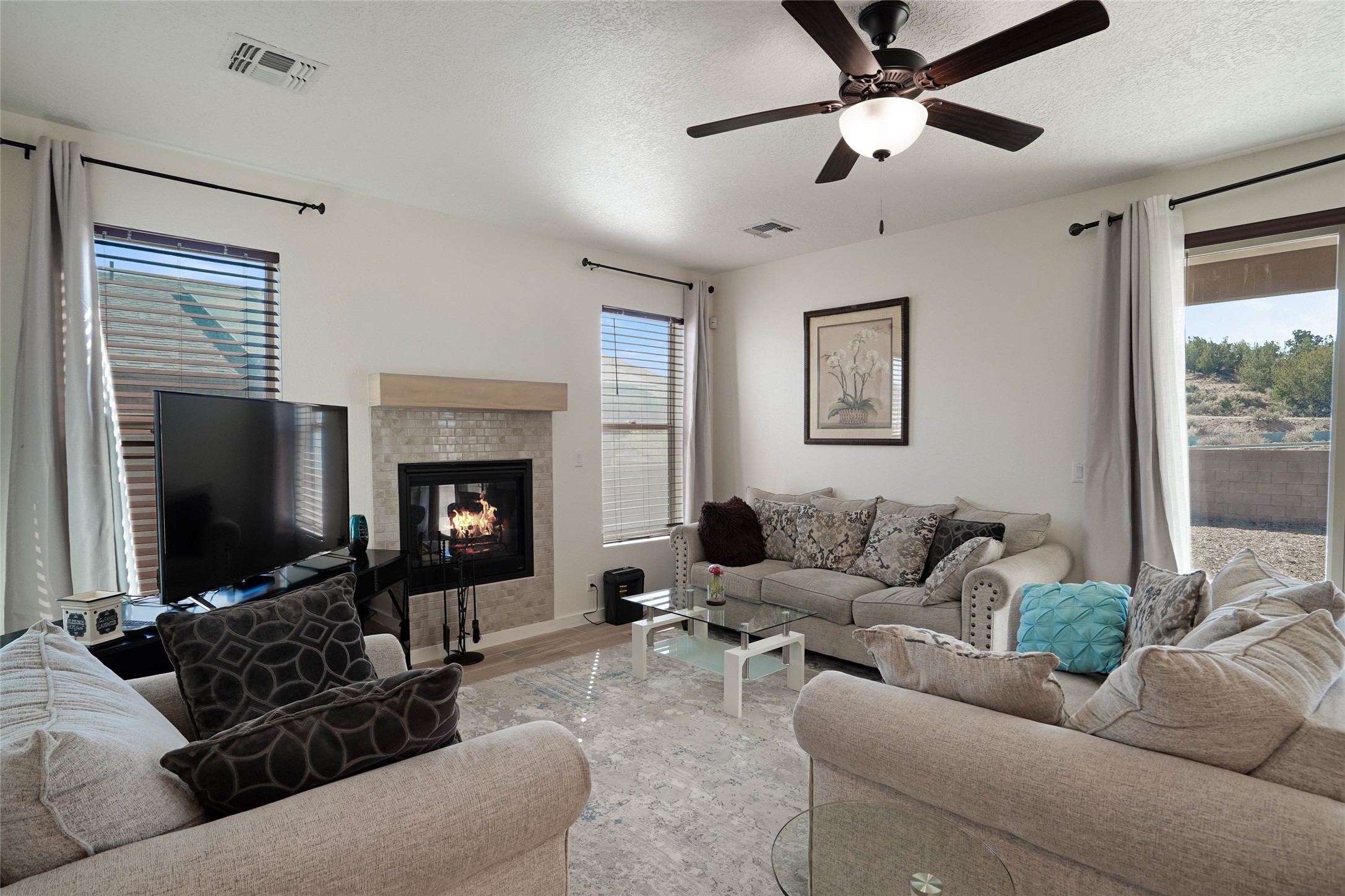 Deluxe 5 year new resale in desirable Mirador neighborhood in the heart of White Rock, close to Los Alamos National Laboratory! Step into comfort w/this thoughtfully designed 4 bed/2.5 bath ~1900sf "Cougar" layout on two levels of living space. Main level features sleek open eat-in kitchen w/marble counters, maple cabinets, stainless steel appliances, & generous walk in pantry. Also separate dining area, bright 'n wide living room w/South + East exposures, half bath, bonus storage room, and direct access to back portal + fully fenced backyard. All 4 bedrooms up w/primary suite featuring private balcony w/mountain views, double sink + walk in shower bathroom that leads to walk in closet. 2 car garage + driveway parking all on a quiet dead end street in a peaceful, scenic community close to parks, trails, & local amenities. Whether looking for a forever home, versatile investment property, or a part time in-town spot - this home presents an outstanding opportunity to own in a special location. Eligible veterans may qualify to assume current VA loan and realize significant savings at a low interest rate!