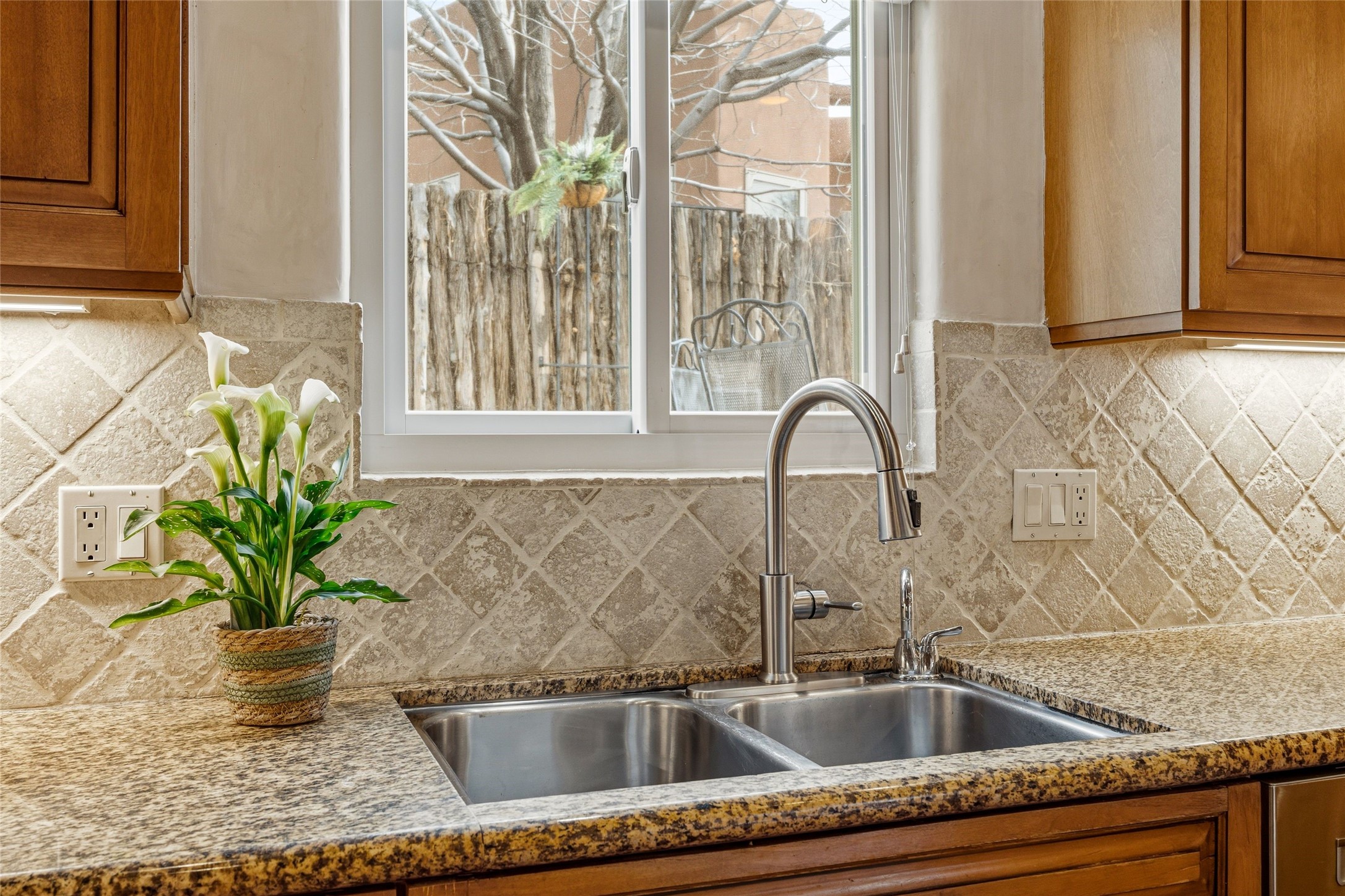 Gorgeous and near perfect, this classic Santa Fe-style home is ready to move right into! This custom property was built around a private, central courtyard open to the sky and filling the house with sunshine. It offers three roomy bedrooms plus a built-in study/office and four baths. Designed with a comfortable, intelligent floor plan it was almost completely renovated in 2023-2025. New buttery, diamond plaster walls; new heating and cooling, New TPO roof, new floors! Conveniently Located in a lovely cul-de-sac minutes to the plaza, and easy access to shopping, the hospital, and all freeways. $1,395,000.