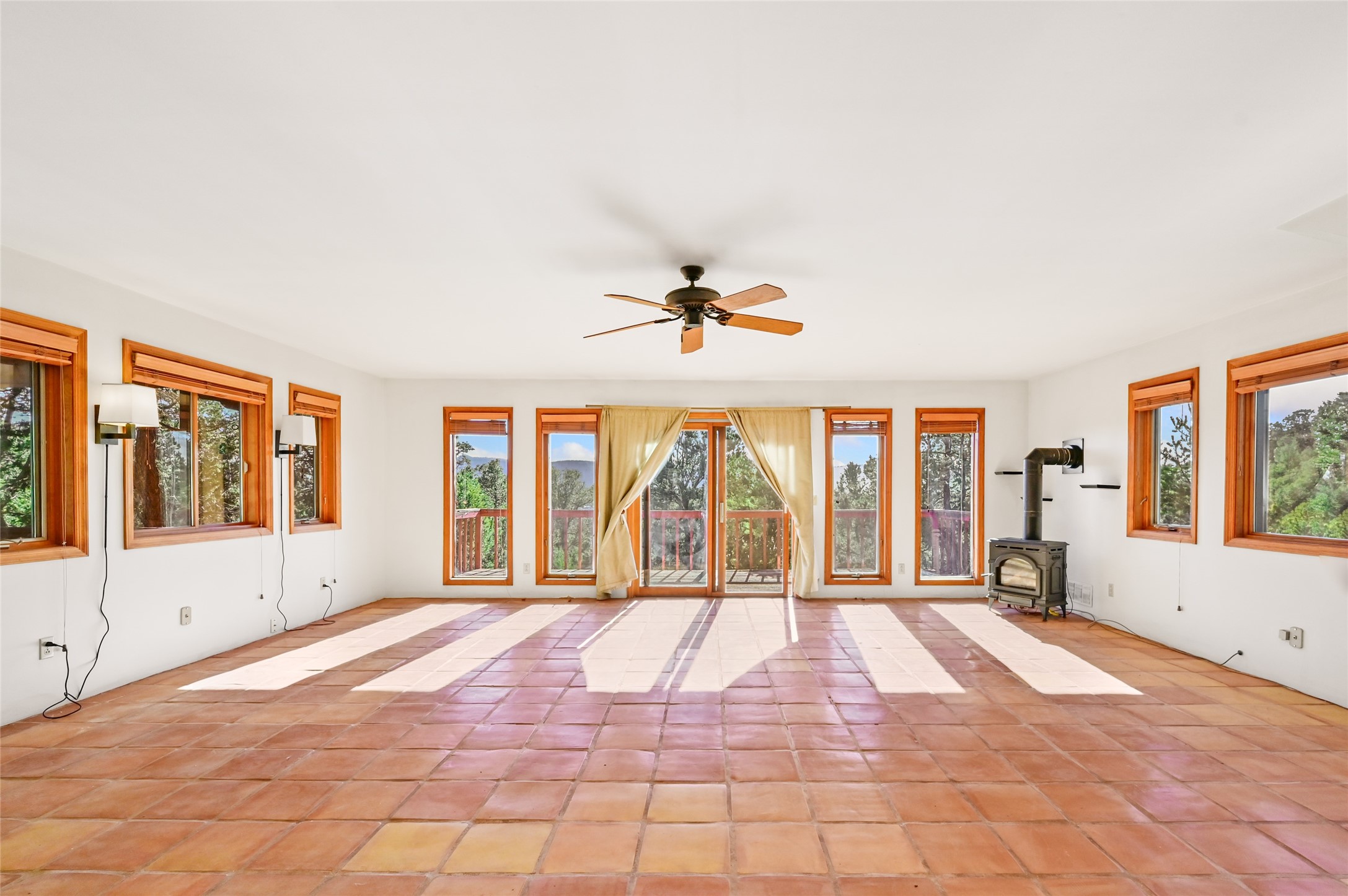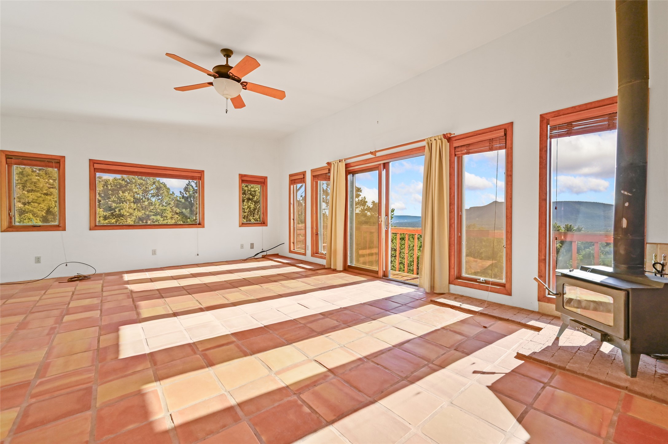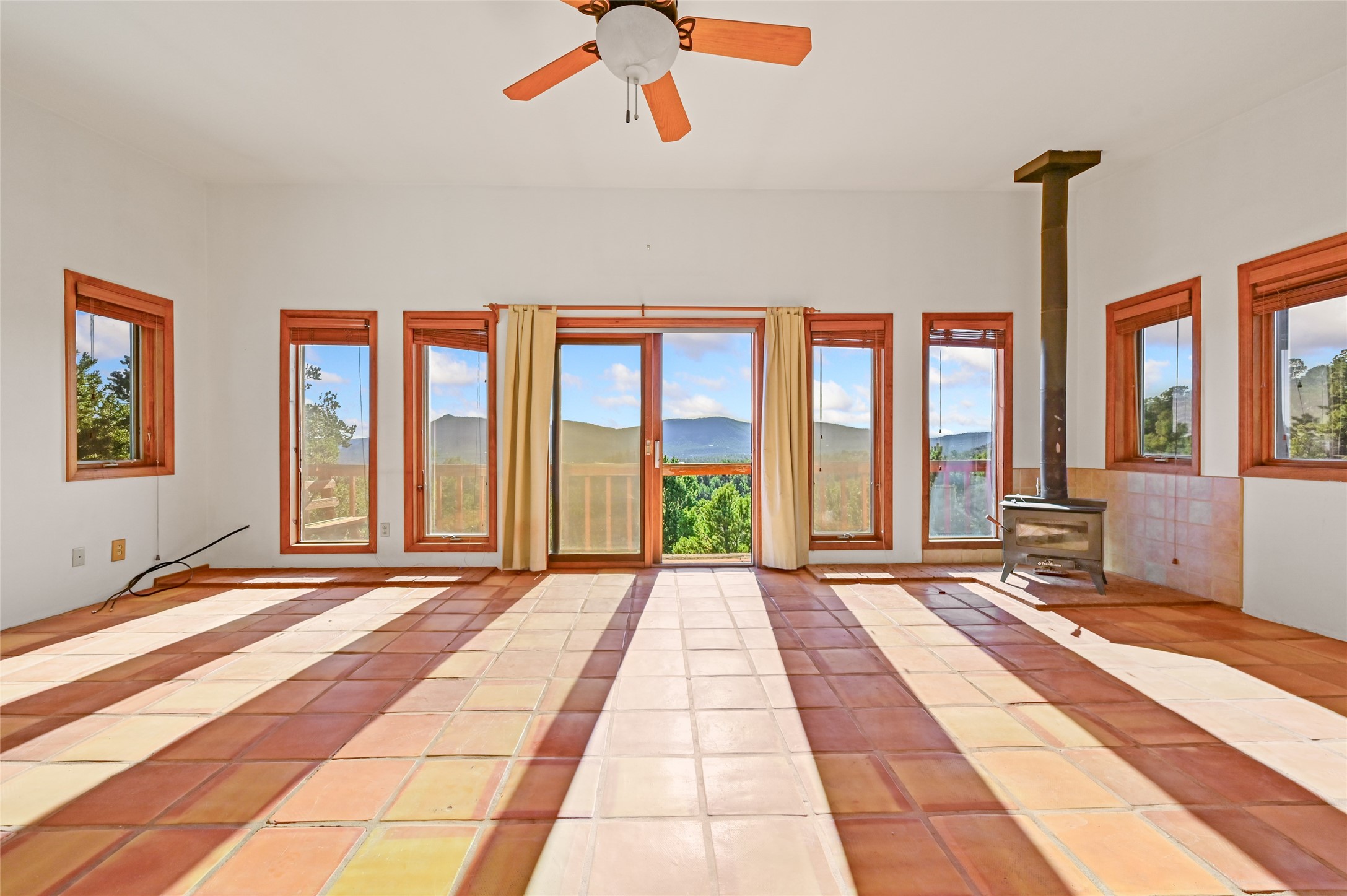 Perched among the pines with sweeping mountain and forest views. A serene mountain retreat just minutes from the village of Pecos. Filled with natural light and designed to embrace its surroundings, featuring expansive windows and a spacious deck that frames the breathtaking scenery. Southwestern charm with warm Saltillo tile floor and cozy wood stoves. Large glass doors open to the upper and lower decks, seamlessly blending indoor and outdoor spaces. Surrounded by nature, this property offers privacy and tranquility, with easy access to outdoor recreation, including hiking, fishing, and exploring the nearby Pecos Wilderness--while still being a short drive from Santa Fe. Whether you're seeking a full-time residence or a peaceful mountain getaway, this is a special place to call home.