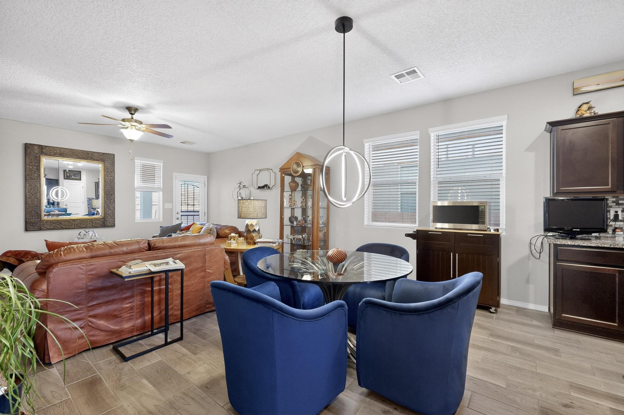 Offering attractive curb appeal, this 4 bedroom, 2 bathroom, DR Horton home is exceptional inside and out. Upgraded cabinetry, floors, counters, appliance package and a walled backyard with an open greenbelt behind the property is the perfect idea! The beautiful Anasazi stacked rock on the front of the home offers character and warmth. The floorplan is smart with a guest bedroom upon entry which can double as an office for great privacy. The heart of the home offers an open feel with the wide entry, open kitchen with an oversized island for casual eating and meal prep, a designated dining area with an open view to the living room and a spacious hallway leading to bedroom #2, bedroom #3, the guest bathroom with full bath and the laundry room with access to the finished garage. The primary suite is tucked away at the rear of the home and boasts the right size en-suite with an oversized walk-in shower, walk-in closet, water closet and plenty of storage to stay organized. Enjoy the privacy of the walled backyard awaiting your landscaping ideas and relish the idea that there is open space behind the property giving you room to breathe. The neighborhood park is seconds away allowing one to enjoy the outdoors even more. Easy living with great value and close to highway access for commuters or enjoy the booming southside of town with restaurants, shopping, schools and medical facilities close by.