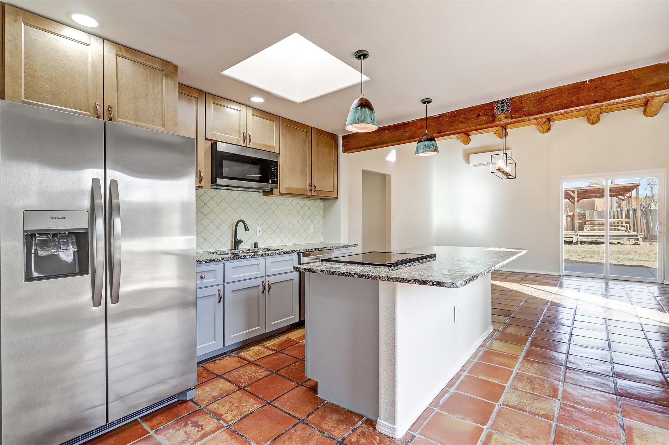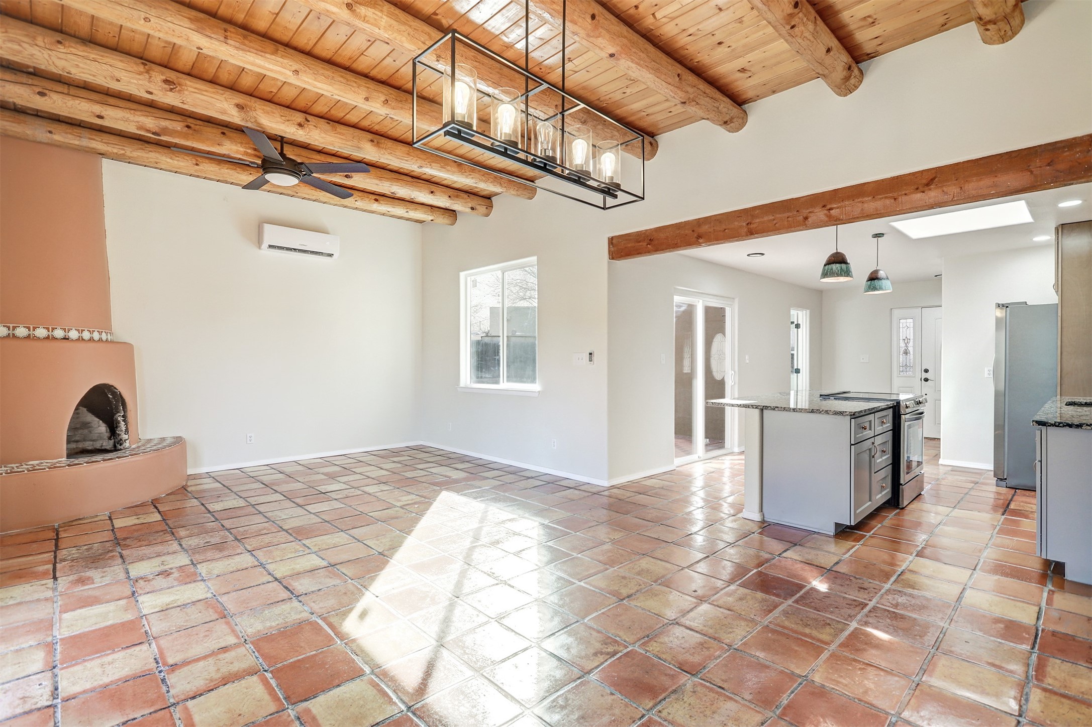 Welcome to this beautifully updated Santa Fe home that blends classic Southwestern charm with modern comfort and is move-in ready for a fresh start in 2026. Located in a central and well-connected area of Santa Fe, this property offers convenient access to shopping, dining, parks, trails, and everyday amenities while still providing a peaceful residential setting. Inside, you will find a thoughtfully designed layout with four spacious bedrooms and welcoming living areas ideal for both entertaining and everyday living. Cozy up by the gorgeous kiva fireplace on crisp winter evenings, adding warmth and authentic character to the space. Saltillo tile flooring in select areas, combined with fresh interior and exterior paint, brings timeless Southwestern appeal and a bright, refreshed feel throughout. The updated kitchen is ready for all your culinary adventures, featuring new cabinetry, gorgeous countertops, and beautiful stainless steel appliances. Remodeled bathrooms, updated light fixtures, and new carpet in the bedrooms enhance comfort and style. A new mini-split heating and cooling system provides efficient year-round climate control, along with a new roof. Situated on a huge lot, this home offers an expansive backyard with backyard access that is perfect for creating your own personal oasis, whether you envision outdoor entertaining, gardening, or peaceful relaxation. With its impressive updates, generous outdoor space, and convenient location, this stunning Santa Fe home is truly a must-see.