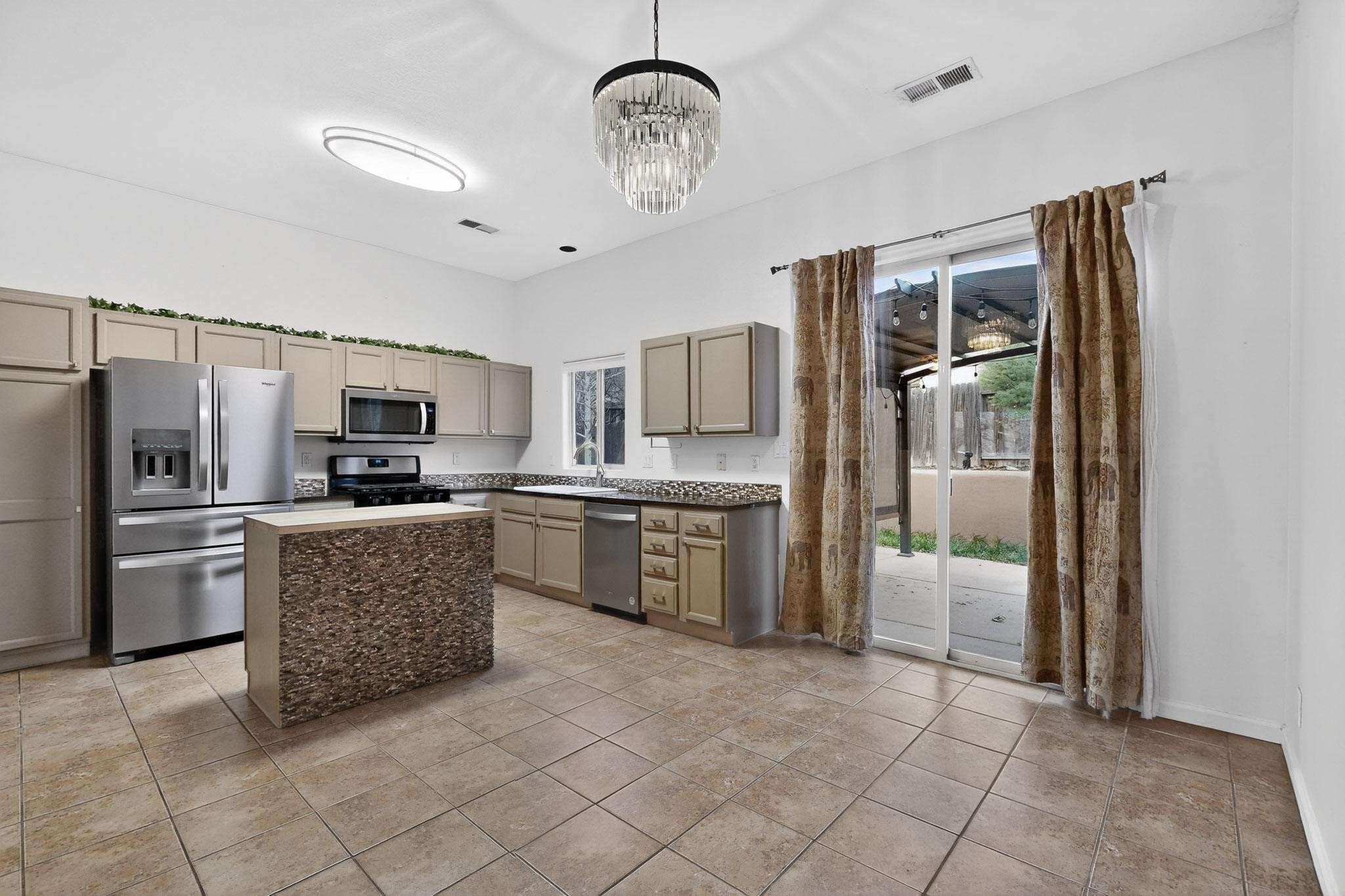 Don't miss this 4/2 close to SF Country Club Golf Course. Open floor plan featuring a dining room, renovated kitchen with SS appliances, and attached, direct entry, two car garage. Solar panels installed 5/2025! 4th bedroom could be an office, or...! Fully fenced back yard. Easy access to 599 and I-25 as well as schools, library and shopping. Easy commute to Los Alamos. Don't Wait!! Seller to give $1,000 credit to buyer at closing for interior painting upon acceptable offer!!