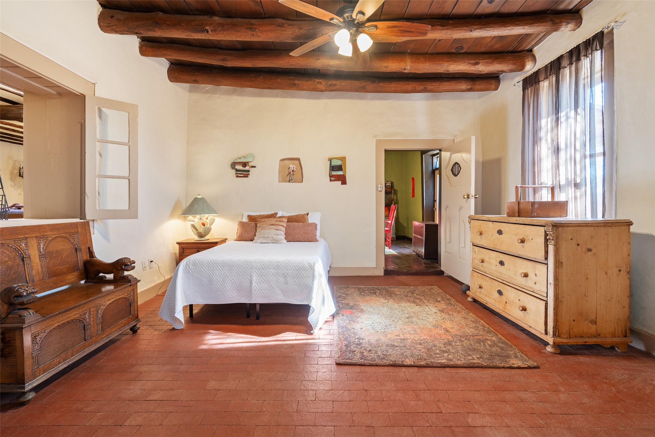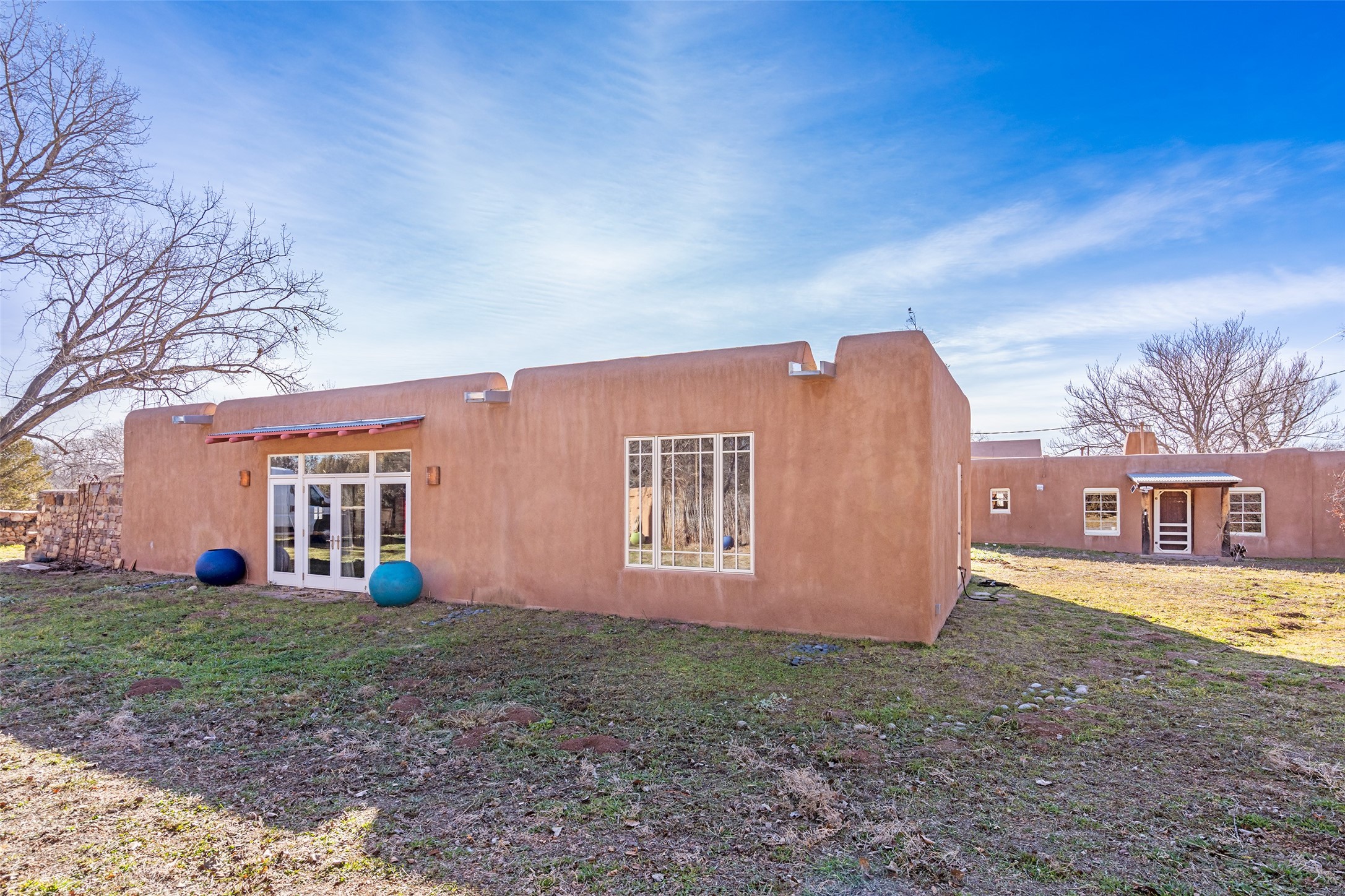 Something Old. Something New. Rare Commercial Opportunity.An exceptional and singular compound in the heart of historic Galisteo, this remarkable property weaves together centuries of heritage with thoughtful modern design. Dating to the 1800s, the 3-bedroom, 2-bath double-adobe Main House once housed the beloved La Mancha Restaurant (1959-1971), where the Ortiz family's New Mexican cuisine earned widespread acclaim.Tastefully renovated in 2012, the Main House features new brick floors, interior plaster walls, updated kitchen and baths, modern plumbing fixtures, and skylights, while honoring the home's original character, authenticity, and soul.Complementing the historic residence is a striking studio/gallery building originally designed by award-winning architect Beverly Spears and constructed in 1995 using Rastra construction for artist Linda Durham. A comprehensive 2006 remodel transformed the space into an extraordinary studio, gallery, and entertaining venue, featuring soaring 12-foot ceilings, exceptional lighting, integrated sound throughout, a home theater with surround sound and retractable screen, a bath, and a chef's kitchen equipped with Wolf, Sub-Zero, Miele, and Fisher & Paykel appliances, Bob Pepper custom cabinetry, and a generous pantry.The inviting Guest House, built in 2006, offers a warm and comfortable retreat with a living room, bedroom with fireplace, kitchen, and bath, ideal for visitors or extended stays.Commercially zoned and among the few such properties in Galisteo, this compound presents rare possibilities for a boutique B&B, restaurant, gallery, or creative retreat. Enclosed by historic adobe and stone walls and graced with fruit trees, this truly special offering invites vision, imagination, and opportunity in one of New Mexico's most cherished villages.