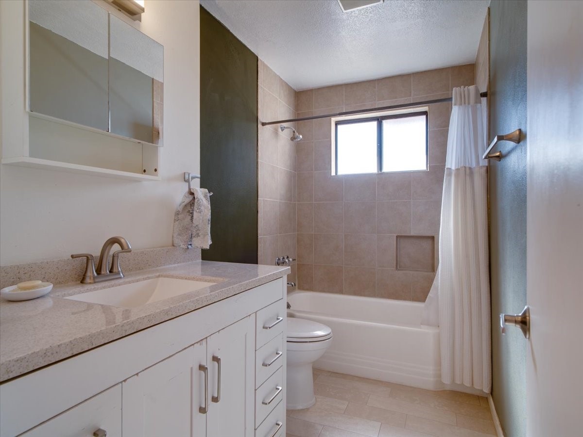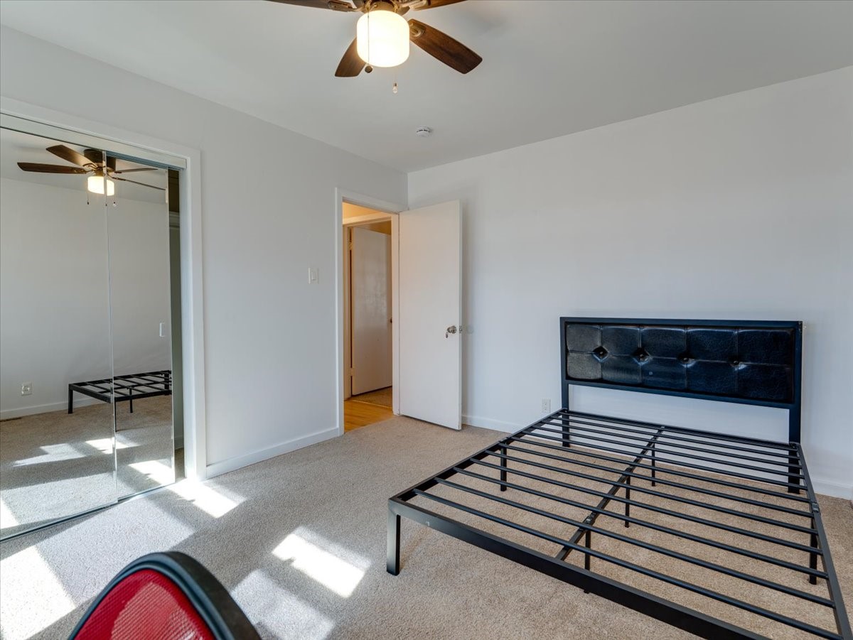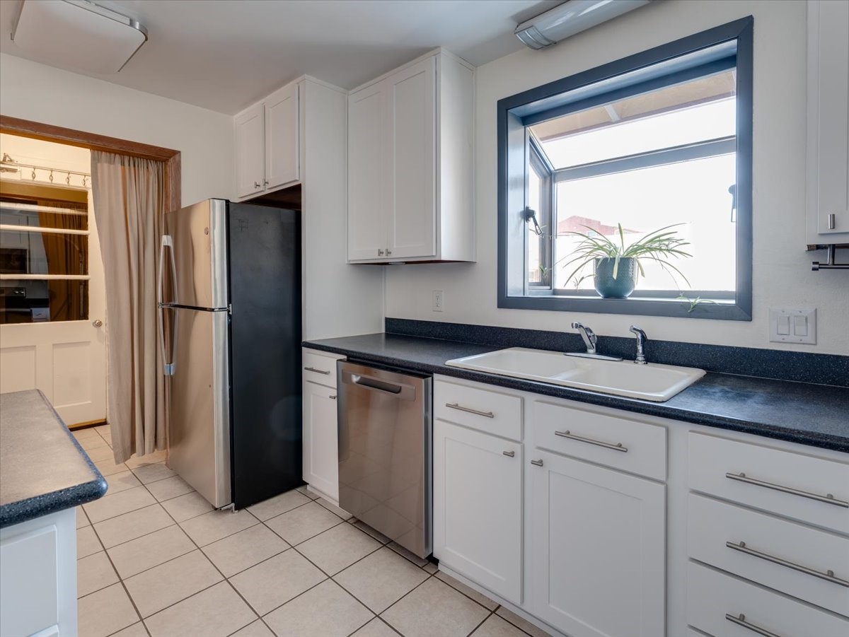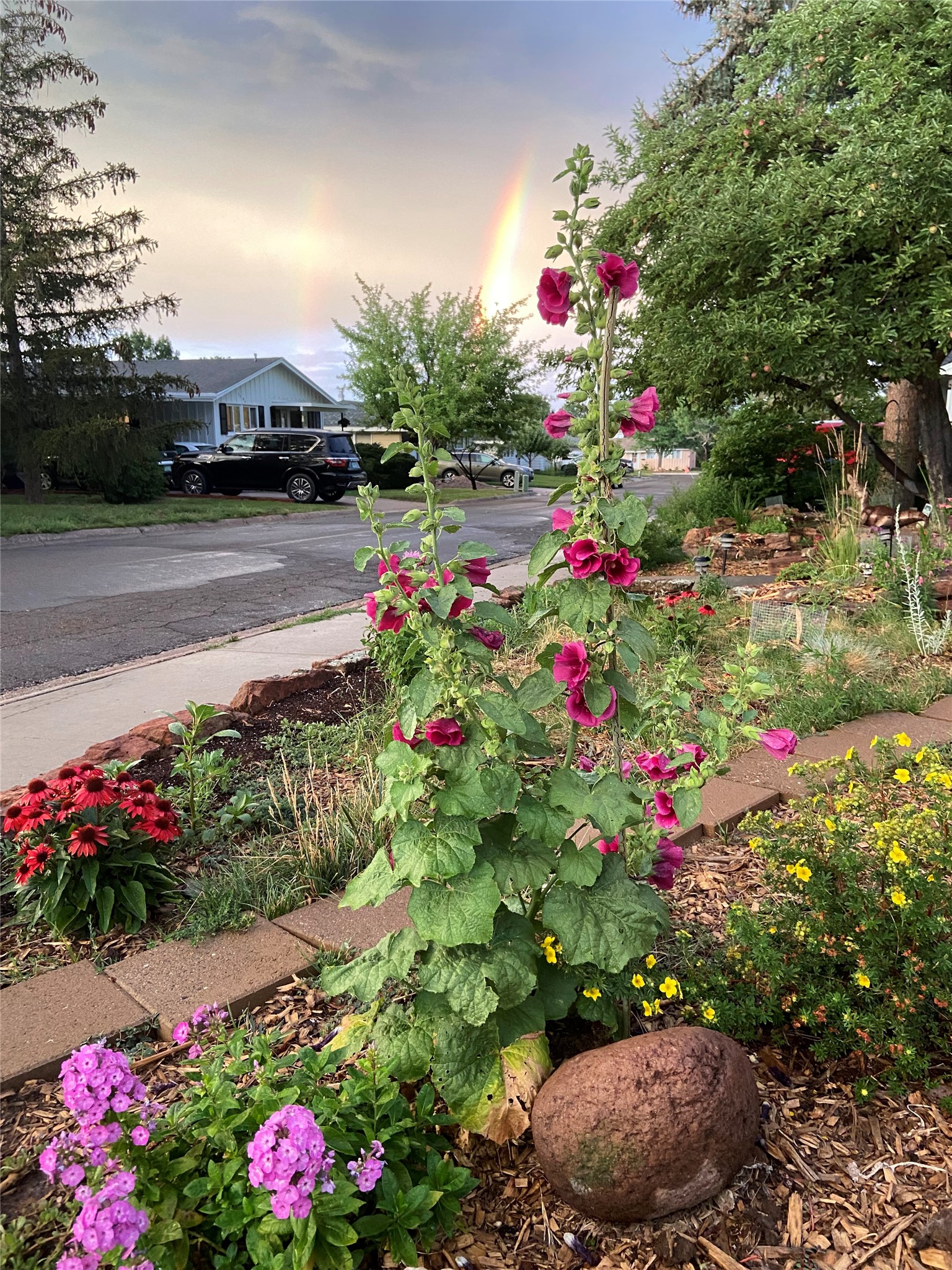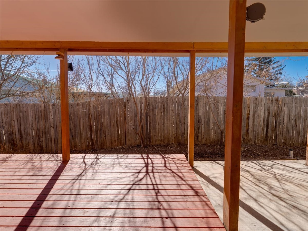 Charming Eastern area home that has been lovingly maintained and thoughtfully upgraded throughout. A beautiful wood front door with stained glass greets you setting the tone for the character found inside. Original hardwood floors lead into a spacious dining area open to the second level, creating a warm and inviting atmosphere. The kitchen sits at the front of the home and features a garden window, eat-in bar, refaced cabinetry (2019), and updated appliances replaced between 2020 and 2022. Laundry room and access to the attached heated garage with 240 volt outlet for EV charging are conveniently located just off the kitchen. The sunken living area offers beautiful windows, brick flooring, and a cozy corner wood-burning stove -- perfect for chilly months. A bright bonus room off the living room with lovely tile work and separate entry makes a perfect office, gym, yoga studio, or playroom. Two generously sized bedrooms on the main level share an updated full bath with solid-surface countertop and tiled tub surround. Upstairs, the primary suite features vaulted ceilings and a full ensuite bath. An additional upstairs bedroom with vaulted ceilings provides flexible space for guests, family, or a home office. The fenced backyard is a pollinator's dream with apple, pear, blue spruce and aspen trees -- plus a charming chicken coop that could easily be converted into a dog run. Major updates provide peace of mind, including a full electrical rewire with EV charging receptacle (November 2019), water heater with recirculating system (November 2019), refinished hardwood floors (November 2019), updated ceiling fans (November 2019), solar panels installed in August 2020, and HVAC. This beautifully updated home offers timeless charm, modern efficiency, and a fantastic location -- truly move-in ready and a must see!