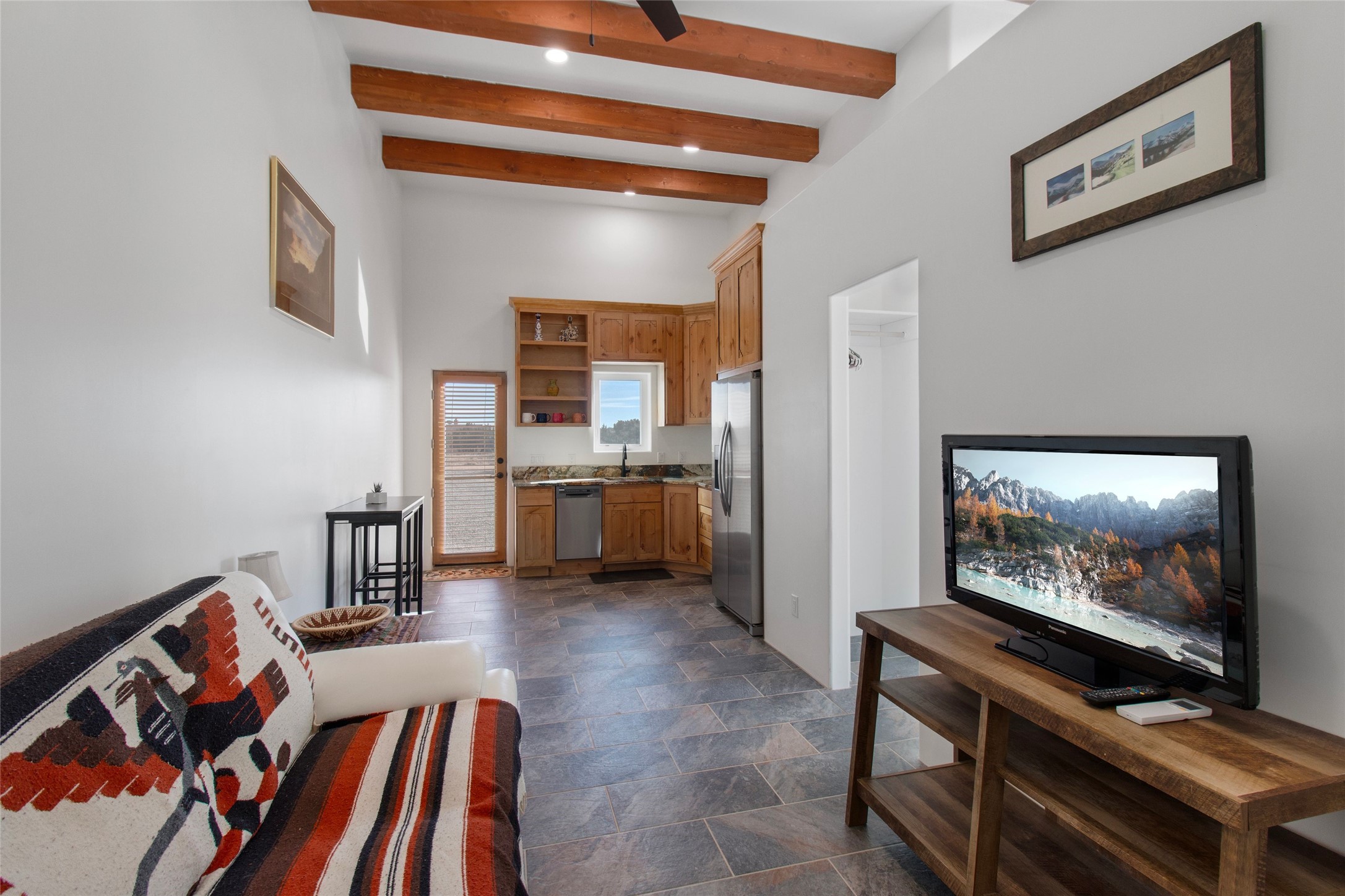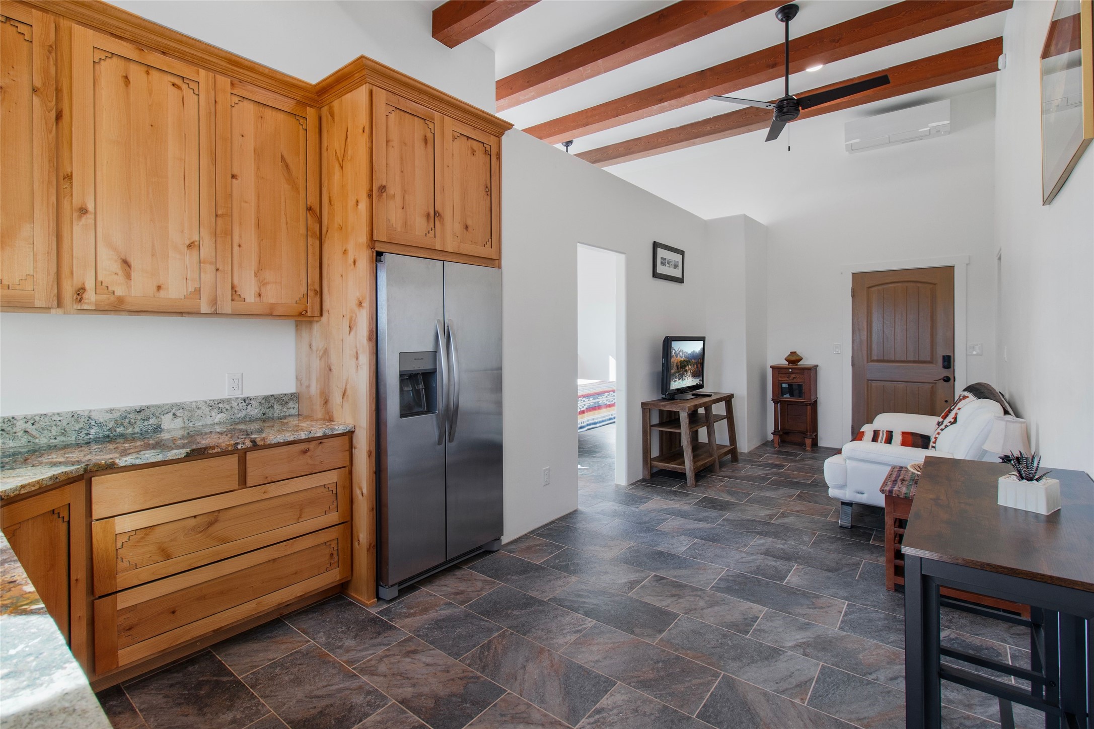 - Interior FeaturesBeamed Ceilings, No Interior Steps