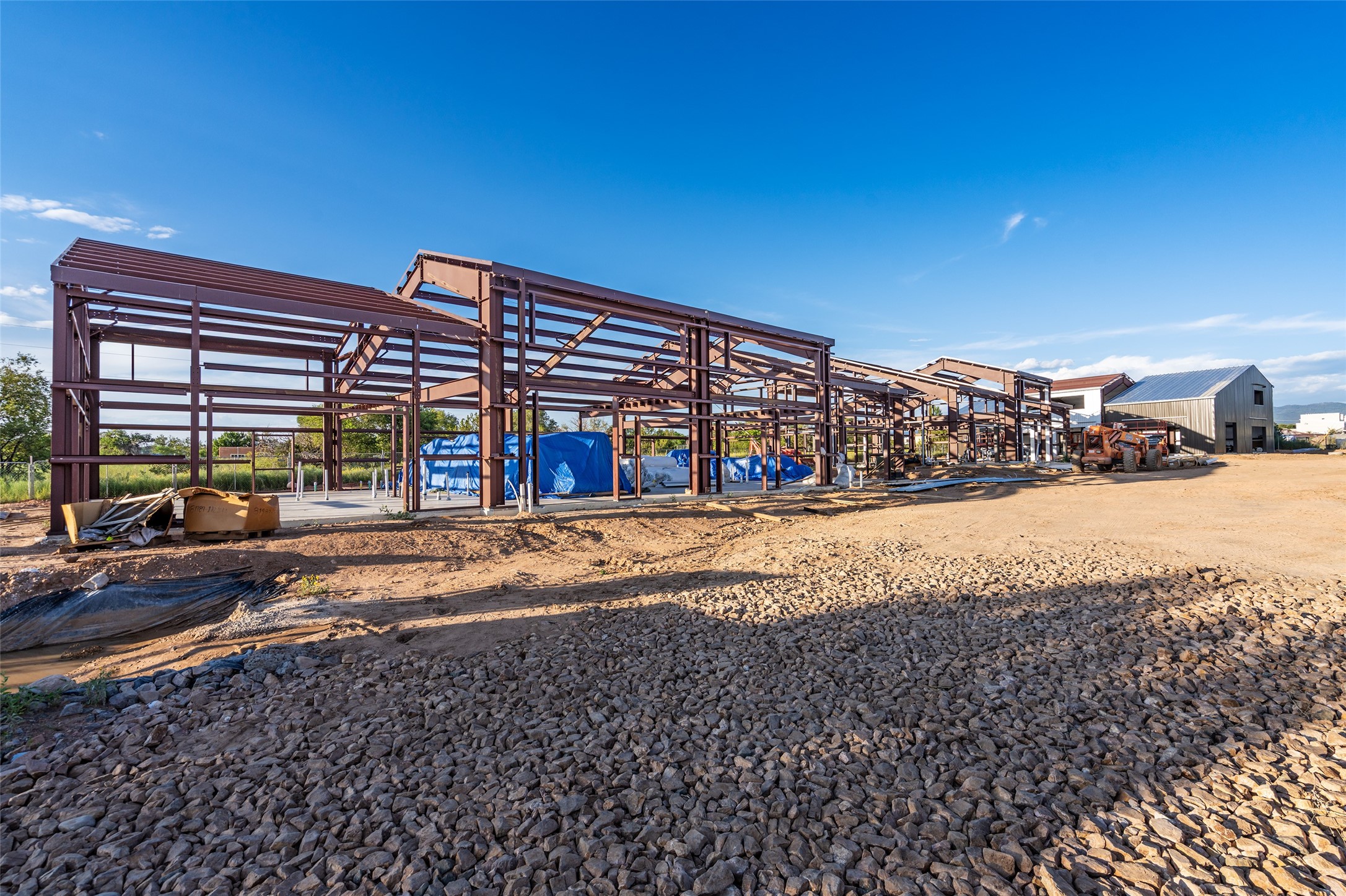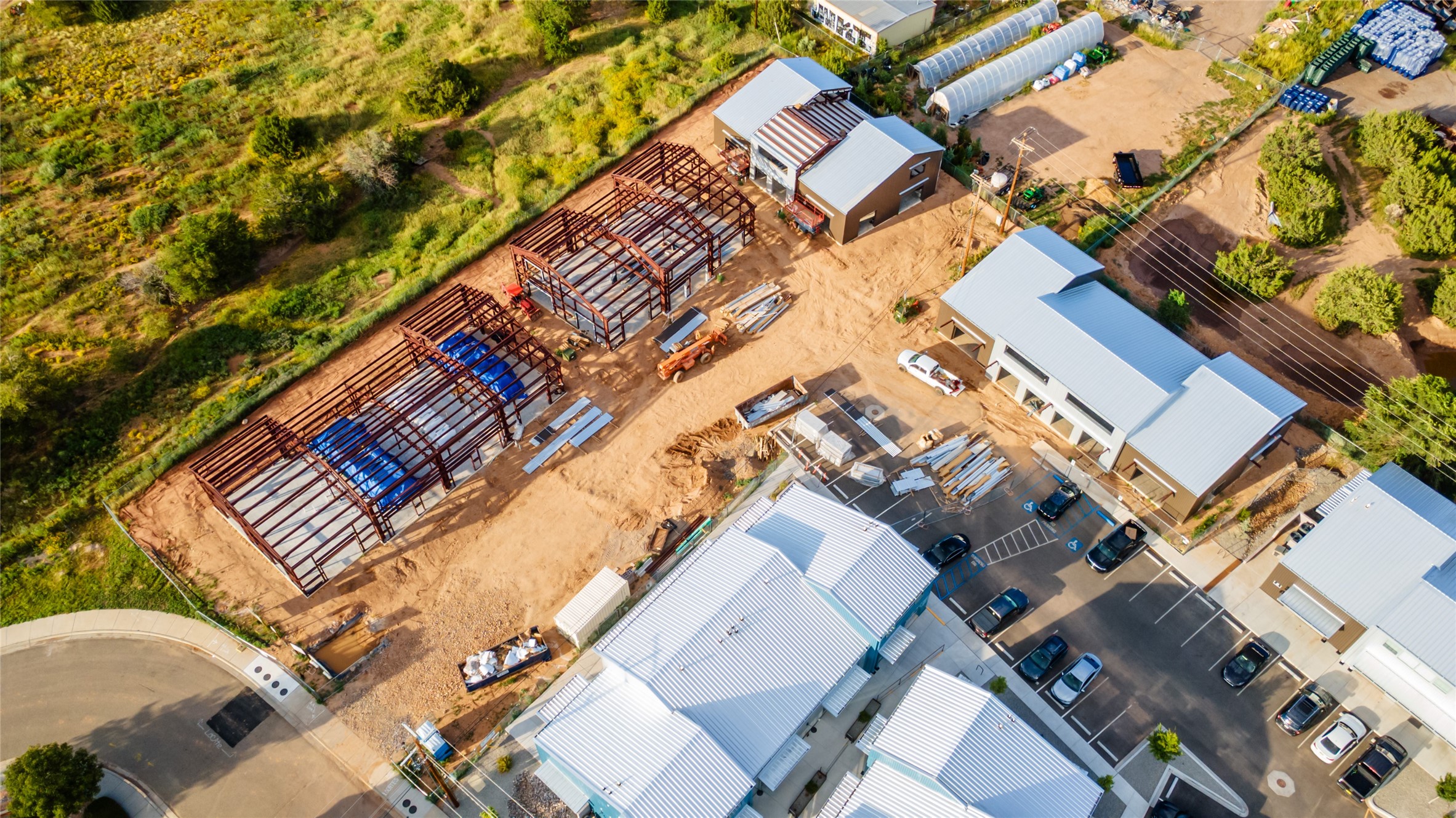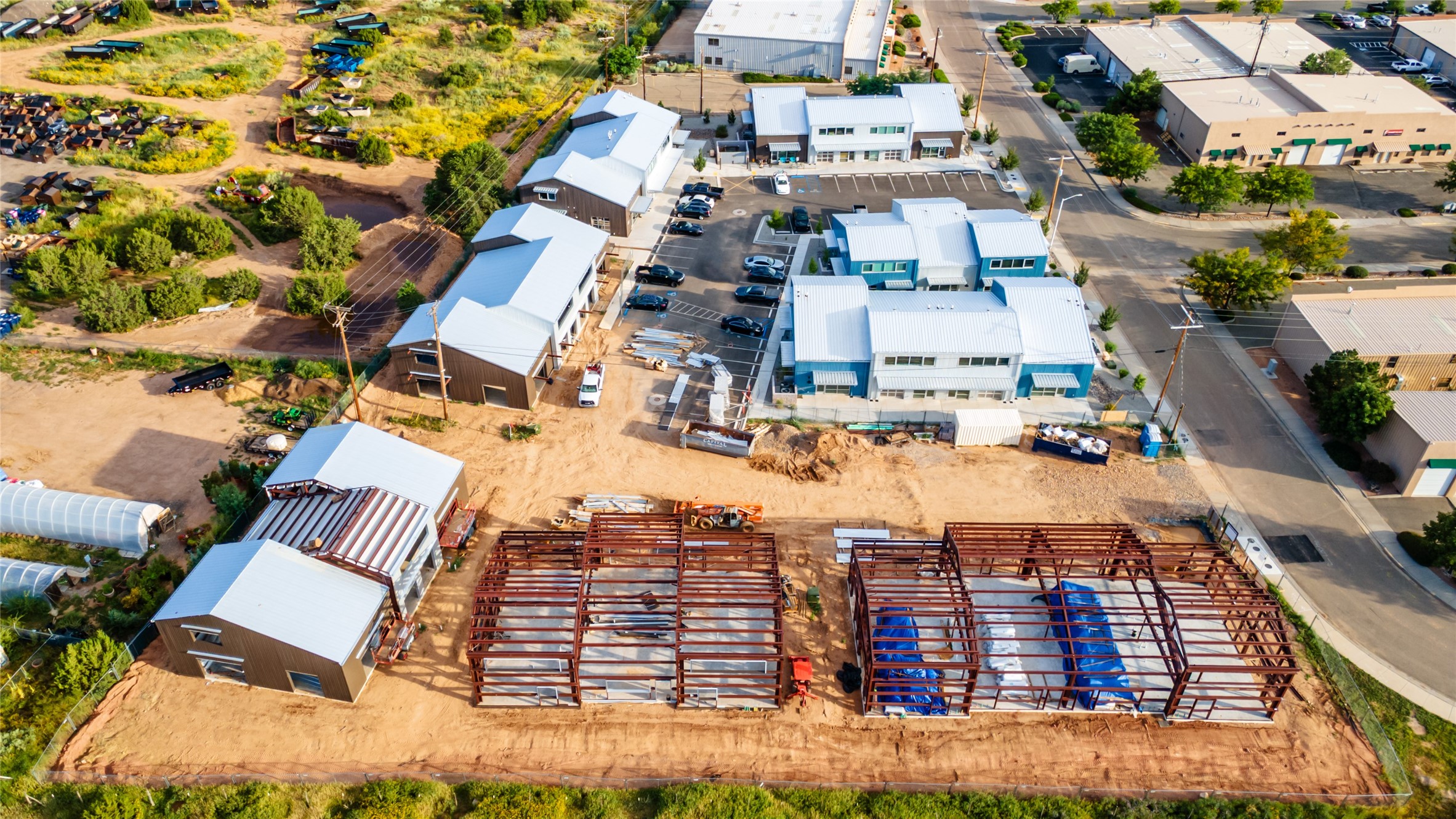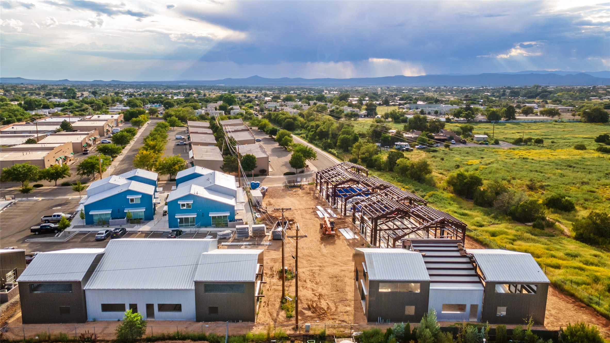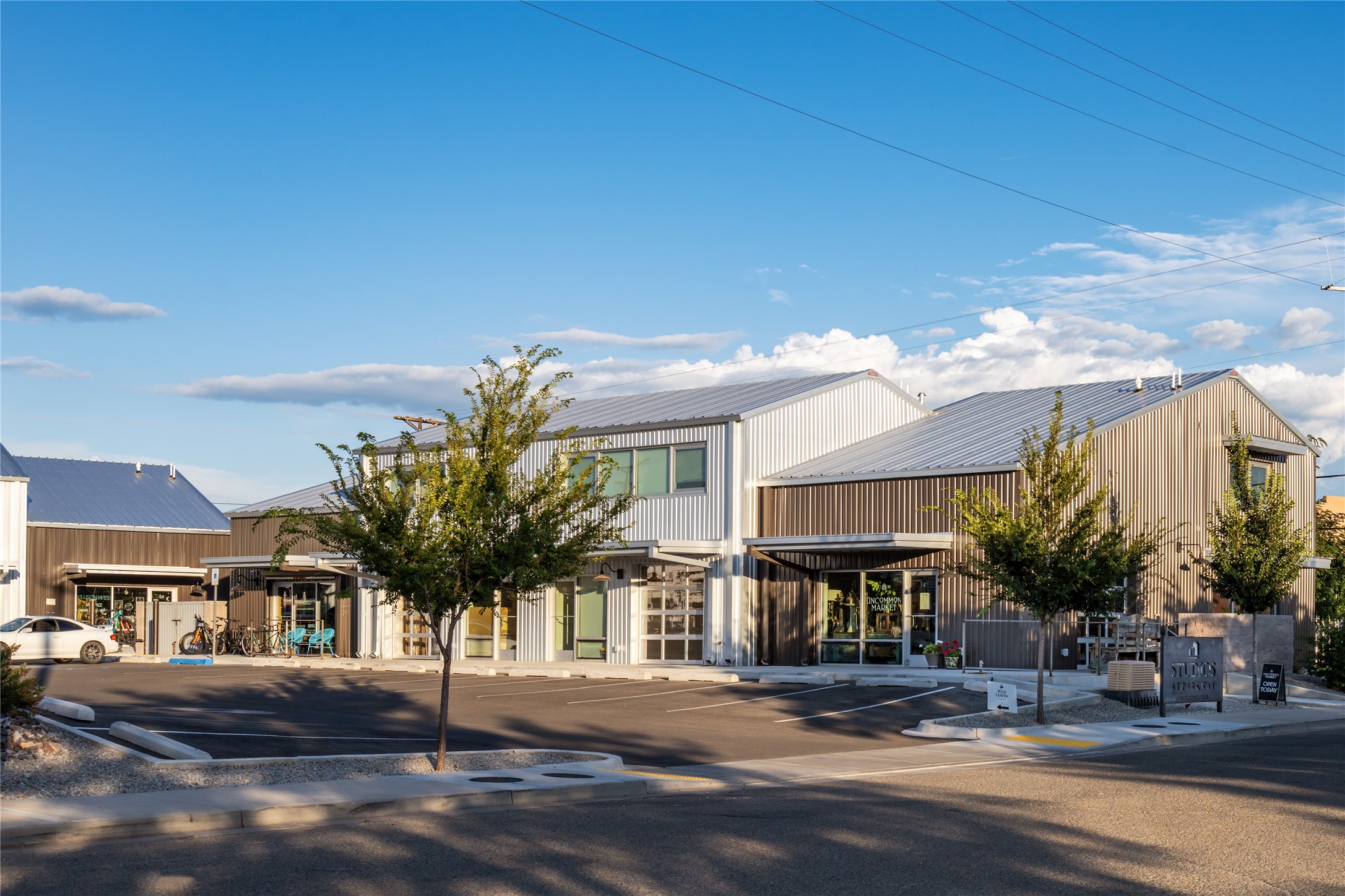 The Studios at Parkway Phase 2, currently under construction, is Santa Fe's newest commercial, industrial, and flex-use condominium development in the thriving Siler/Rufina Warehouse, Art & Innovation District. Designed with an industrial aesthetic, The Studios offer open, light-filled spaces with contemporary touches that create an inspiring environment for business. Each unit spans nearly 1,677 square feet, including 1,587 square feet of interior space ("walls in"), and features tall ceilings, large aluminum glass roll-up garage doors, expansive storefront windows, and finished concrete floors. Inside, you'll find LED lighting, handcrafted steel staircases with wood treads, and smooth drywall finishes. The ground floor encompasses 1,092 square feet, while the second story adds 584 square feet. These units are designed with flexibility in mind, with an option for Live-Work as an accessory to commercial use. Each unit has separately metered utilities, kitchen-ready hookups, a designated area for a shower, and thoughtfully landscaped grounds tailored for shipping and receiving. Zoned I-1, these state-of-the-art condominiums are suitable for a range of uses, from offices, galleries, and artist studios to warehouses, wellness businesses, and light industry. Additionally, the roof is prepared for solar PV installation, and the property is located in a Federal Opportunity Zone.