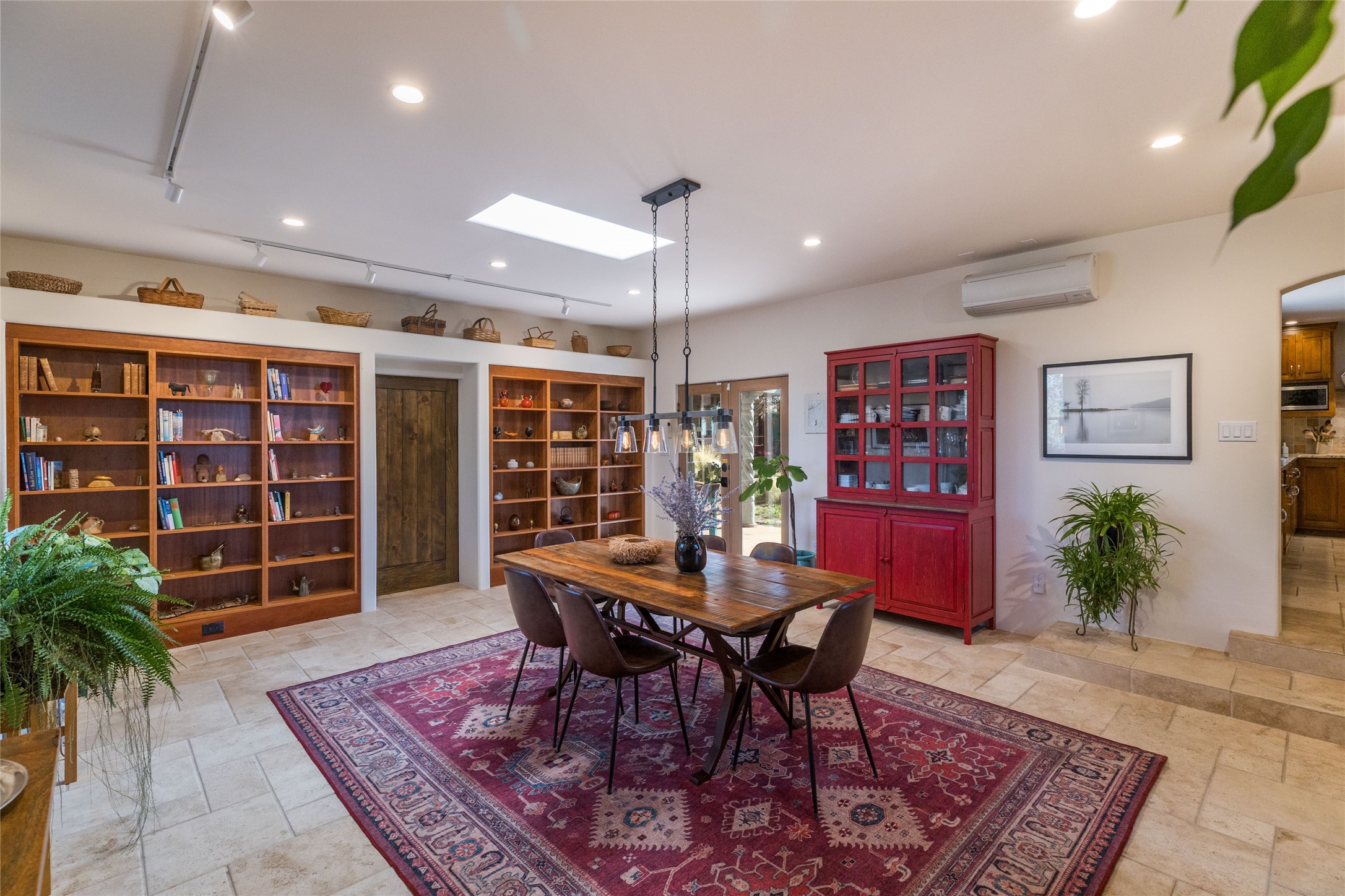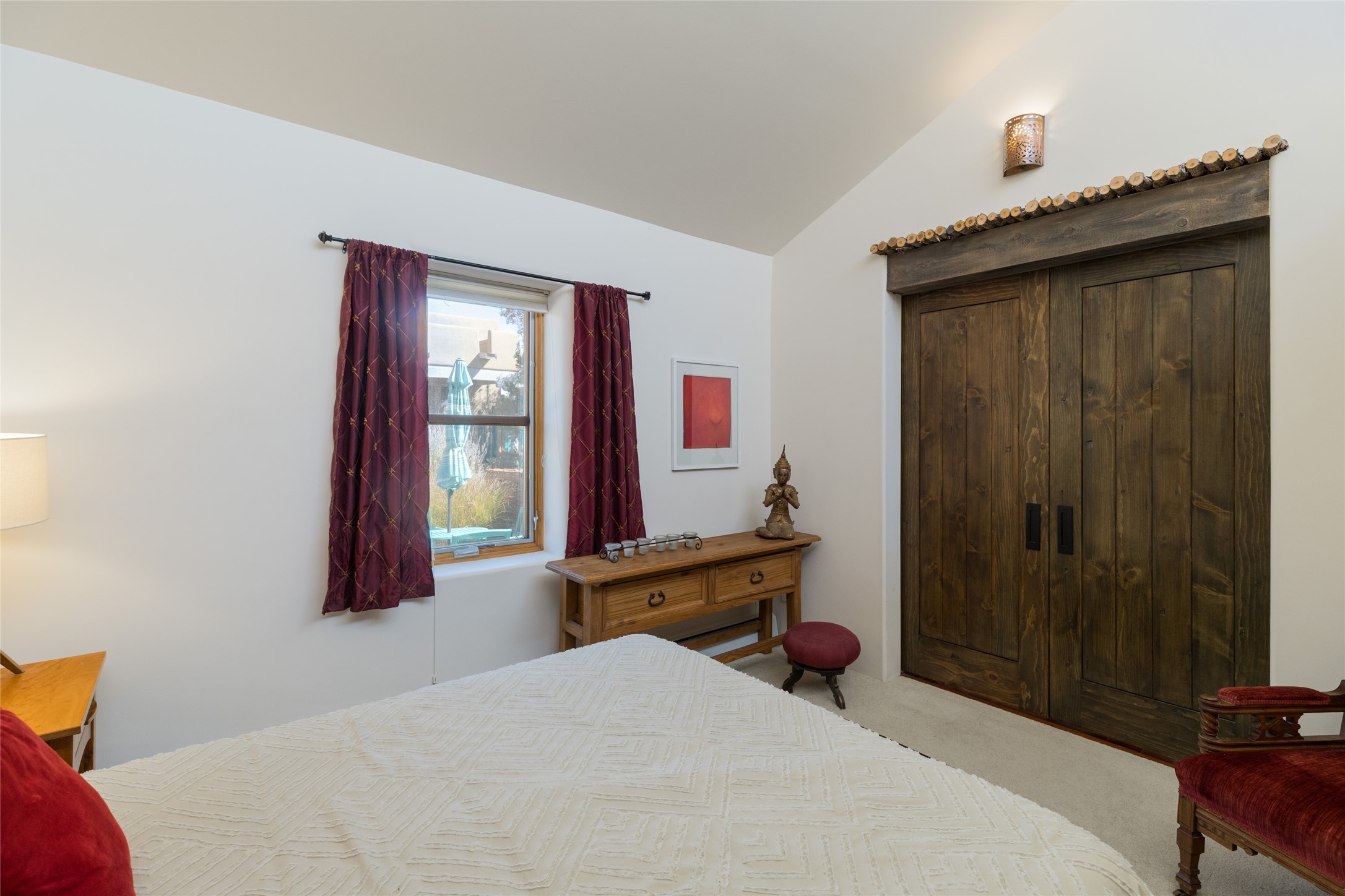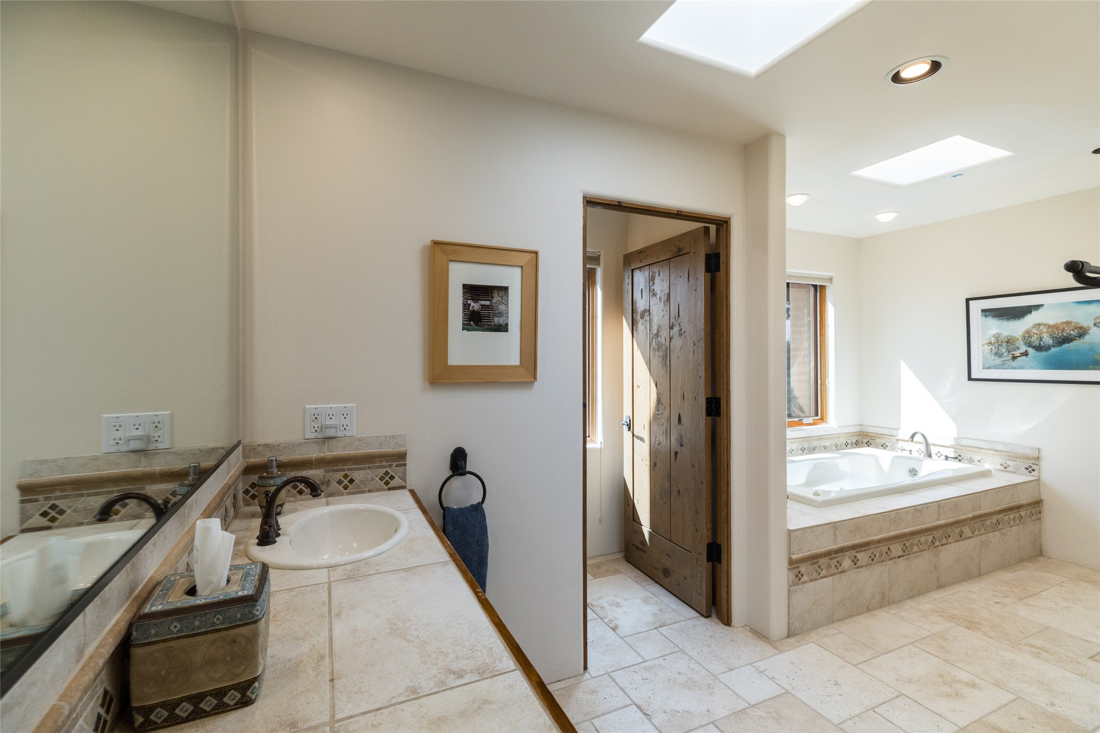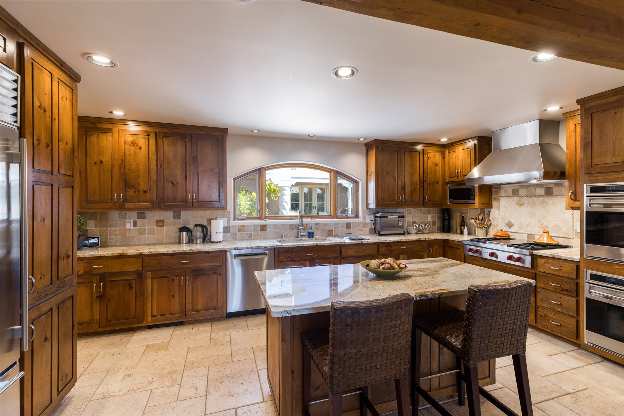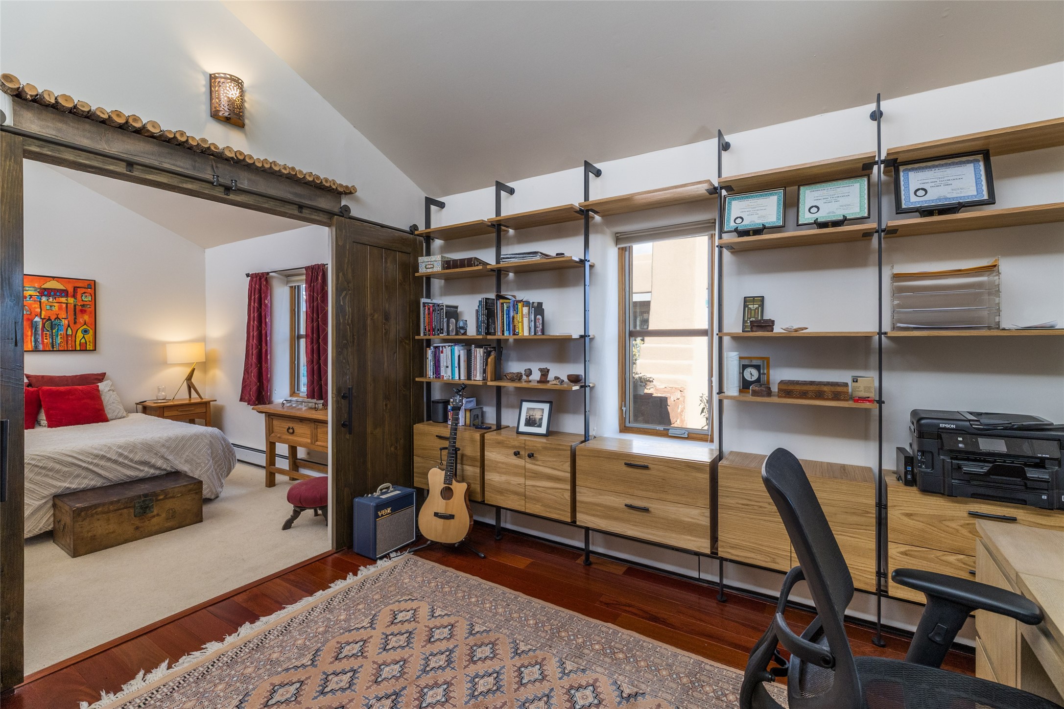 This beautiful estate, situated on over 4 acres, has 3 bedrooms, 2 baths, a dedicated office space, views from nearly every room, two oversized two-car garages (one detached, perfect for a workshop), plus a standalone 600 sf studio/casita with an extra 1 bedroom, 1 bath (previously used as an art studio). True chef's kitchen with Wolf appliances and sub-zero refrigerator, double ovens, granite counters, large island with bar seating.Just off the kitchen is a spacious formal dining room with custom built-ins and french doors. The private suite is entered through a sitting room/office with viga ceilings, kiva fireplace and access to a private viewing deck. Spa-like primary bath with generous walk-in shower, separate jetted tub, double sinks, and walk in closet.There are a total of 6 fireplaces.Light-filled living room featuring exposed vigas and corbels, kiva fireplace, custom wood built-in shelving and cabinetry, and expansive windows capturing beautiful views. Owned solar system helps reduce utility costs, allowing you to enjoy the space of this home without the typical energy expense. Other amenities include radiant floor heating, new mini splits, hot tub and a greenhouse.