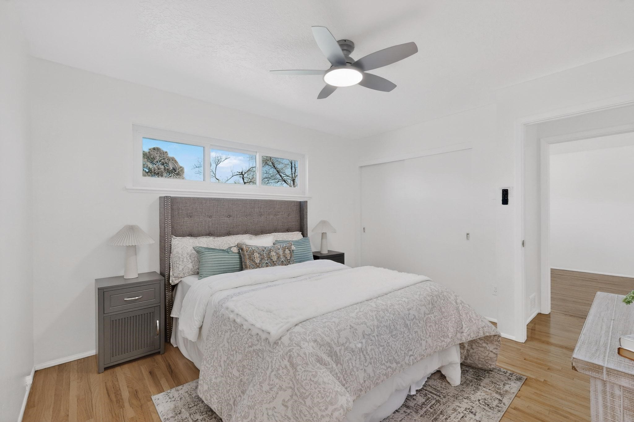 Built by acclaimed Santa Fe builder Alan Stamm, this recently updated 3 bedroom, 2 bath residence is a standout offering in the Carlos Rey subdivision. Known for enduring craftsmanship and thoughtful design, Stamm's homes are highly sought after. Inside, the home features elegant wood flooring, new windows and brand new appliances, small home office, study, or playroom with built-in bookshelves and storage, to name a few that blend modern comfort with timeless quality. Outdoors, a generously sized yard offers a rare blank canvas, ready for custom landscape, garden, or private outdoor retreat tailored to your vision. Ideally situated in Midtown, the home enjoys exceptional walkability delivering a refined lifestyle in one of Santa Fe's most convenient locations