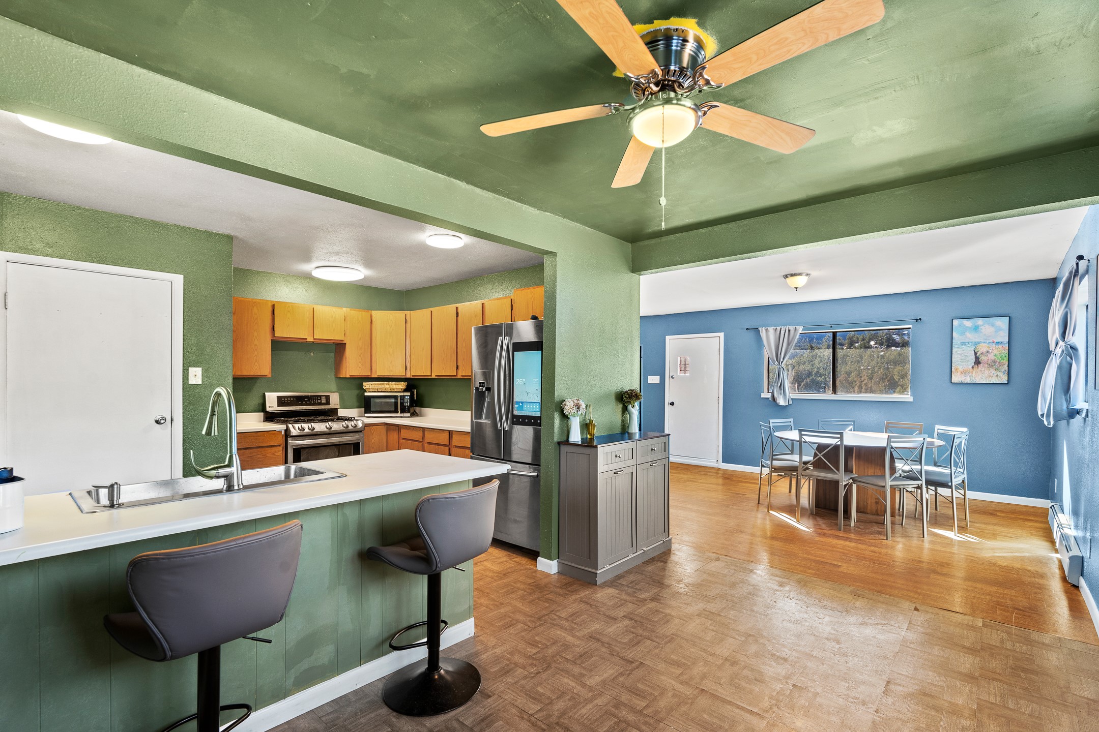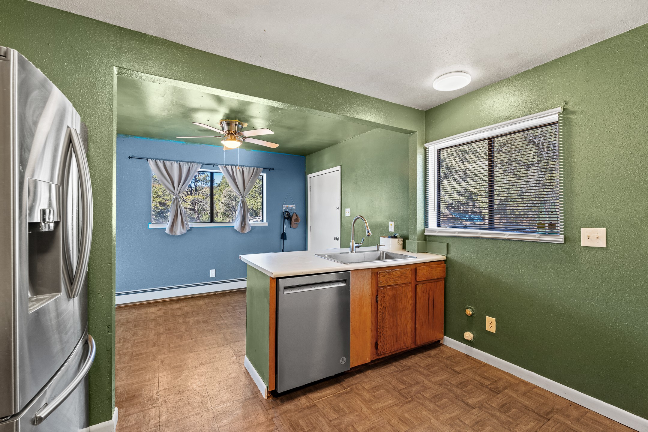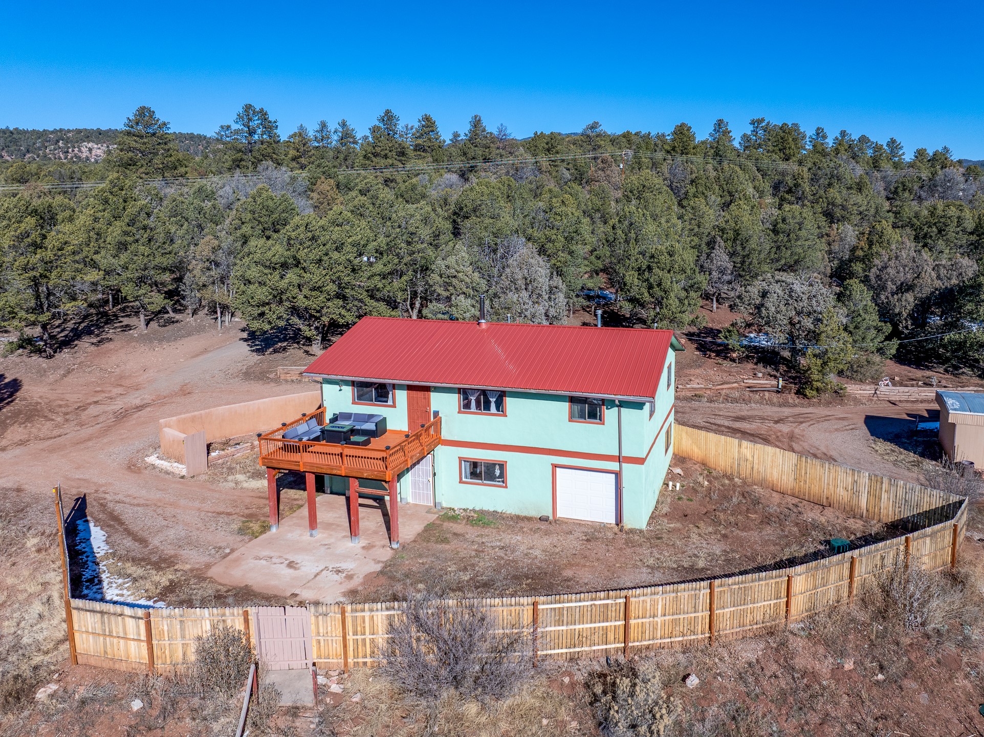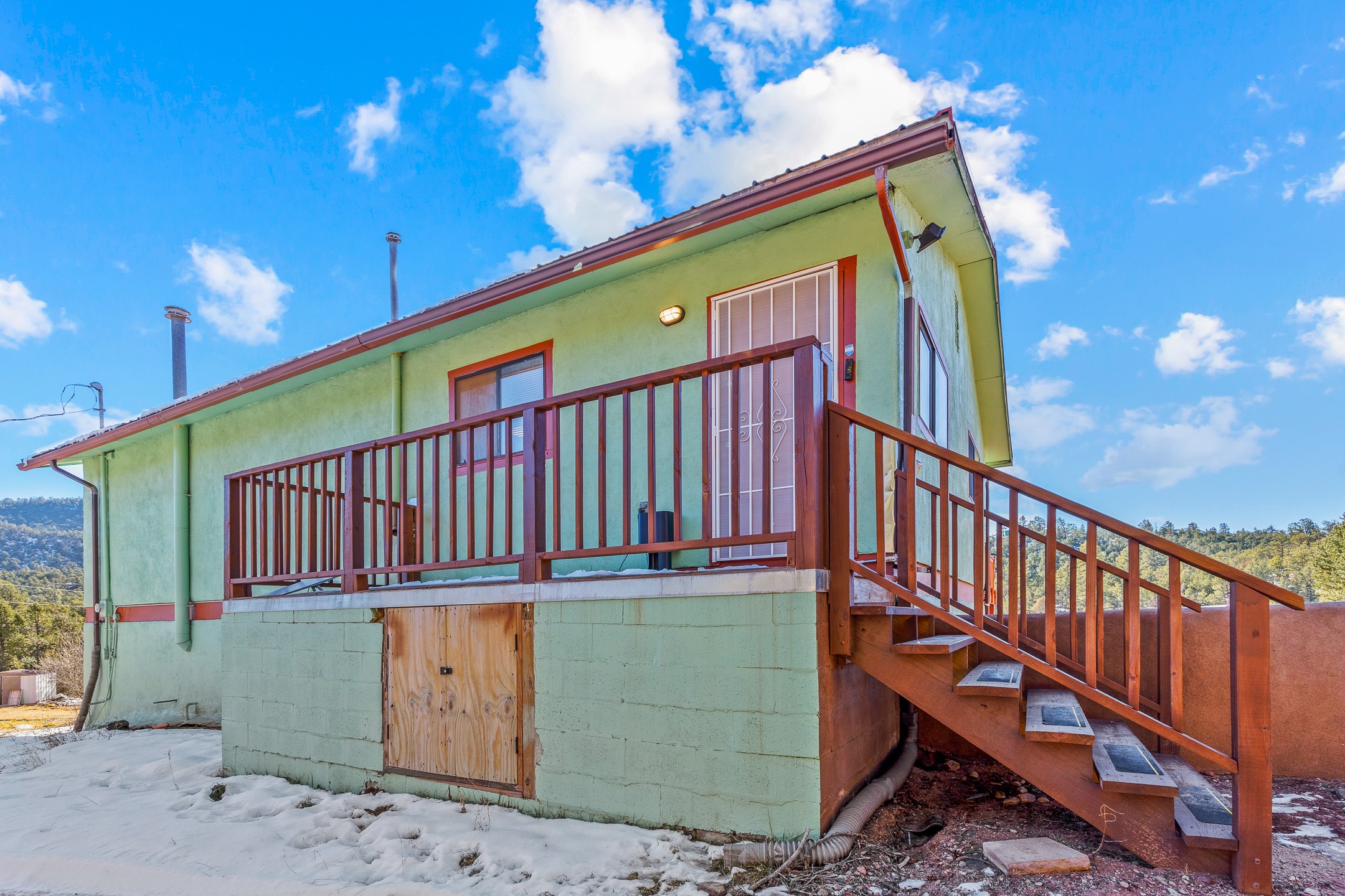 Situated on desirable acreage in Glorieta, 11 Eusebio Road offers expansive views and exceptional potential. This 3-bedroom, 2-bath home features a large downstairs great room and an elevated deck ideal for enjoying sweeping mountain and valley vistas. Additional features include a carport and a new garage door. The water heater, boiler, and baseboard heating were installed in 2025. With room to expand or customize, this property presents a unique opportunity to create a retreat or full-time residence in a peaceful, scenic setting.