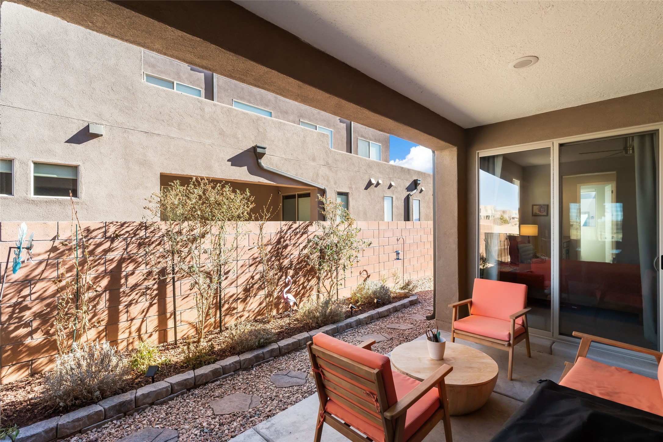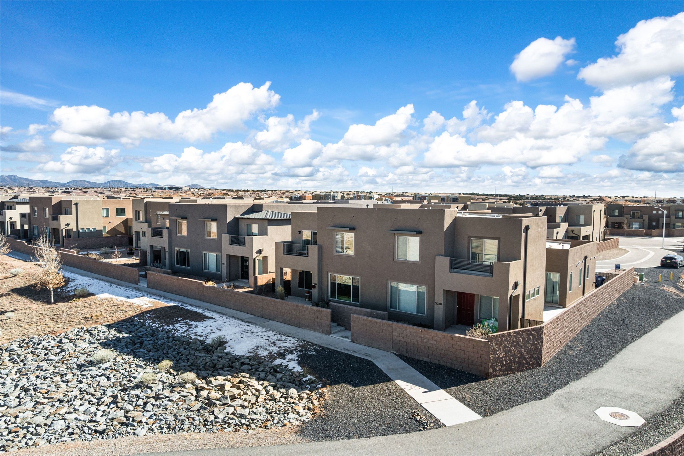 Convenient Las Soleras 2022 built 3-bedroom, 2.5 bath townhouse with tall ceilings and plentiful natural light. Open concept downstairs with easy flow for daily living and entertaining. The modern kitchen is appointed with island/breakfast bar and stainless steel appliances. The main floor primary suite features an ensuite bath with walk-in shower, walk-in closet and direct access to an outdoor patio--perfect for morning coffee or evening relaxation. The laundry room is located downstairs as well. Upstairs, you'll find a generous second living area, offering flex space for a media room or studio. Adjacent to this living area is a versatile loft office space providing an ideal setup for remote work or study. The other two guest rooms are located upstairs with a shared full bathroom. Two car garage. Bonus highlight is a paved trail right outside your door. Excellent location close to Presbyterian Santa Fe Medical Center with easy access to all the shopping and dining on NM 14-Cerrillos Rd. and the Santa Fe Plaza.