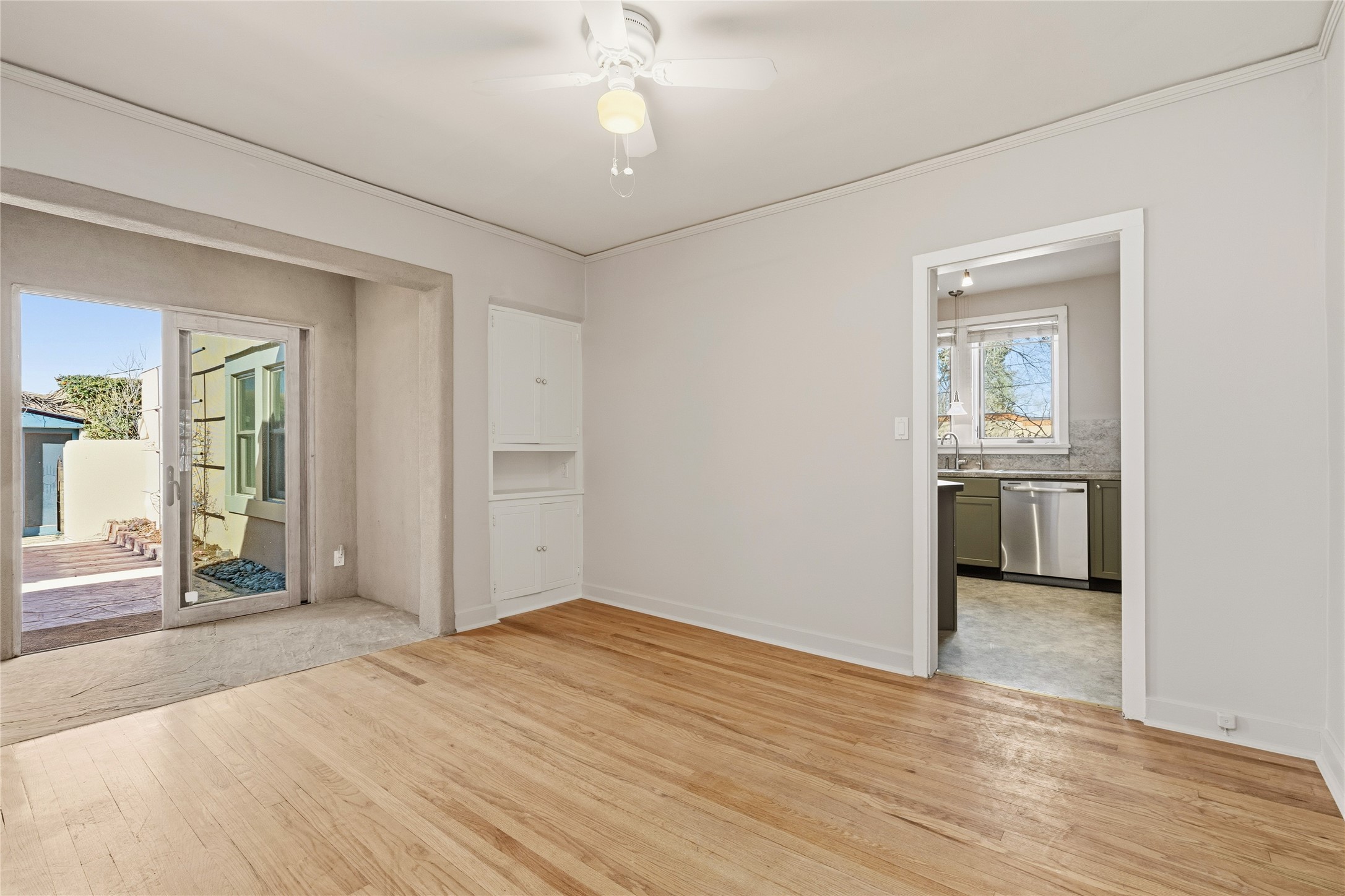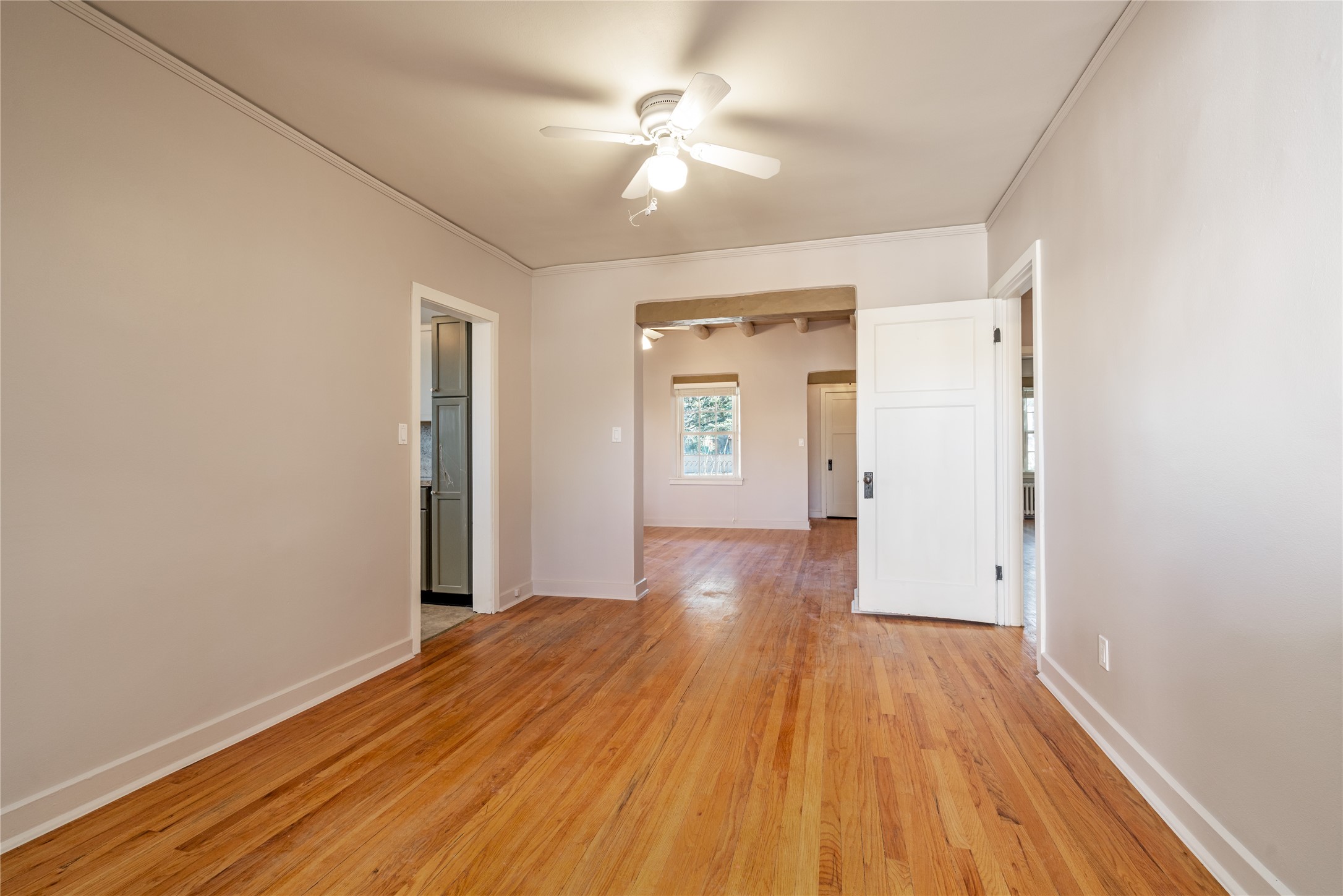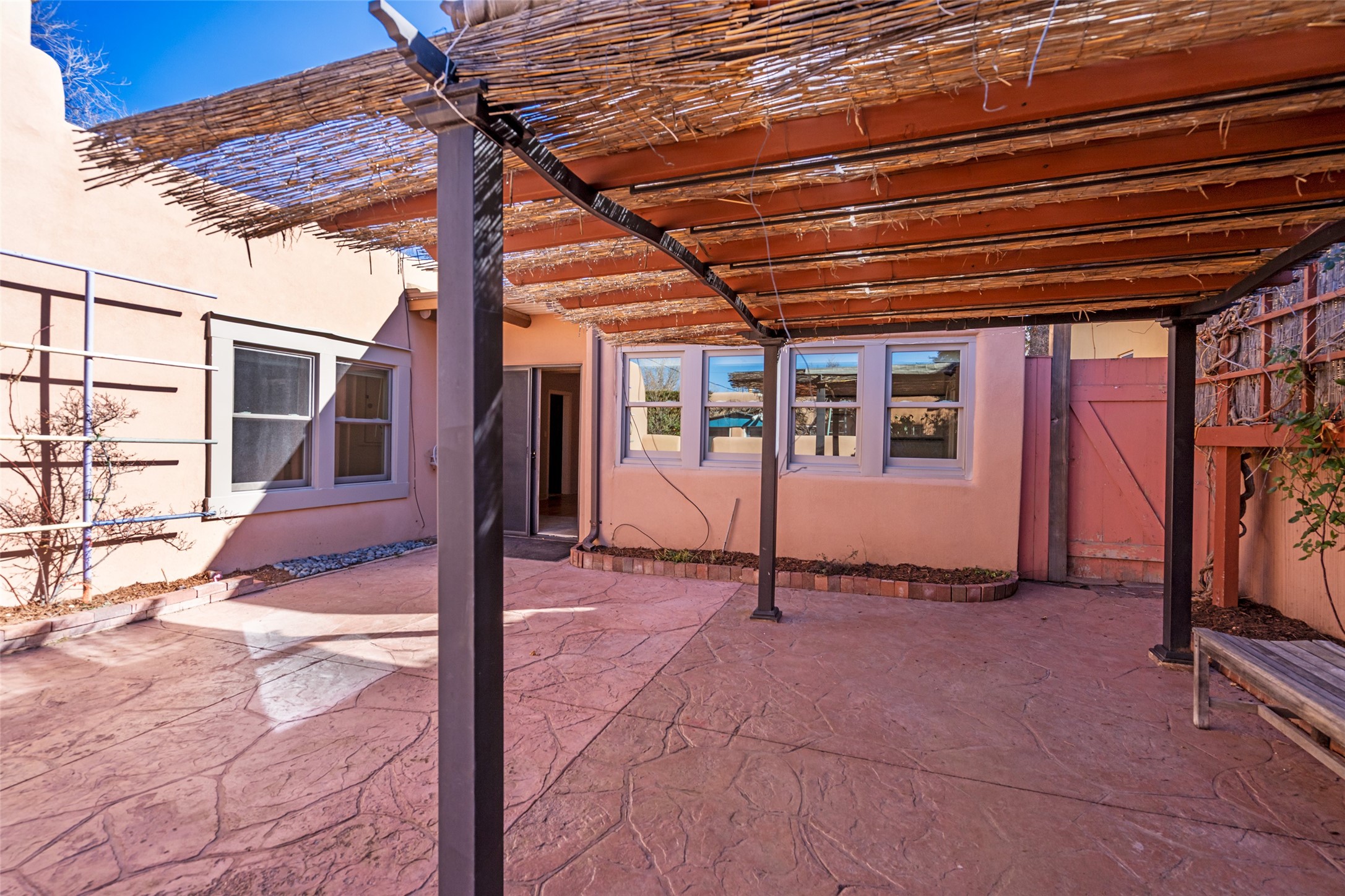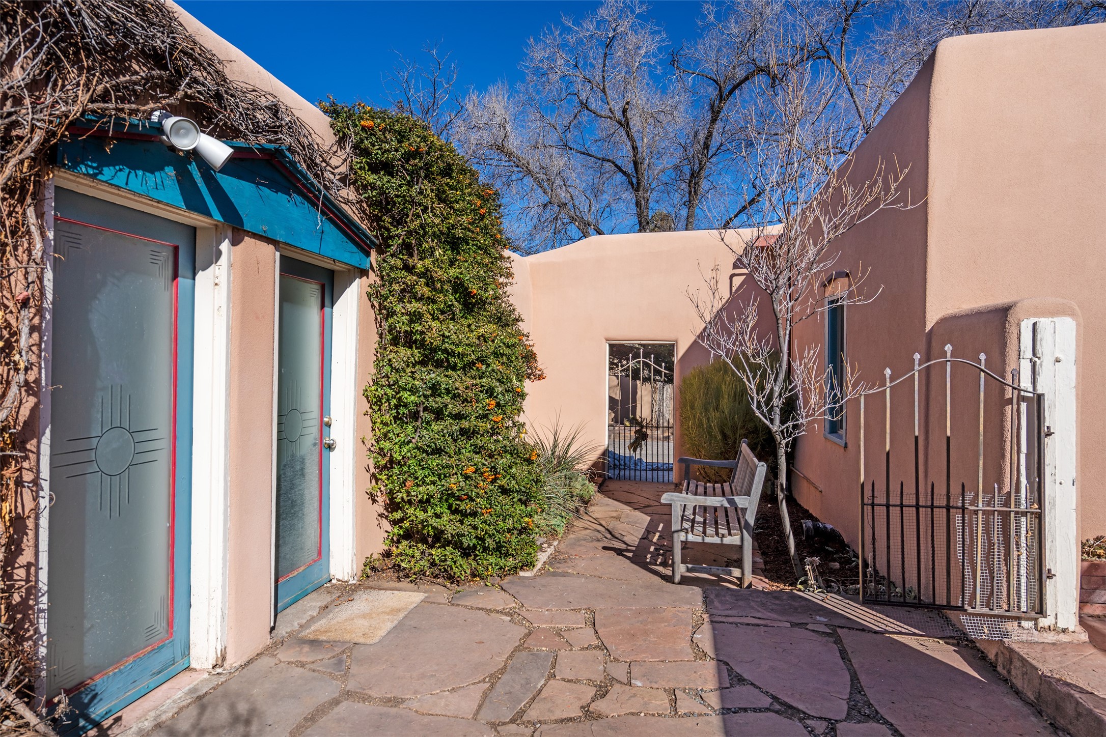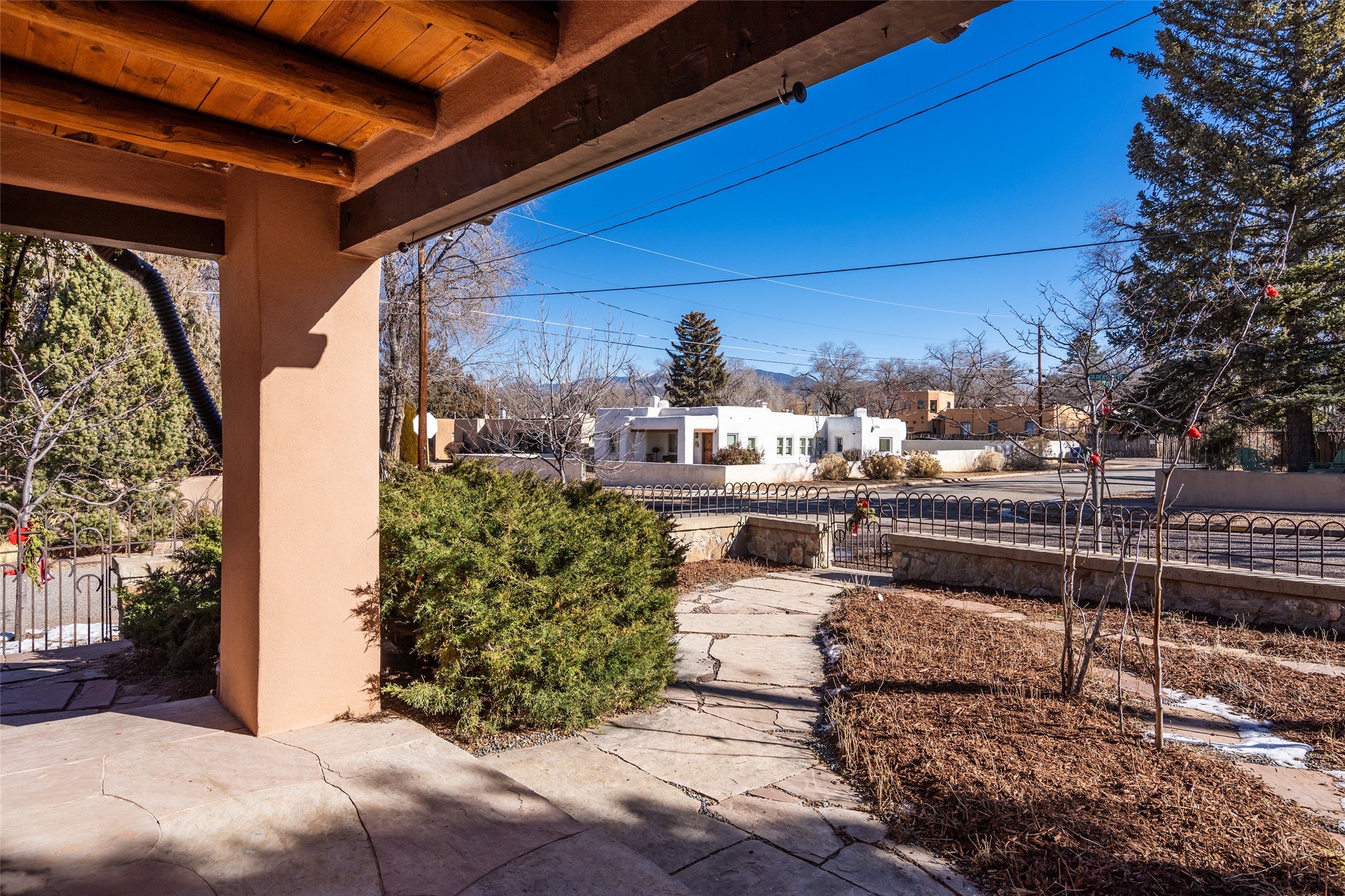 Soulful and light-filled, this classic 1930s Pueblo-style home is ideally located in the highly sought-after South Capital neighborhood. The property features a three bedroom, three bath main residence offering approximately 1,760 square feet, plus a 340 square foot heated studio - perfect for a home office, art space or workshop. A rare downtown two car garage adds exceptional convenience. Beautiful oak wood floors run throughout the home, complemented by two traditional kiva fireplaces, old world standing steam radiators and charming viga accents that highlight the home's authentic Southwestern character. Recent improvements include newer stucco, an upgraded roof, a newer furnace and hot water heater, and a new Sierra Pacific windows. This special property offers both timeless charm and modern comfort.