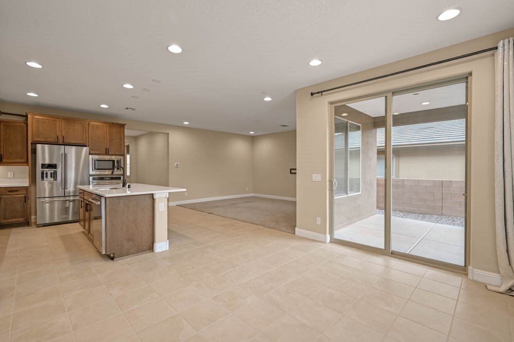 WELCOME HOME! Step through the beautiful blue front door and into this newly built Pulte home. Completed in 2023, this like new home has it all. Located in the new and fresh Colibri Subdivision, the highly sought after Brownstone plan invites you into the perfect layout. The beautiful chef's kitchen has a large center island, upgraded wood cabinets, quartz counter tops, stainless steel appliances, including gas cooktop and hood, soft close drawers and much more. This floor plan offers separation between the primary bedroom and the two guest bedrooms. The primary suite is adorned with tons of space, a massive walk-in closet, gorgeous bathroom floor tile, solid surface counters and double sink vanity. All bedrooms and living room have carpet floors, while the rest of the main living spaces are tiled. The entire house boasts recessed lighting. Step outside and enjoy the covered porch and private backyard. Colibri is located near I-25 and HWY 599, making it an ideal location for any one commuting to Los Alamos or Albuquerque and it's still near all the restaurants and shopping that make Santa Fe so desirable. Do not hesitate and schedule your showing today. Imagine the Possibilities!!!
