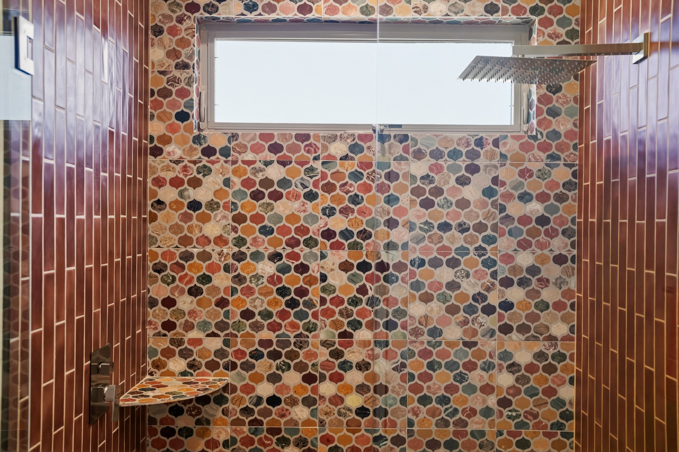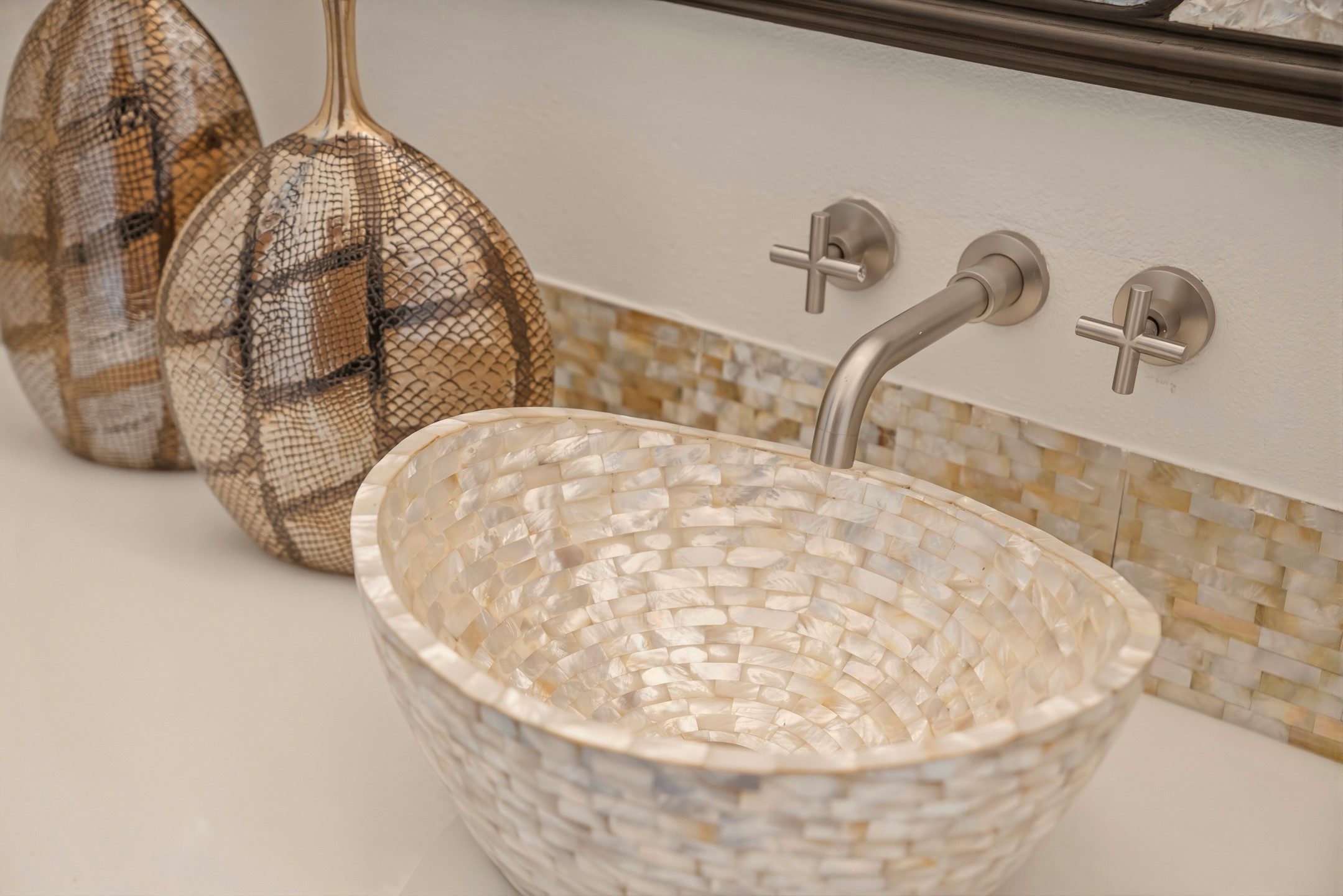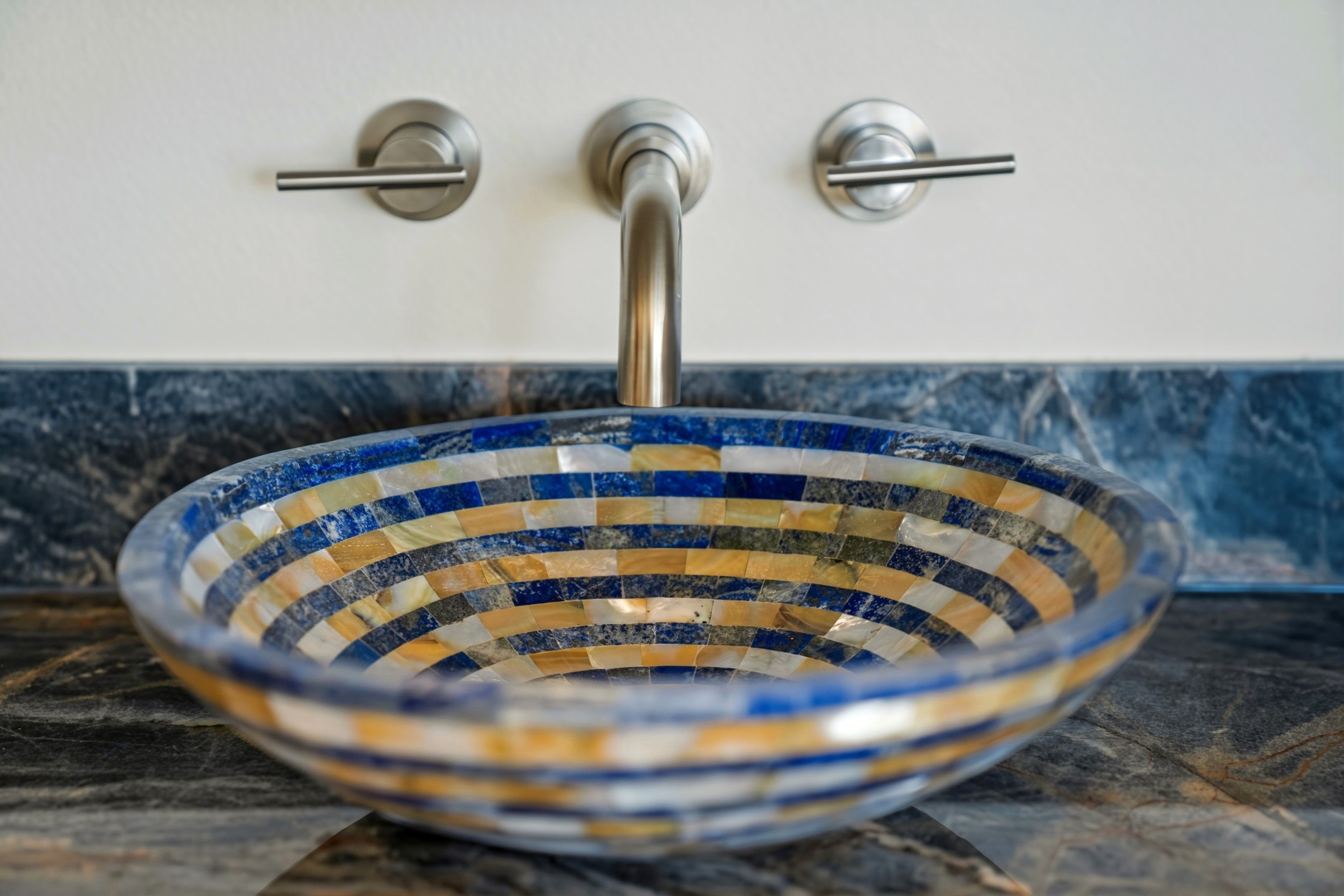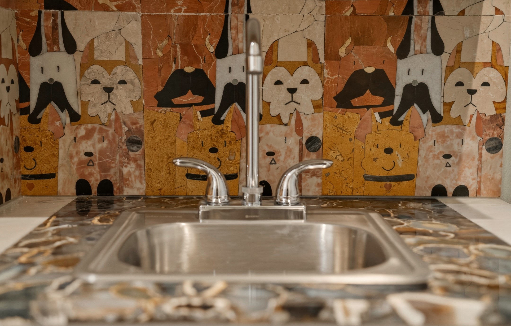 Old world craftsmanship blends seamlessly with modern luxury at the Estancia Collection, a unique compound located in the Baca Railyard District, minutes away from Santa Fe's top galleries and restaurants. This latest vision of renowned developer Mitch Menaker, is where every room becomes a work of living art. Curated by artisans from around the world, using hand cut semi-precious stone, tiles, iron, and rare wood finishes creates a truly immersive and peaceful experience, as if being hugged by nature. As you walk through the sanctuary, a warm greeting by a hand painted dancing Kachina panel inspiring abundance, health and balance meets you. Inside are hand carved teak doors, kitchen cabinets and ceiling treatments, along with petrified wood countertops. The stunning fireplace is crafted with hand cut sandstone in a bamboo pattern. The main level office/bedroom features antique stained glass doors opening to the ensuite bathroom's pink jasper stone sink and mirror sitting atop a beautiful hand carved teak vanity. A magical backlit white onyx staircase creates a dreamlike effect as you ascend to the bedroom suites above. The primary bedroom greets you through a charming speak easy door and a whimsical teak puzzle floor creates a sophisticated, yet playful tone. This light-filled sanctuary features a fireplace, wet bar and a one of a kind spa-like bathroom. The sinks, mirrors and bathtub are made of semi-precious tigers' eyes and the shower is made of back-lit onyx panels, creating a luxurious and luminous retreat. The second light-filled bedroom features a private balcony and bath with hand carved vanity and a mother of pearl stone sink and backsplash. The laundry room, located on the 2nd floor includes a dog shower covered with "happy dog" faces on each hand cut tile. Blending ancient techniques with the expert hands that brought them to life, the developer's vision has created the most unique visual and artistic sanctuary Santa Fe has seen in years.