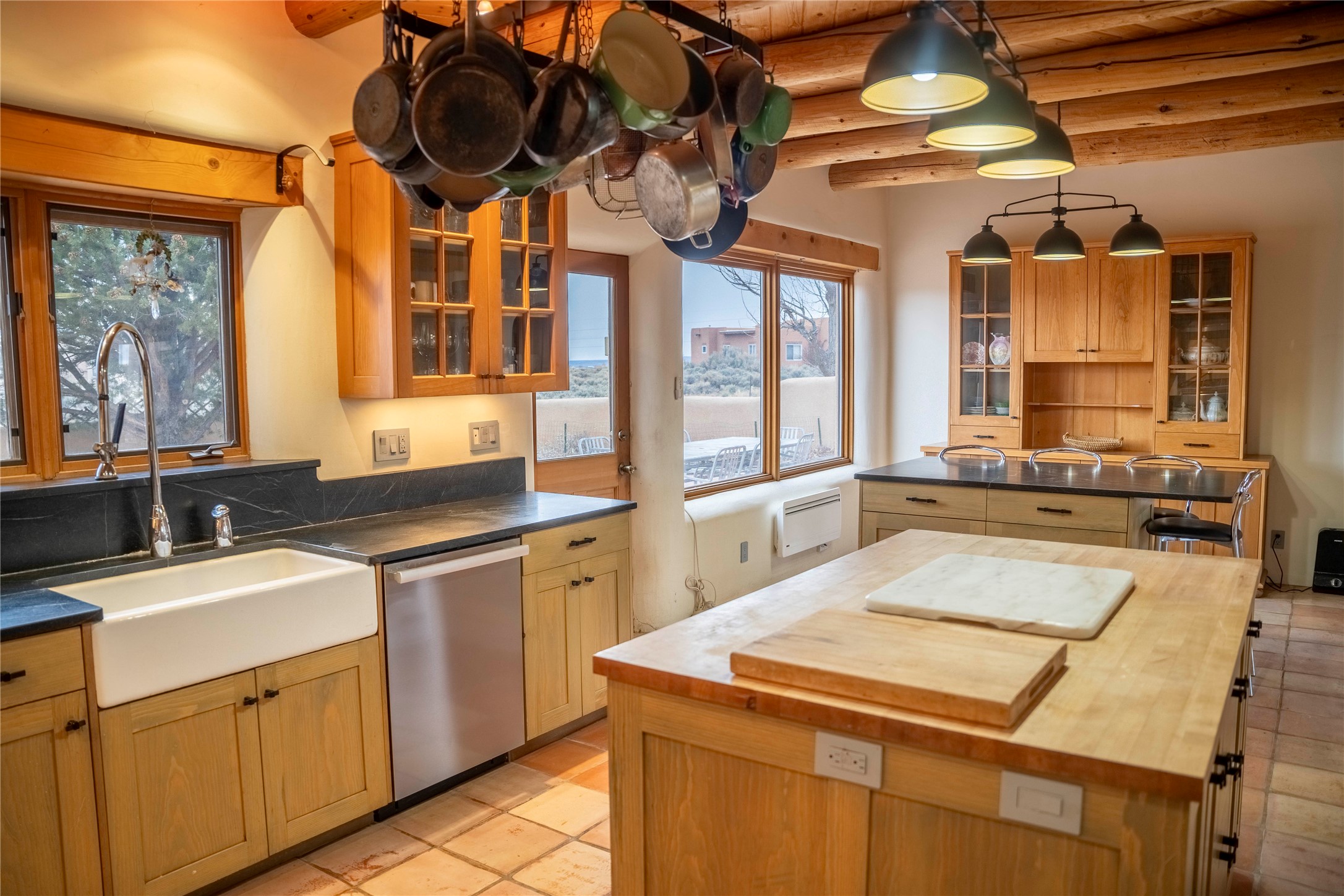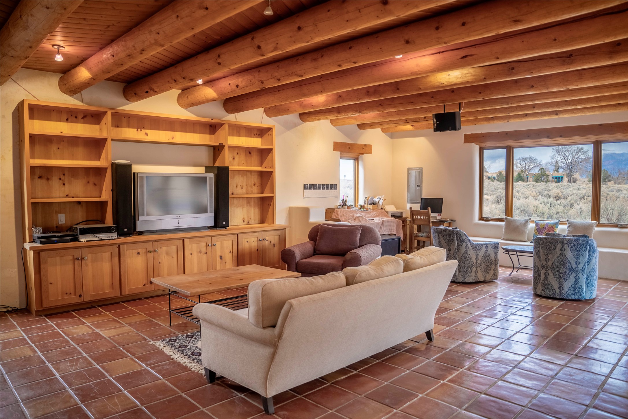 Looking for big views, tranquility and comfort! Well, look no further. Located on a peaceful road off Blueberry Hill, this stunning pueblo-style adobe, built by Godsoe, is a true sanctuary. Listed below appraisal the 2,845 square foot home features three bedrooms, two full baths, and flexible living spaces. Inside, natural light pours through large windows, illuminating rich adobe walls, rustic wood details, and thoughtful solar orientation that enhances year-round comfort. Cozy up by the fireplaces on cool evenings, gather for meals in the charming dining area, or let your culinary creativity shine in the chef's gourmet kitchen with generous counter space, two ovens, pot filler faucet, custom backsplash, Viking appliances and Miele dishwasher. Step outside to a walled courtyard and expansive patios, where you can sip your morning coffee, fire up the outdoor pizza oven for gatherings, or soak in the hot tub and take in the amazing sunsets and night skies. A covered breezeway leads to a spacious 2 car garage, workshop and green house. The 876 square foot workshop/studio is ready to become an artist studio, exercise space, or anything you envision. Eat fresh from your garden, and a greenhouse for year-round growing. Set on 2.16 acres of pristine high desert, it offers plenty of space to roam, relax, and soak in the landscape. Additional perks include natural gas and access to high-speed Wi-Fi. Located between Taos Plaza and Taos Ski Valley, this home offers the best of both worlds--secluded serenity with easy access to world-class skiing, hiking, art, dining, and cultural attractions. Come experience the magic of Taos living!